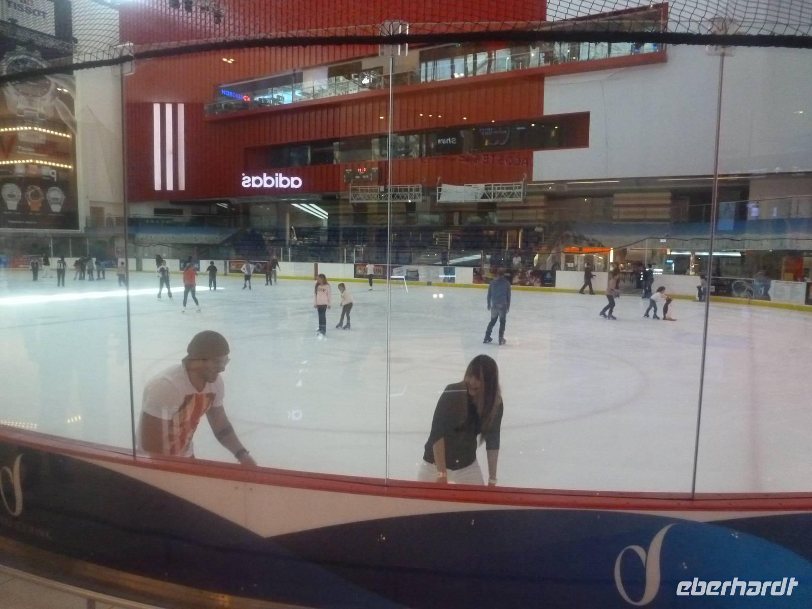 Nach all den vielen Eindrücken sollte dies noch nicht das Ende unseres Ausfluges sein. Wir fahren zur Mall of Emirates. Schon von Weitem erblickten wir das gigantische Einkaufszentrum. Geschäfte über Geschäfte, Schuhe, Taschen soweit das Auge reicht. Doch all das sollte nicht alles sein. Dubai hat eben immer etwas Neues zu bieten. Der Kälte aus Deutschland entflohen, stellten wir schnell fest, dass es auch in Dubai den Winter gibt. Skifahren in der Wüste. Die 85 Meter hohe Indoor-Skiarena "Ski Dubai" beeindruckt als weiße Winter-Wunderwelt mit Kunstschnee und alpiner Illusion seine Besucher und so auch uns. Mit einer Sesselbahn gelangen die Skifahrer zu den fünf Pisten unterschiedlicher Schwierigkeitsgrade. In Dubai gibt es eben nichts, was es nicht gibt. So staunen wir nicht schlecht über die Einheimischen in ihren Schneeschuhen. Nach vielen Erlebnissen fahren wir zurück zu unserem Hotel.