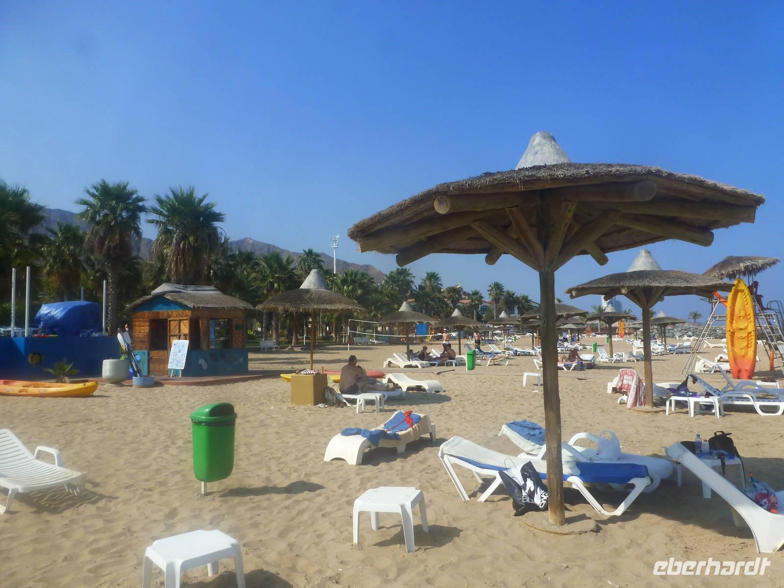 Nach einem leckeren Frühstück reisen wir heute an die schöne Ostküste um uns am wunderschönen Strand zu entspannen und die Sonnenstrahlen zu genießen. So fahren wir über die gut ausgebaute Ostküstenstraße zunächst nach Masafi. Hier legen wir eine Pause ein und schlendern über den Straßenmarkt, der zu den größten und farbenträchtigsten Märkten der Region gehört. Bauern verkaufen Gemüse, Obst und Brennholz sowie Teppiche und Töpferarbeiten. Viele von uns nutzen die Möglichkeit um ein paar Kleinigkeiten zu erstehen. Landschaftlicher Höhepunkt unserer Fahrt an die Ostküste ist die Durchquerung des majestätischen Hajargebirges. Wir staunen nicht schlecht, dass man hier neben der Wüste auch Gebirge findet und sehen heute ein ganz anderes Bild der Emirate: Steil aufragende, unwirtlich und kahl erscheinende Felsschluchten, von der Sonne in gleißendes Licht getaucht. Bevor in unserem Badehotel einkehren, besuchen wir pünktlich zur Gebetszeit die älteste Moschee der Emirate. Kurze Zeit später erreichen wir das Fischerdörfchen Al-Aqqa, 15 Kilometer südlich von Dibba. Hier kehren wir in das wunderschöne Sandy Beach Motel ein. Nach einem köstlichen Mittagessen lockt uns der herrliche Strand und das verführerische Meer zu einem Bad. Wir verbingen hier einige schöne Stunden und der Abschied fällt uns dann doch sehr schwer, denn wir wissen, dass uns in Deutschland wieder andere Temparaturen erwarten. So genießen wir unser Bad im Golf von Oman und einige von uns konnten sich nur schwer von diesem schönen Örtchen trennen.