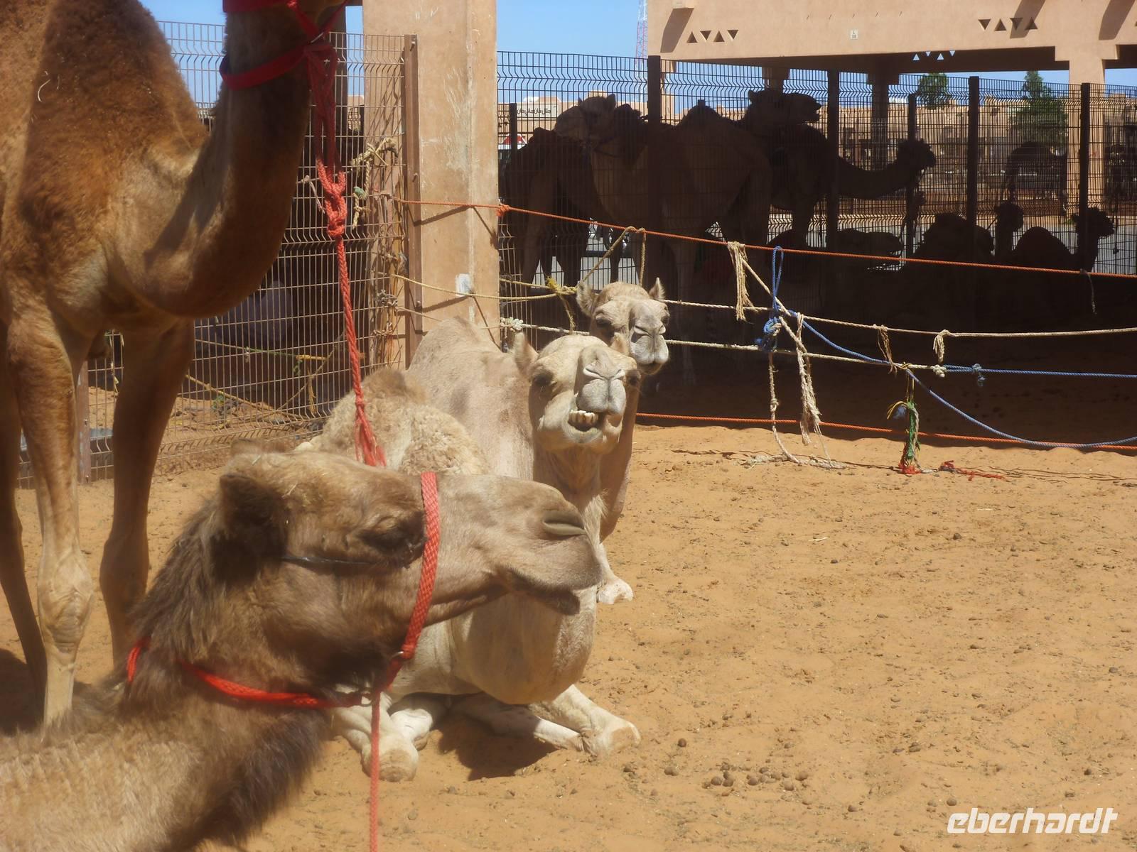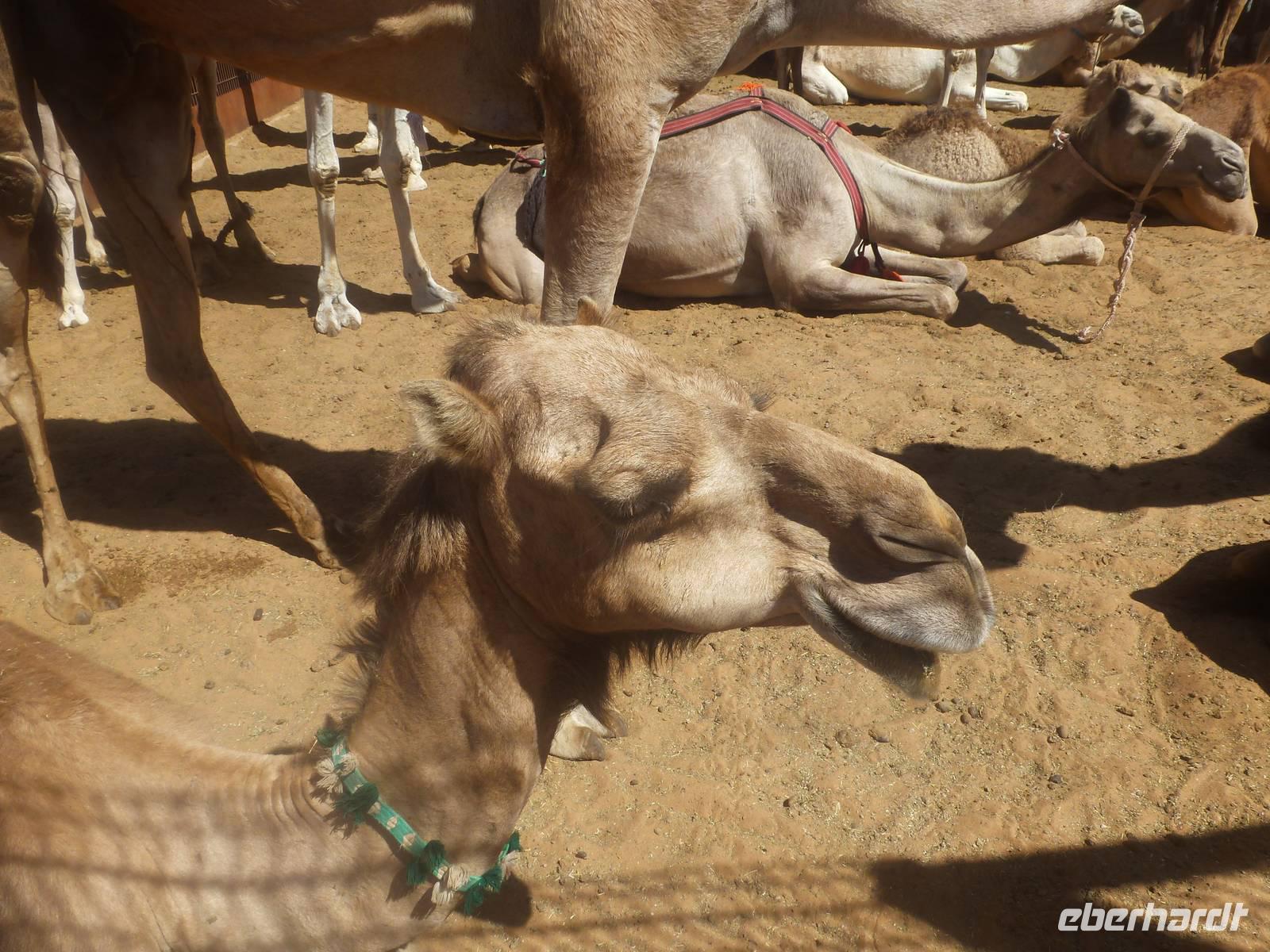 Am Nachmittag finden wir uns dann zwischen Kamelen und Schafen wieder. Etwas erschrocken sind wir darüber, dass die Kamele in kleinen Gehägen leben müssen und hier verkauft werden. Einige von uns haben sich einen Kamelmarkt etwas anders vorgestellt, aber so ist eben die Wirklichkeit und so fahren wir wieder mit vielen Eindrücken in unser Hotel zurück.