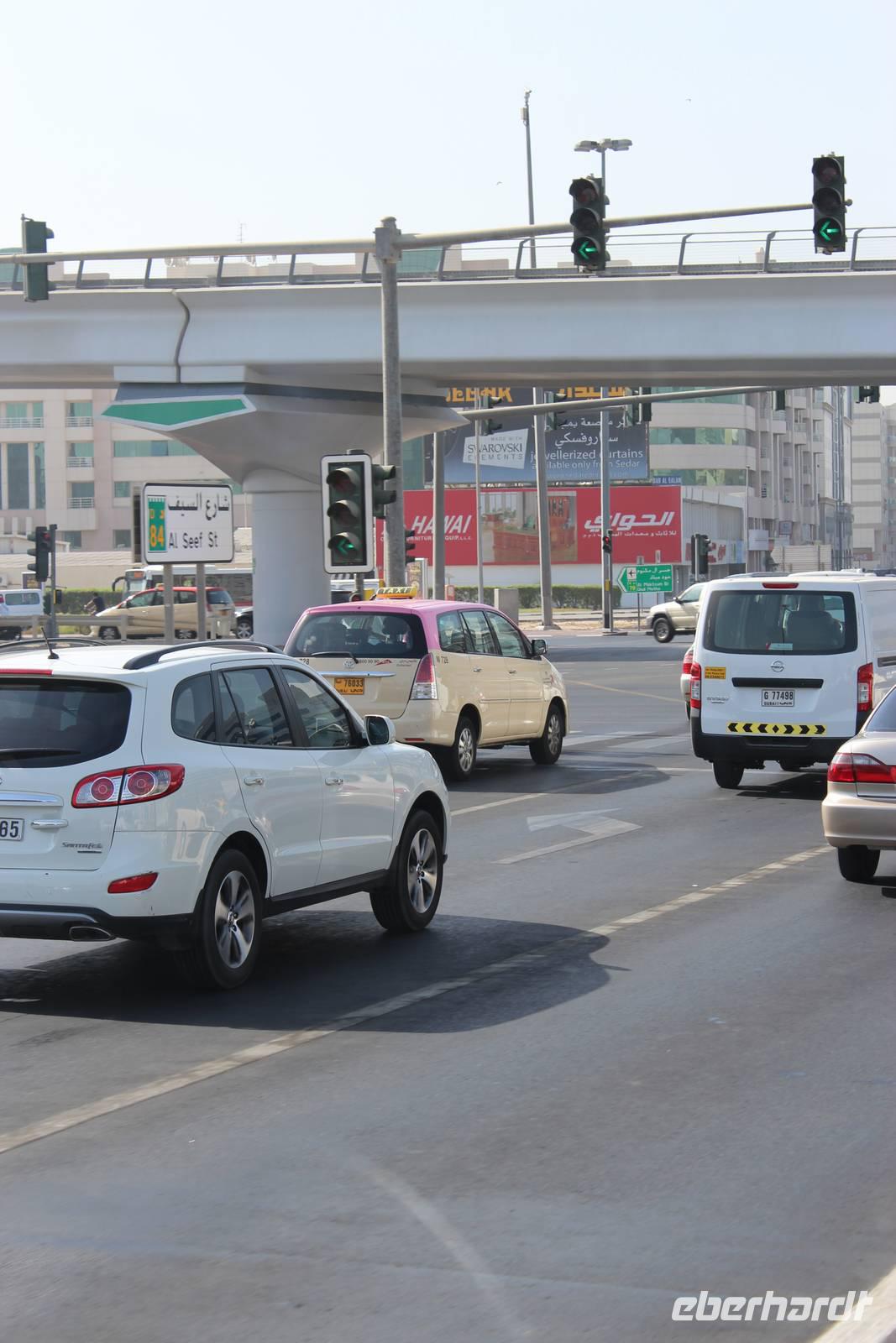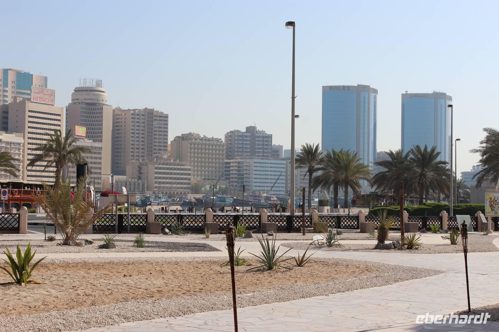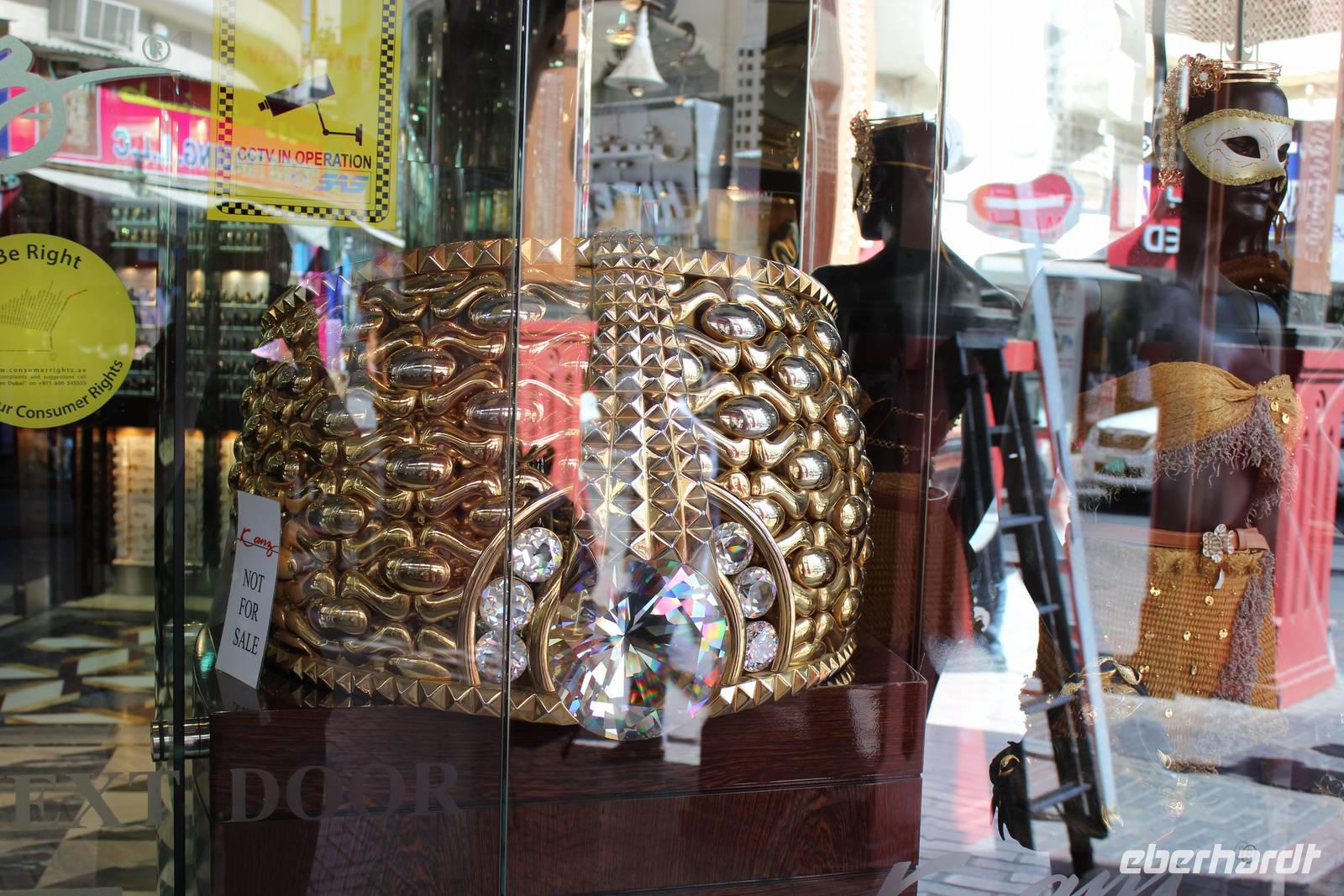 Nach einer kurzen Pause im klimatisierten Dubai Museum ging es durch den ersten Souk zum Creek. Wir nahmen ein Personenboot und fuhren auf die gegenüberliegende Flussseite. Hier ging es als erstes in eine klimatisierte Bushaltestelle. Wir passten fast alle auf einmal hinein. Danach schauten wir auf dem Gewürzsouk vorbei bevor es auf den Goldsouk ging.
