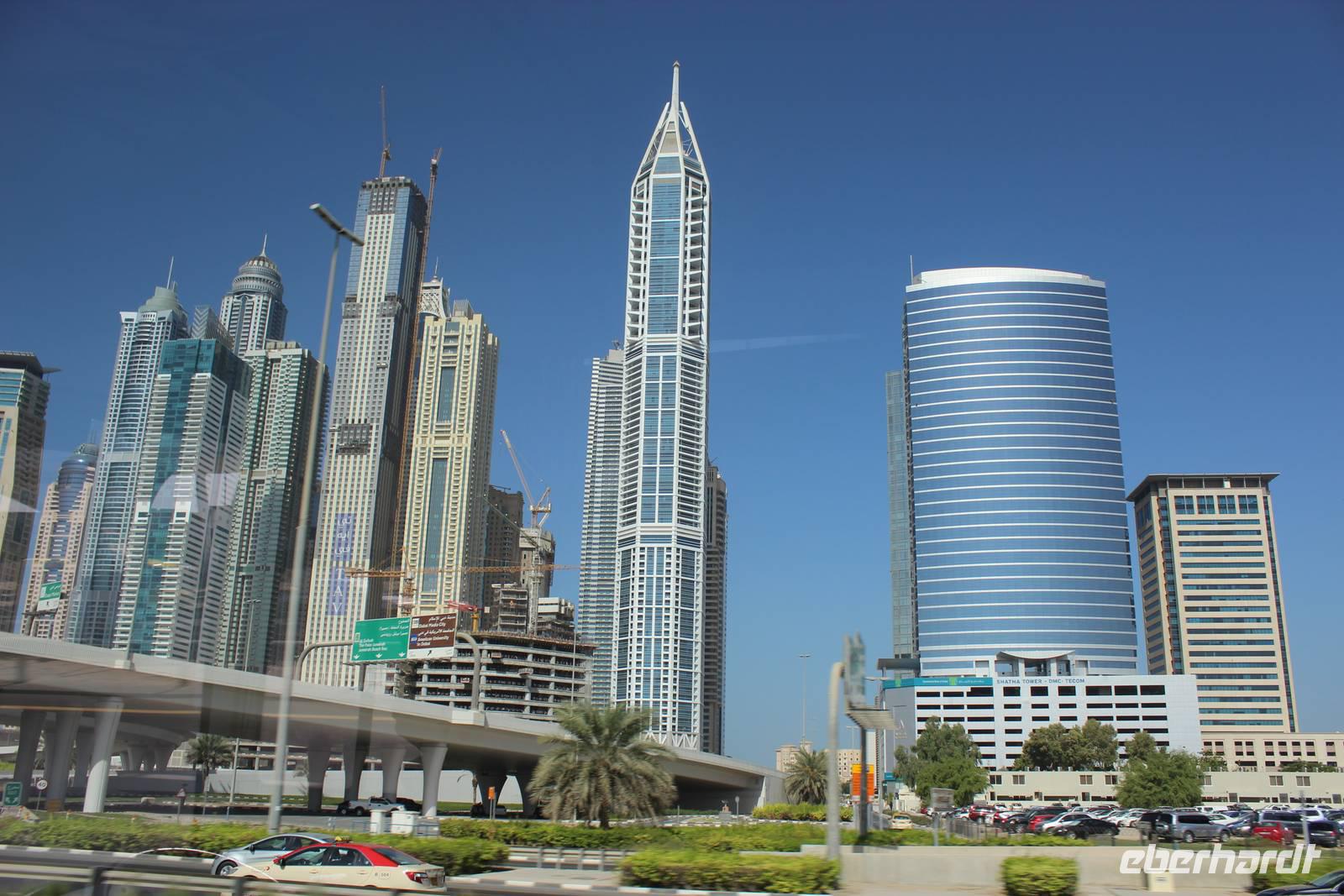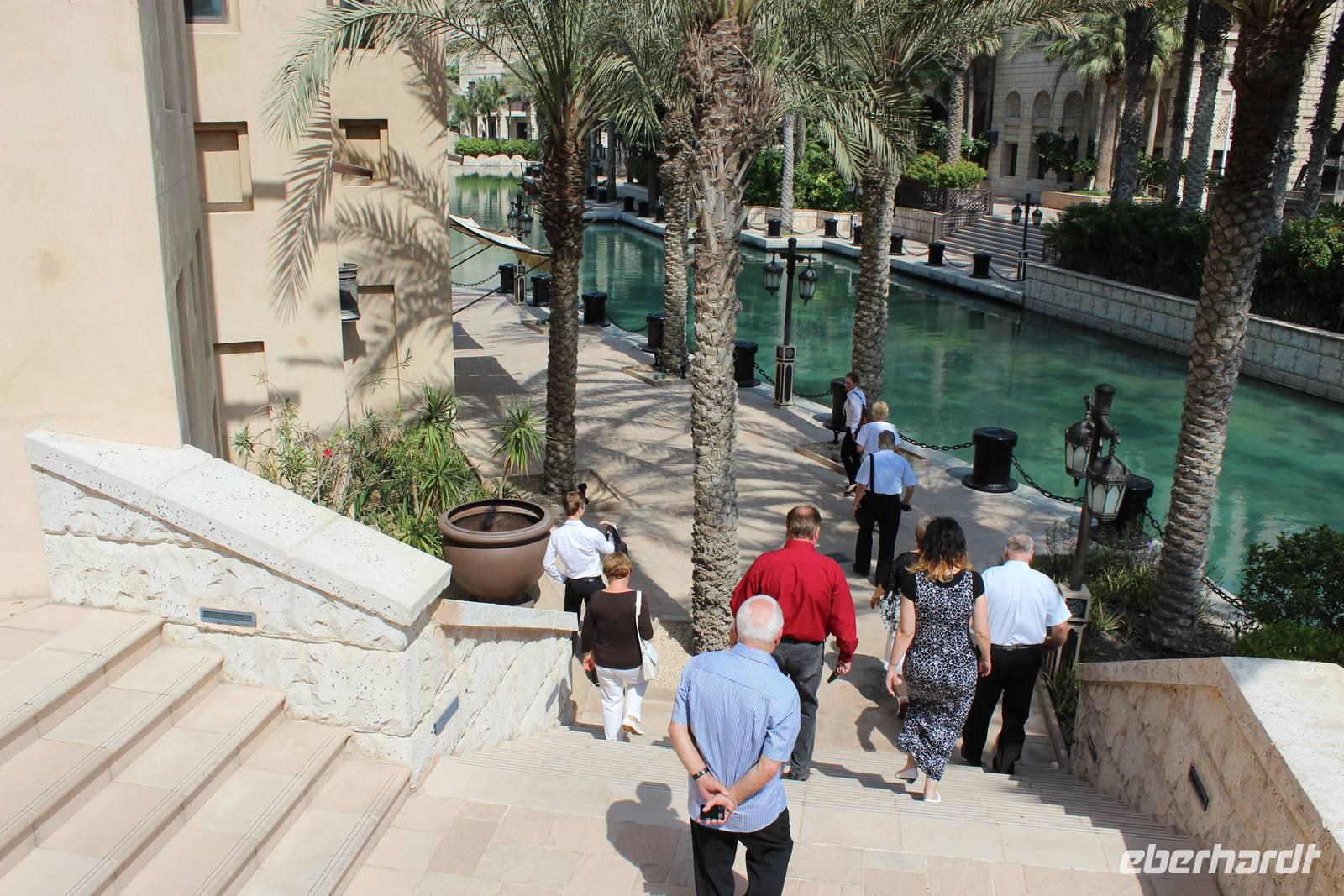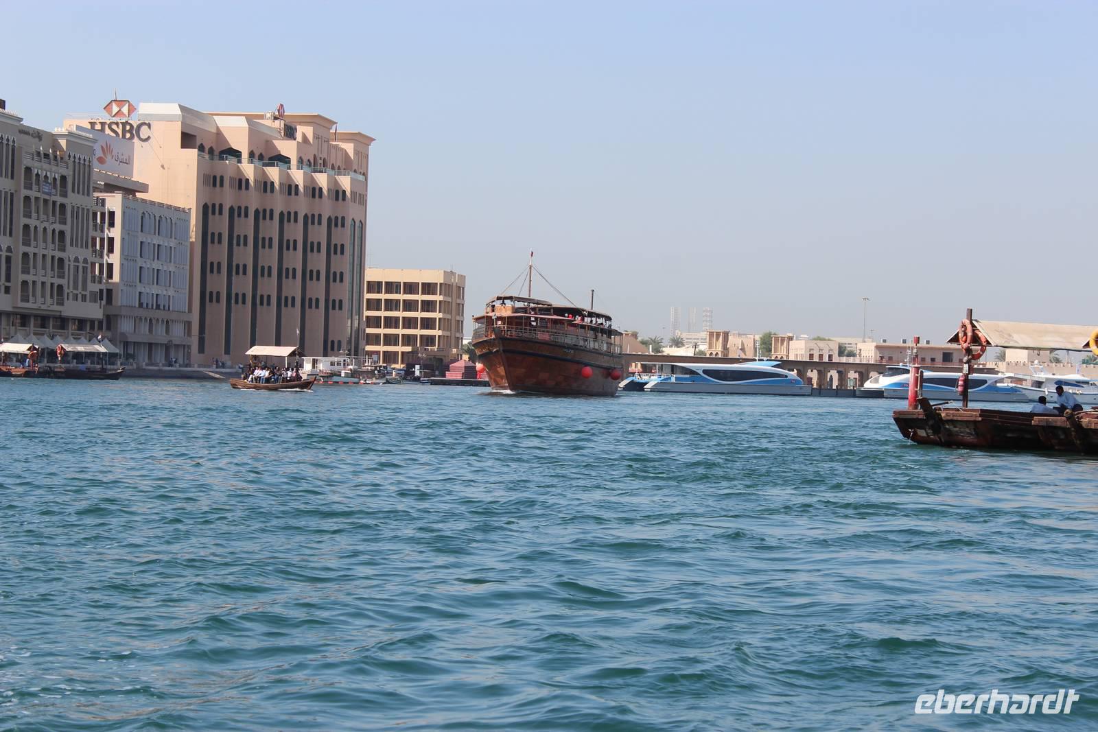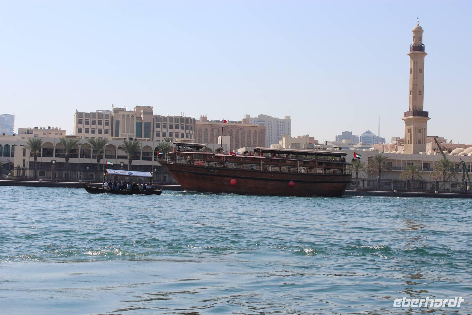Gegen späten Nachmittag fuhren wir zurück zum Hotel. Unterwegs malte unsere örtliche Reiseleiterin einigen unserer weiblichen Gäste ein Henna Tattoo auf die Hand. Diejenigen, die sie nicht im Bus schaffte, bemalte sie im Hotel. Am Abend ging unser örtlicher Reiseleiter dann mit einigen Gästen noch auf die Dhau Cruise Fahrt. Auf dieser Fahrt konnte man die Uferseiten von Dubai am Abend, beim gemütlichen Abendessen einmal sehen und die schön beleuchteten Schiffe fuhren an unserem vorbei. Nach gut zwei Stunden ging es dann zurück zum Hotel.