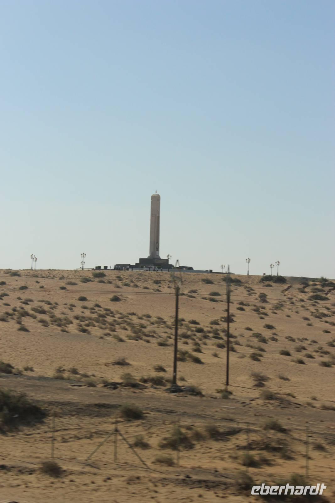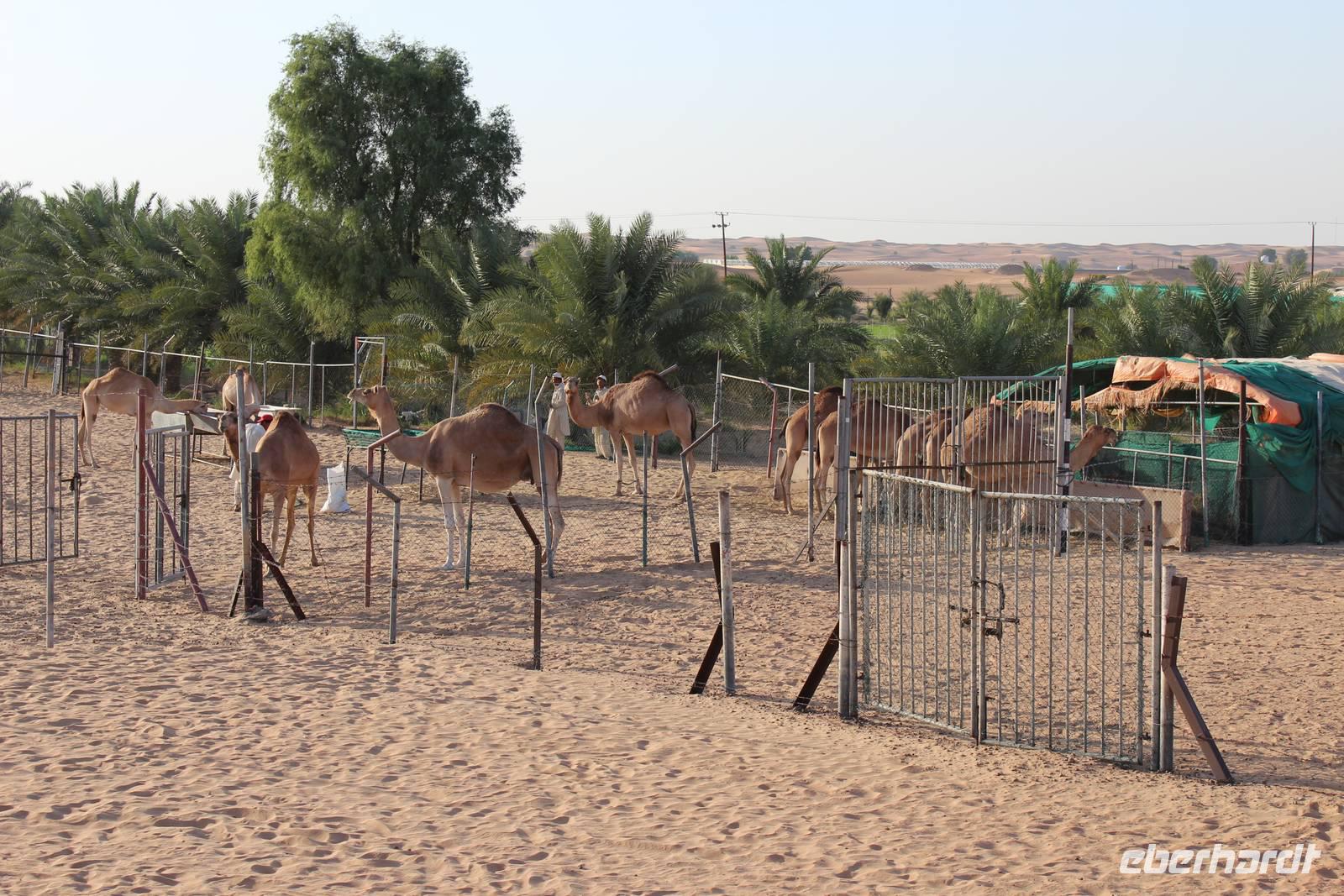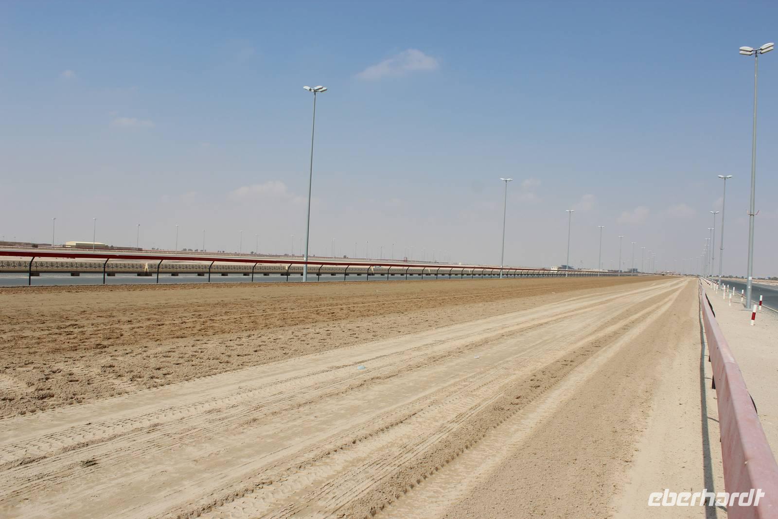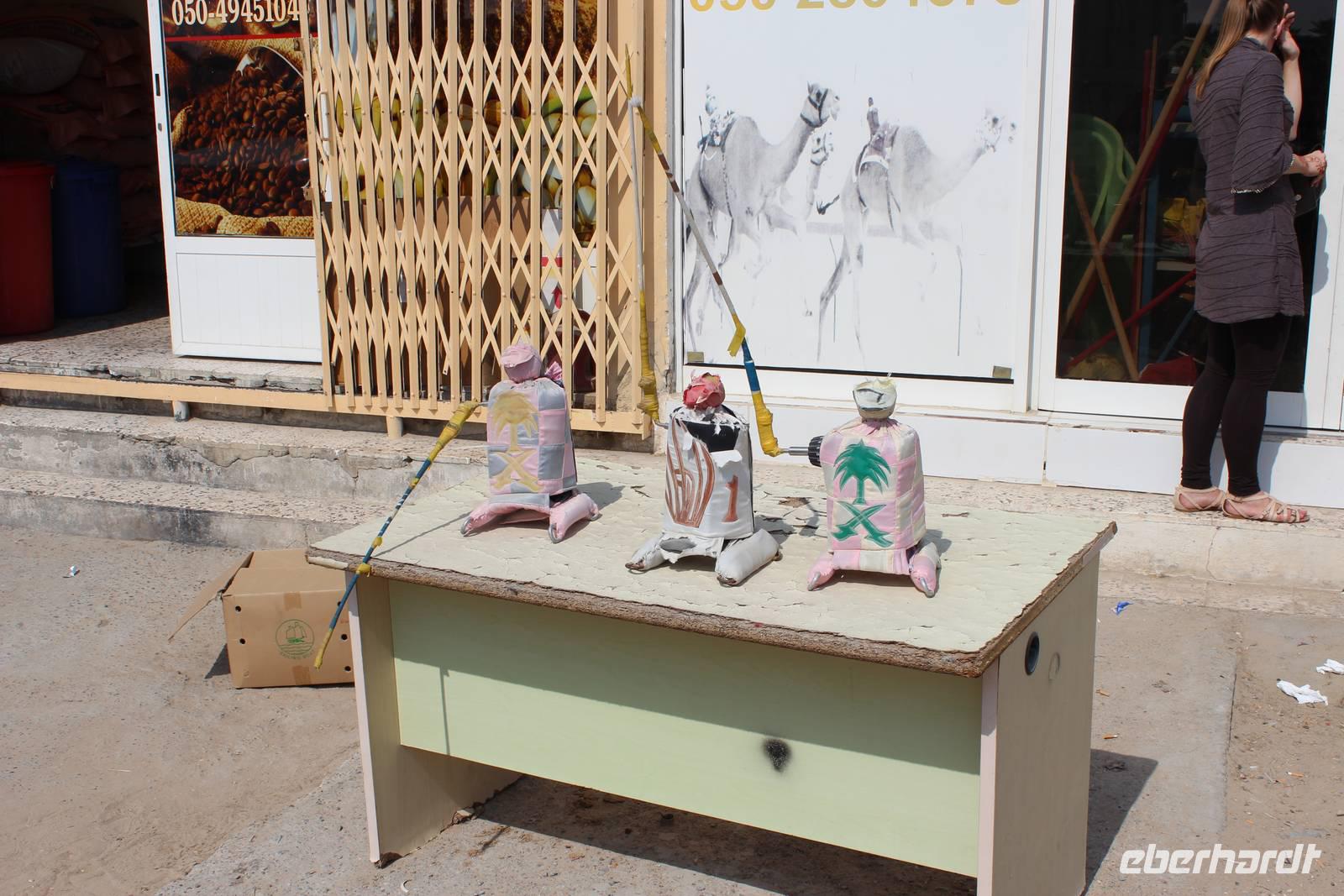 Sehr zeitig ging es mit dem Bus heute nach Al Ain. Unser erster Stopp war heute an der Kamelrennstrecke. Leider war aber kein Training mehr, sodass wir dies nicht live sehen konnten. Aber zum Glück kam gerade ein Kamelrenntrainer mit einigen Rennkamelen vorbei, sodass wir diese fotografieren konnten. Dann zeigte uns unsere örtliche Reiseleiterin noch, wie die modernen Jockeys von heute ausschauen. Diese sind mechanisch betriebene Puppen, welche auf die Kamele gesetzt werden und die nebenher fahrenden Autofahrer betätigen ihre Fernbedienung um die Peitsche in Gang zu setzen.