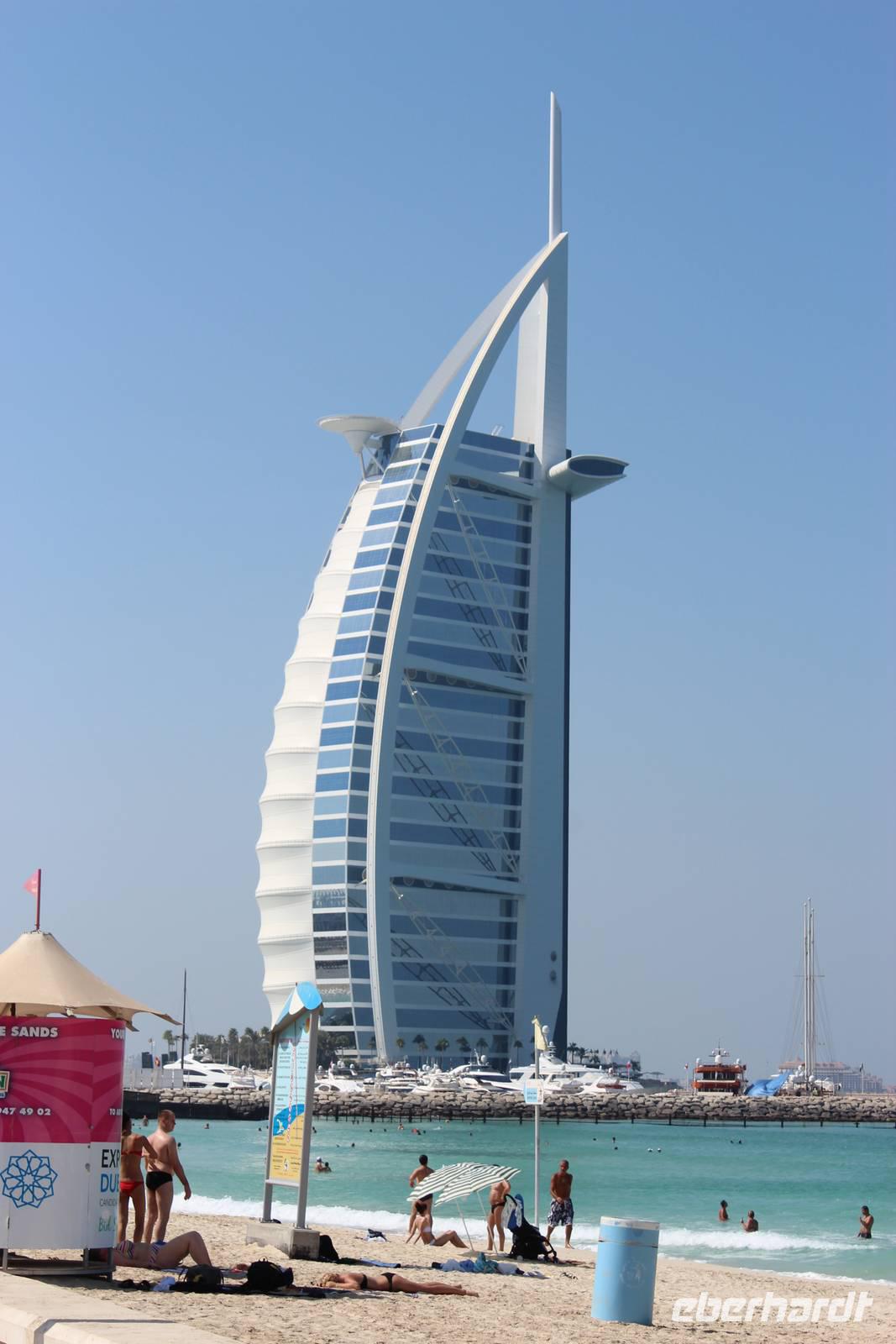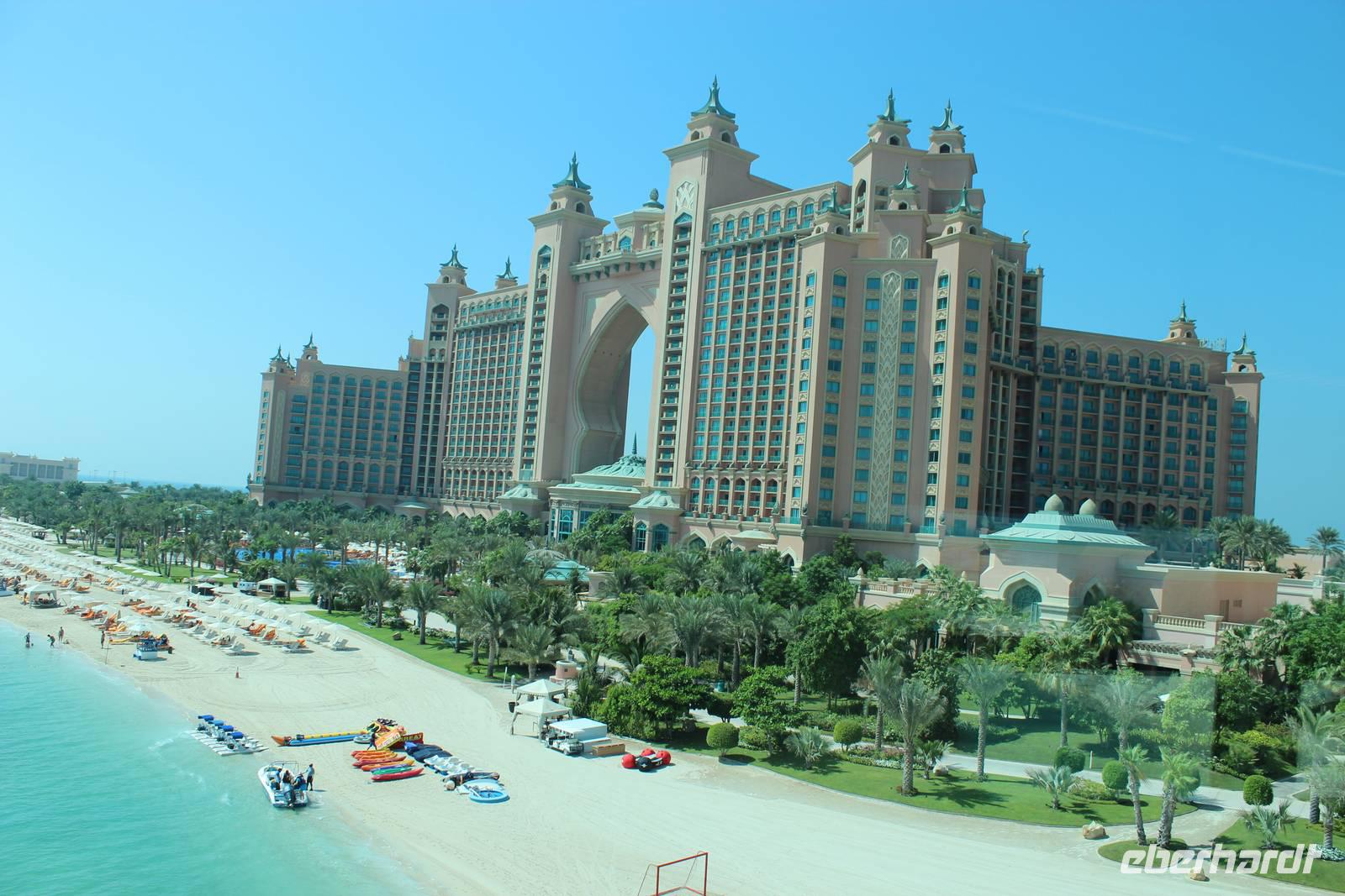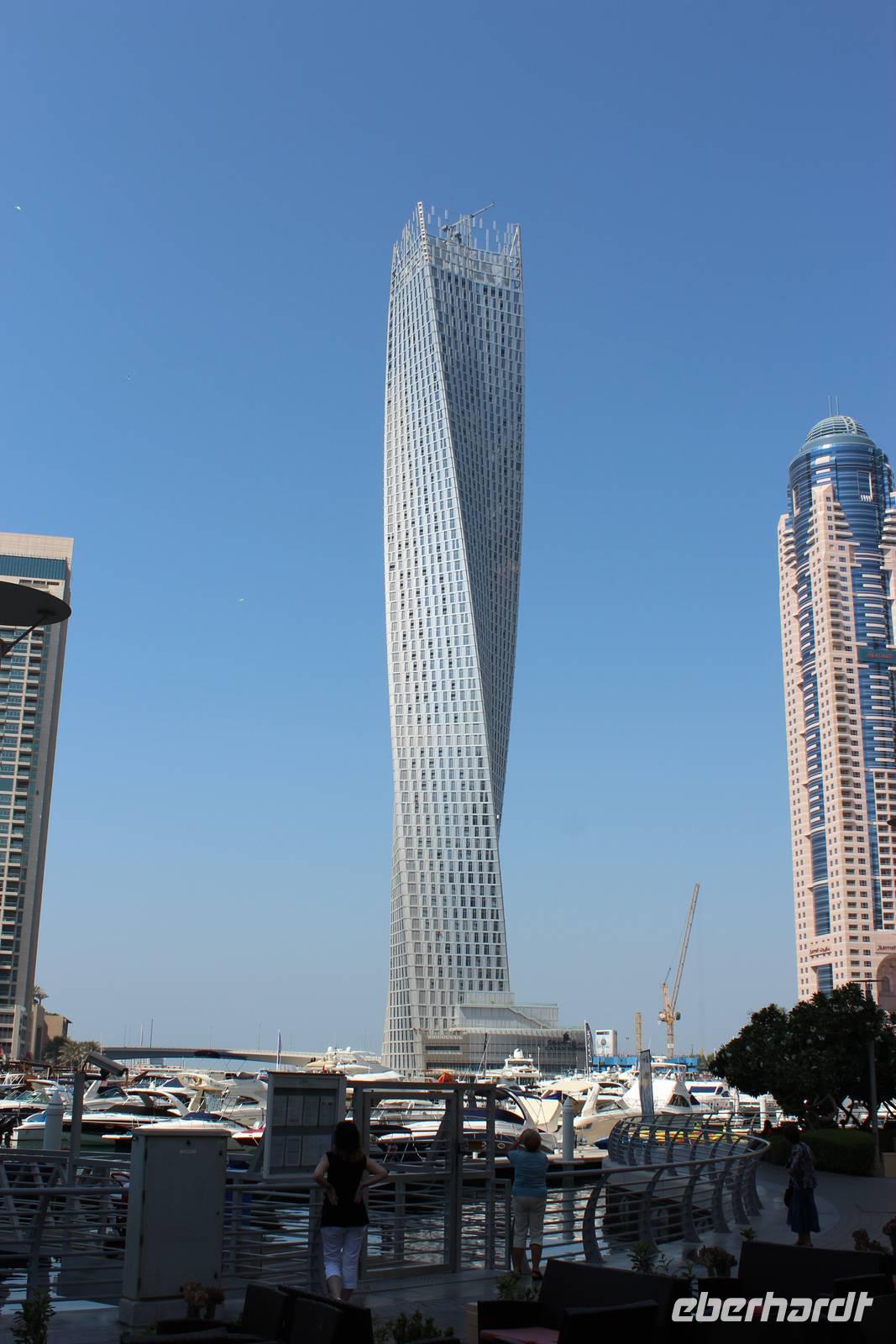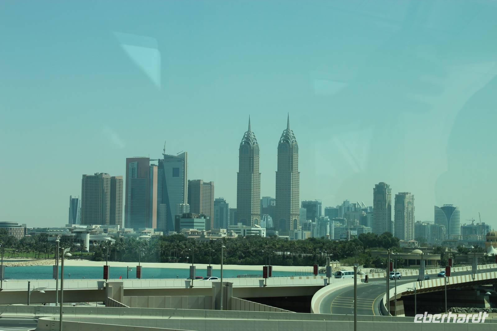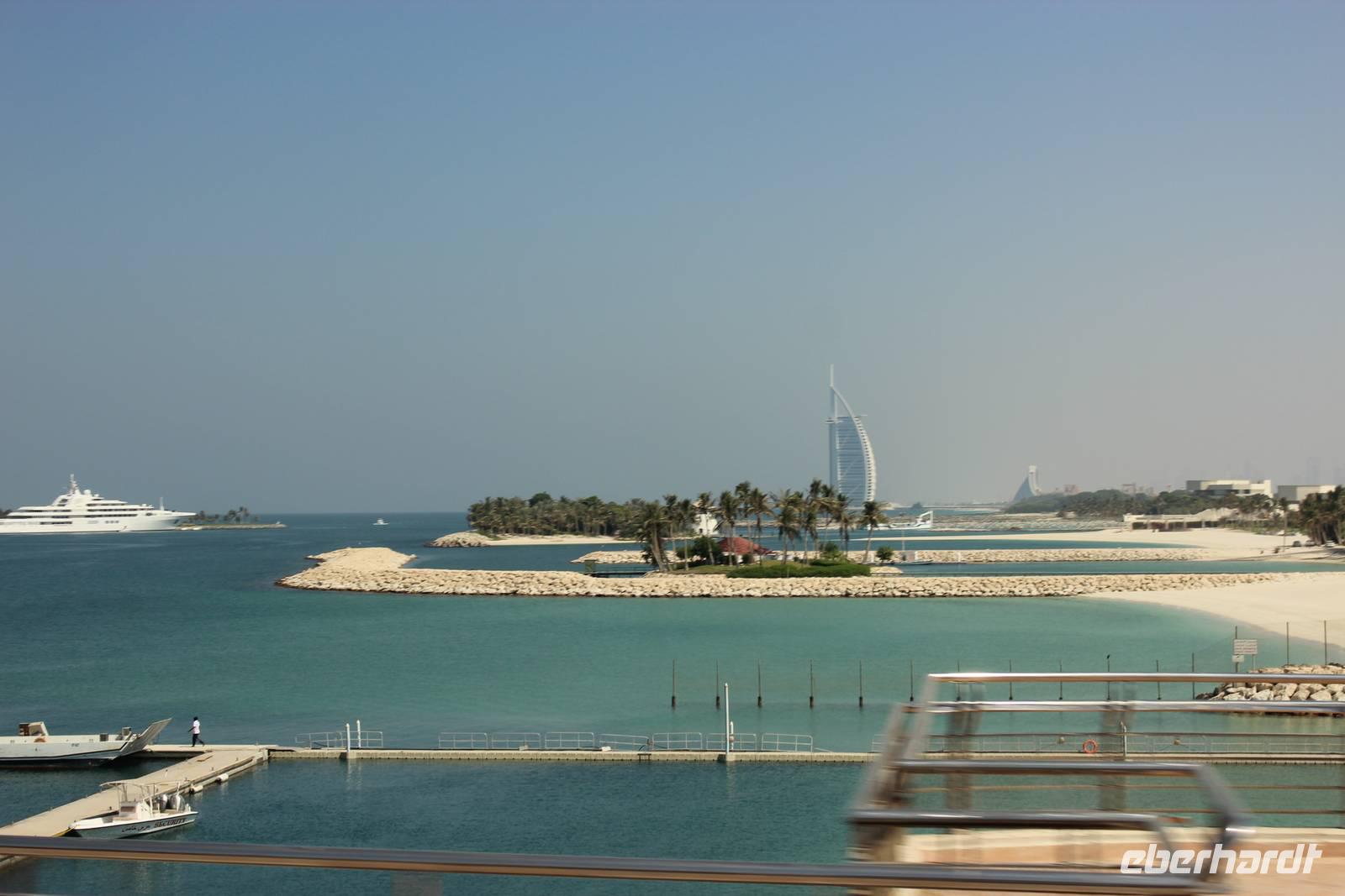 Heute ging es mit dem Bus als erstes zur Palmeninsel Jumeirah. Vorher machten wir aber einen kurzen Stopp am Jumeirah Beach, wo wir das Burj al Arab Fotografieren konnten. Mit dem Bus fuhren wir zum Atlantis Hotel auf der Palmeninsel, welches wir ein wenig Besichtigen konnten. Nach der Besichtigung überraschte uns unser Reisebegleiter damit, dass er die Metrofahrt von der Palmeninsel Jumeirah zum Festland sponserte. Die Metro fährt vollelektronisch und wir hatten eine super Aussicht von oben auf die Insel. Auf dem Festland wieder angekommen, gingen wir zum Dubai Marina. Hier wurden die Hochhäuser sehr nah aneinander gebaut, und ein gedrehtes Hochhaus war in der Mitte zu sehen.