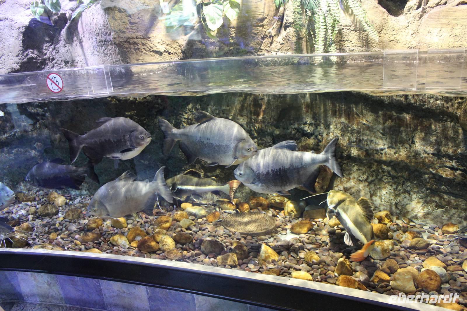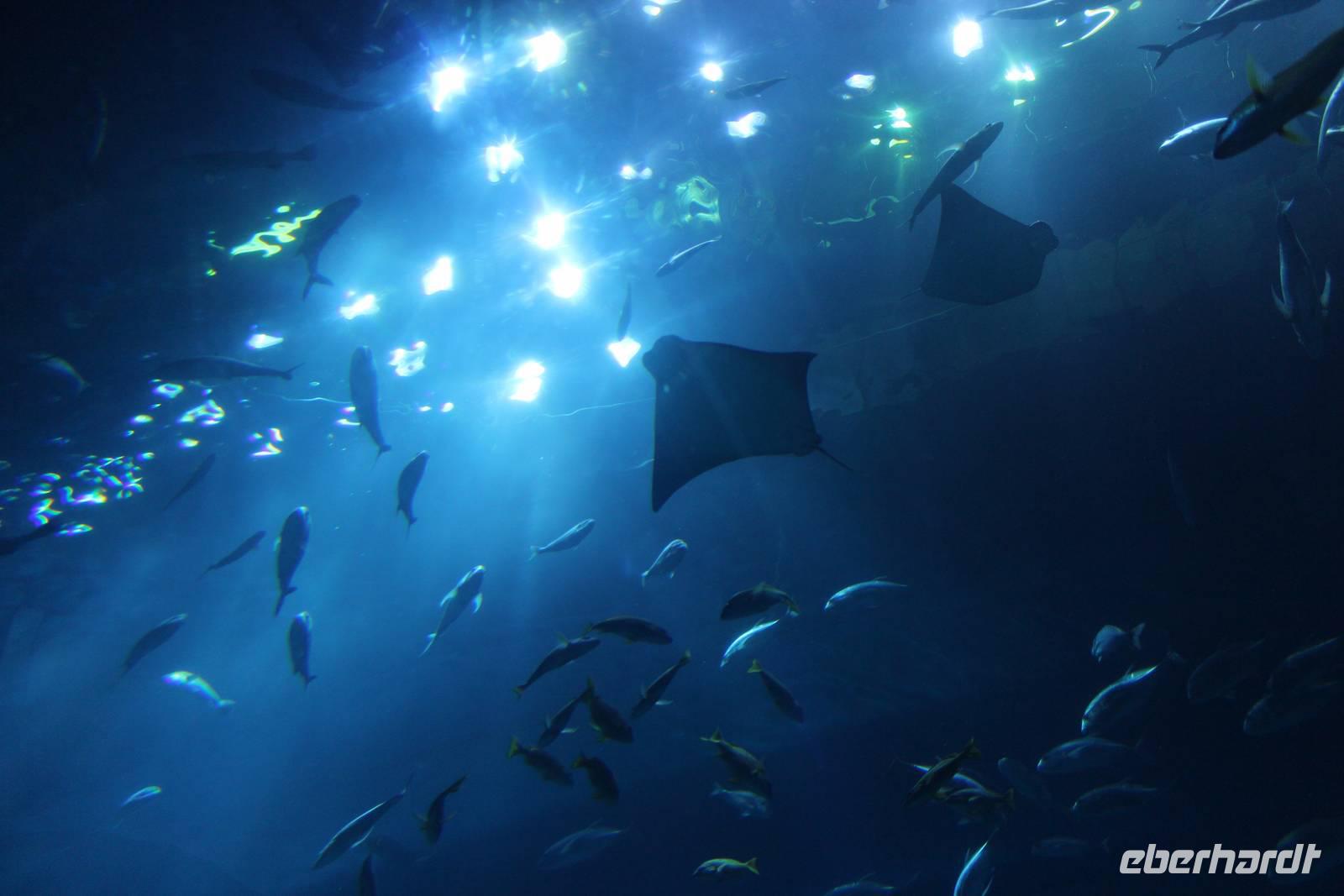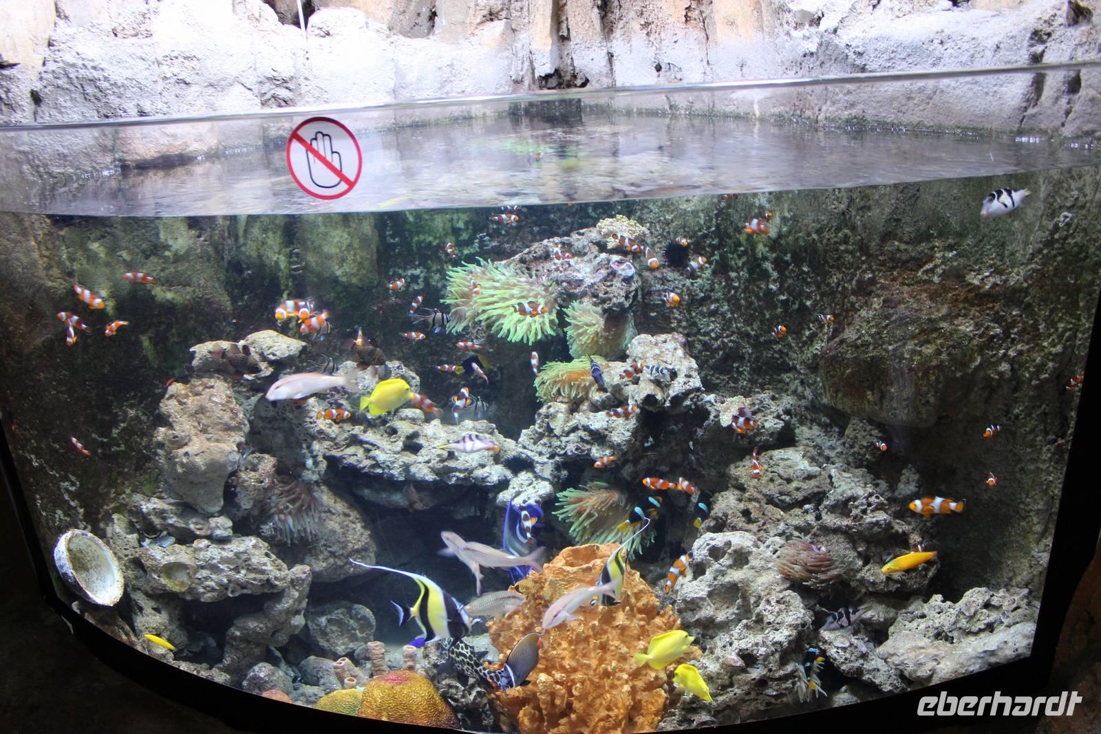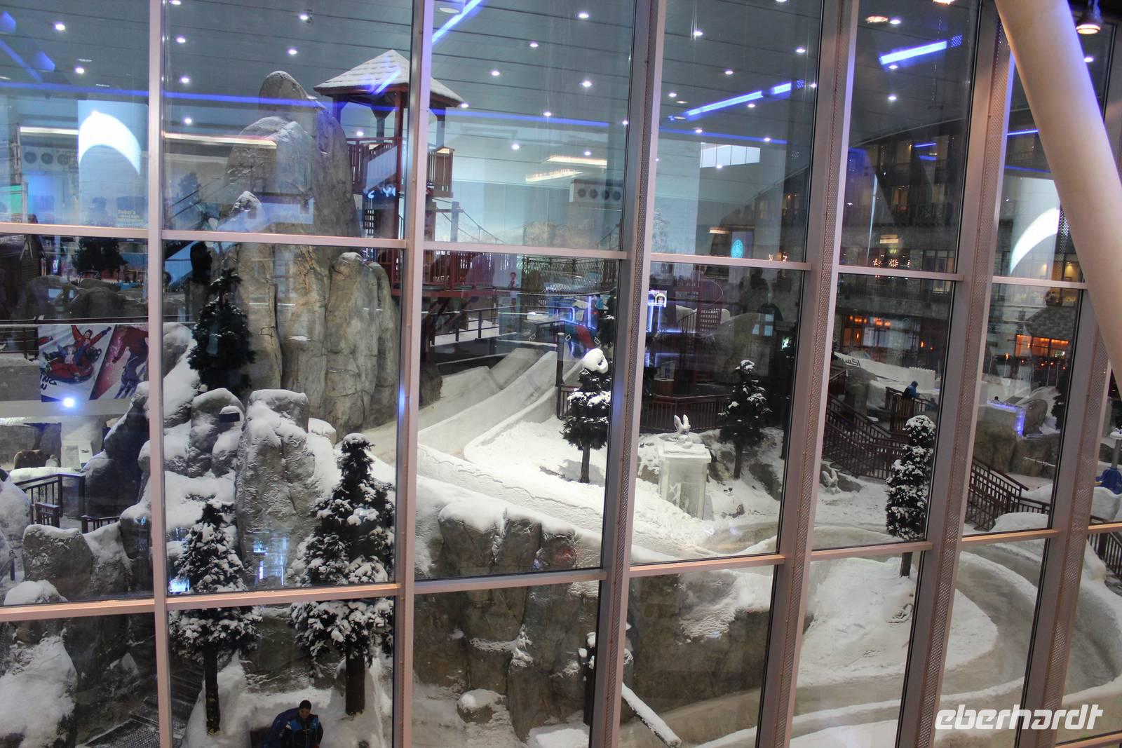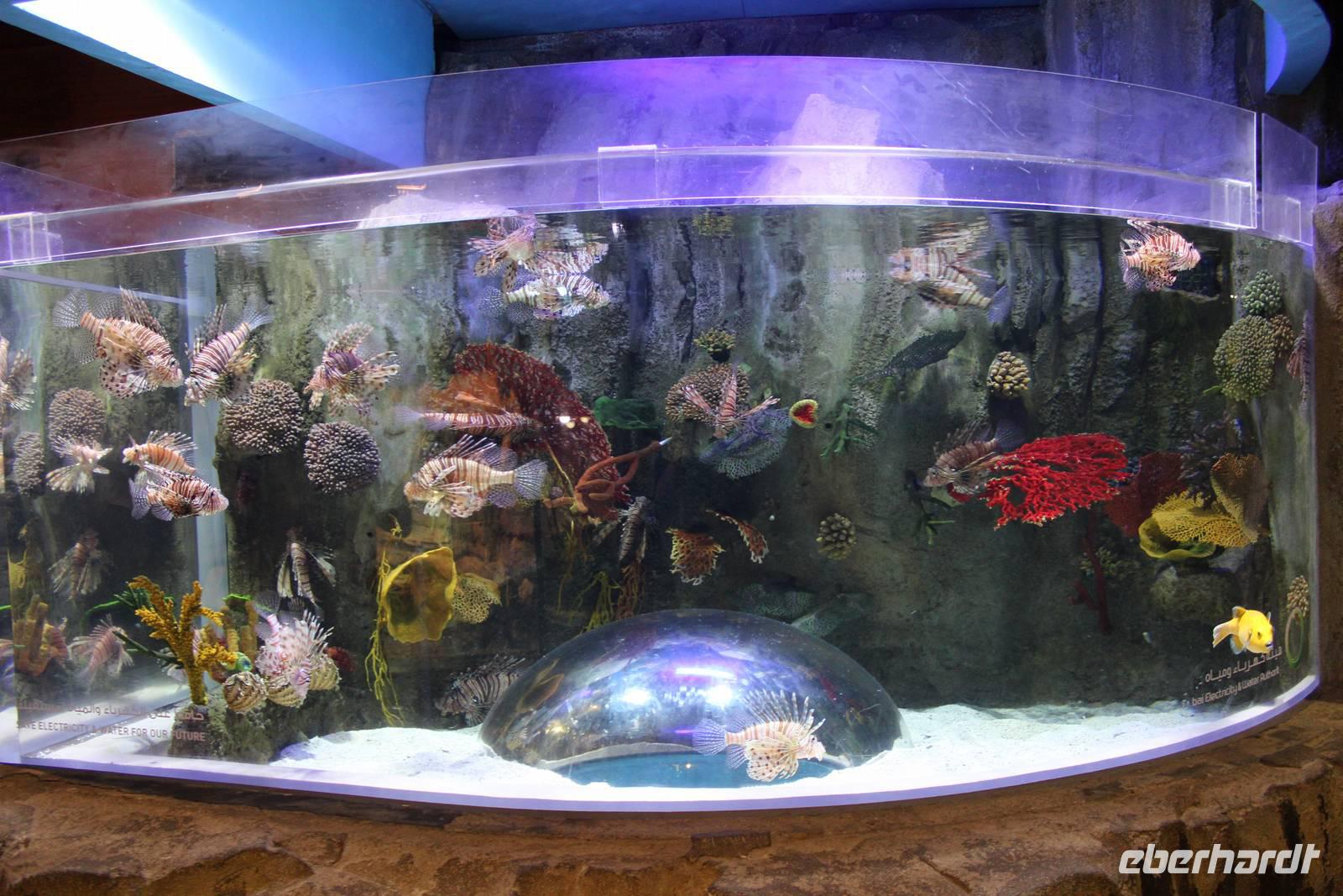Vom Dubai Marina ging es zur größten Mall der Welt. Über 1200 Geschäfte, eine Eishalle, zwei große Aquarien, und vieles mehr konnte man hier sehen und bestaunen. Nach einem längeren Rundgang durch das Aquarium, durch den Zoo und überhaupt durch die Mall, war es dann auch soweit. Wir stellten uns für die Aussichtplattform auf dem größten Hochhaus der Erde an. Mit 10m die Sekunde fuhren wir die Etagen hinauf auf die 124te Etage. Leider war die Sicht nicht die allerbeste, dennoch hatten wir einen weiten Blick über Dubai. Um 18 Uhr waren wir dann alle draußen vor dem Burj Khalifa und bestaunten die Wasserspiele, das erste lief 18 Uhr, das andere 18:30 Uhr und beide gingen mind. 3 min. Danach fuhren wir von der Dubai Mall zu den Twin Towers wo wir unser Abendmahl auf der Terrasse genossen, mit einem wunderschönen Blick auf den Creek.