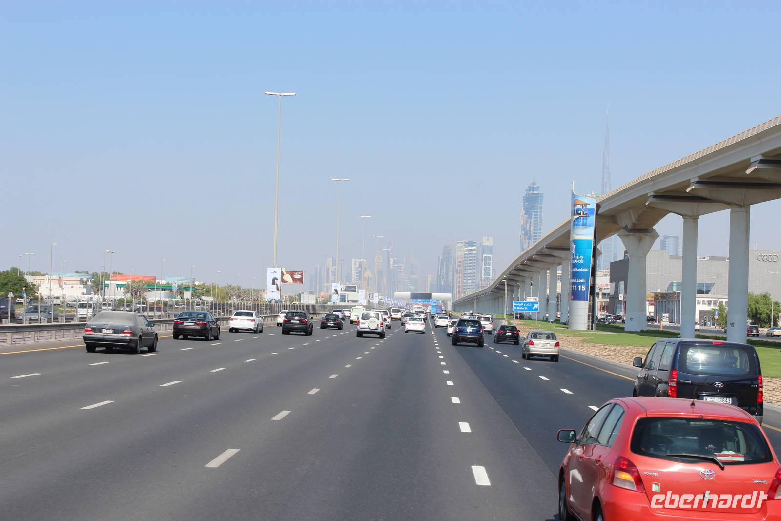 Gegen 6 Uhr morgens drehte unser Flieger die letzten Kreise, bevor wir die Landeerlaubnis bekamen. Auf dem International Airport von Dubai liefen wir eine lange Strecke bis zur Passkontrolle. Dort angekommen bekamen wir den Stempel in unsere Pässe und konnten unser Gepäck holen. Als wir unser Gepäck hatten versammelten wir uns noch einmal, bevor wir draußen auf unsere örtliche Reiseleiterin Anja stießen.