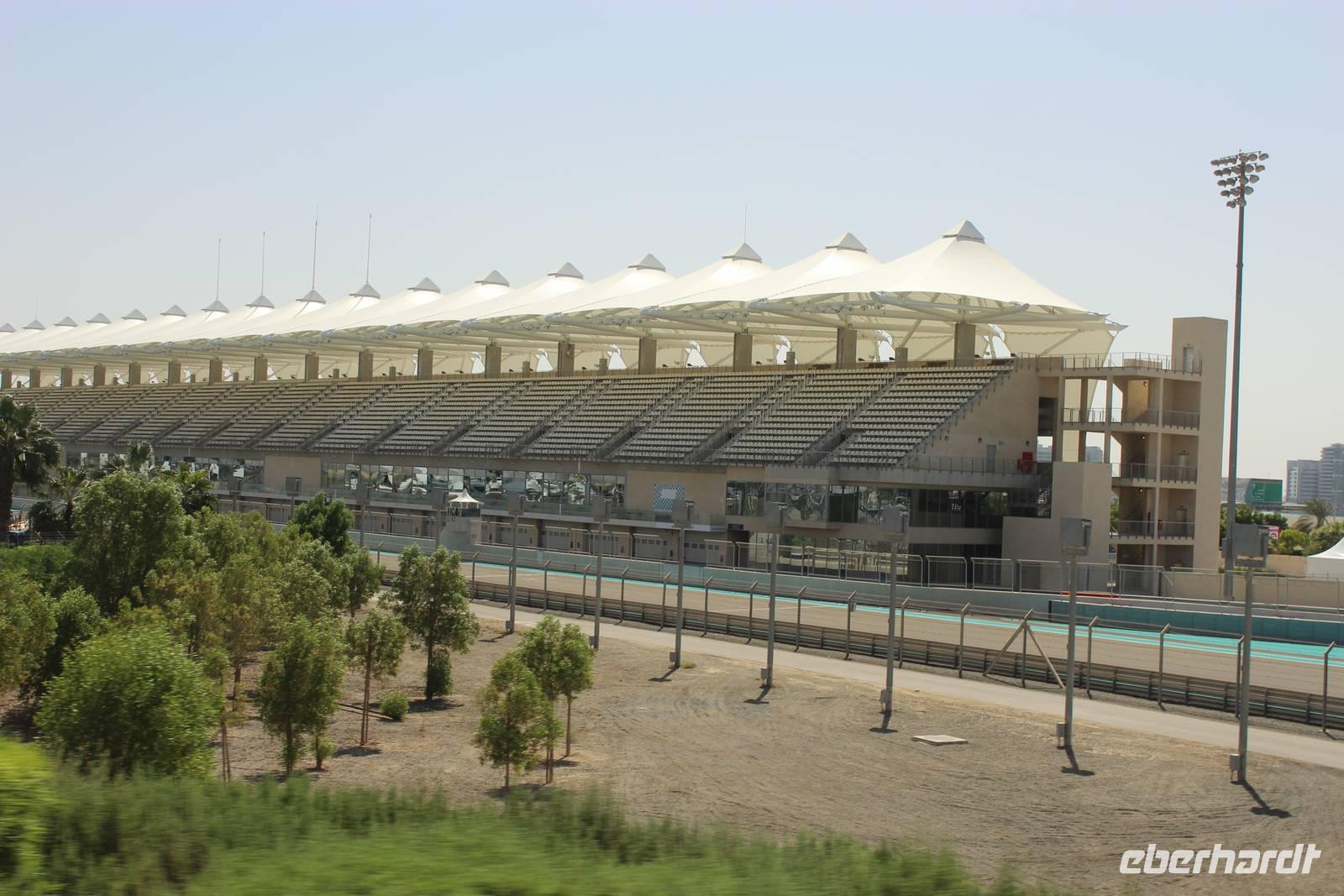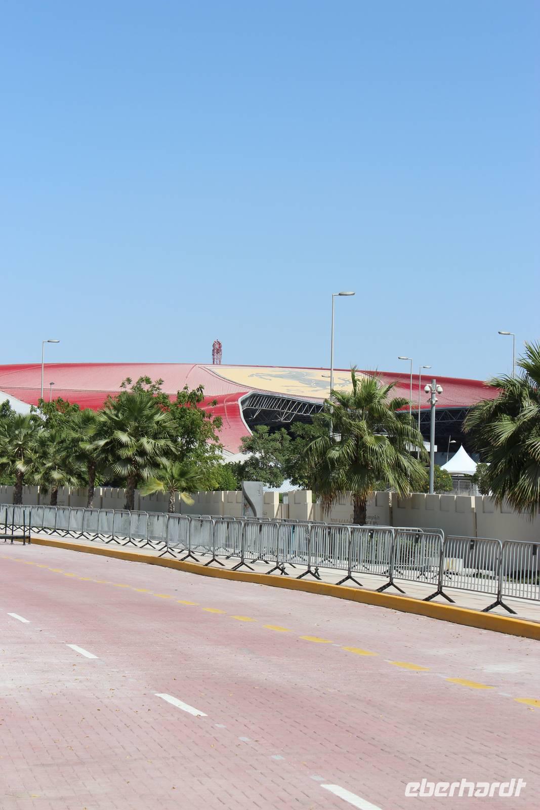 Heute ging es nach Abu Dhabi, in die Stadt der Formel 1. Die Fahrt führte uns als erstes zur Ferrari World, wo, wie kann es anders sein, die schnellste Achterbahn der Welt fährt. Von außen konnten wir das große Ferrari Logo auf dem Dach fotografieren. Gleich daneben befindet sich die Formel 1 Rennstrecke. Um sich ein wenig prominent fühlen zu können, erfragte unsere örtliche Reiseleiterin im Hotel an der Formel 1 Rennstrecke, ob wir die Terrasse dürften. Zu unserem Glück durften wir dies auch und hatten einen sehr guten Blick auf ein Teilstück dieser Rennstrecke. Leider fuhren die Rennfahrer erst eine Woche später, sodass uns dieses Highlight versagt blieb. Von der Rennstrecke ging es zum Dattel- und Feigenmarkt, wo wir alle auch etwas erwarben. Als wir in unseren Bus einstiegen, konnten wir das breite Lächeln der Verkäufer sehen, welche an diesem Tag wohl ihren großen Umsatz gemacht hatten. Als nächstes fuhren wir nach Heritage Village, wo wir einen großartigen Blick auf die Skyline von Abu Dhabi hatten. Unsere örtliche Reiseleiterin kaufte sich hier eine traditionelle Abaya, welche sie für eines unserer nächsten Ziele später anzog. Weiter ging es mit dem Bus dann zum Emirates Palace. Hier ist wirklich alles Gold was glänzt. Bei einem leckeren Kaffee mit herzhafter und süßer Speise genossen wir das Emirates Palace und selbst beim Essen wurde Gold verwendet. Was für einen Luxus wir doch genossen.