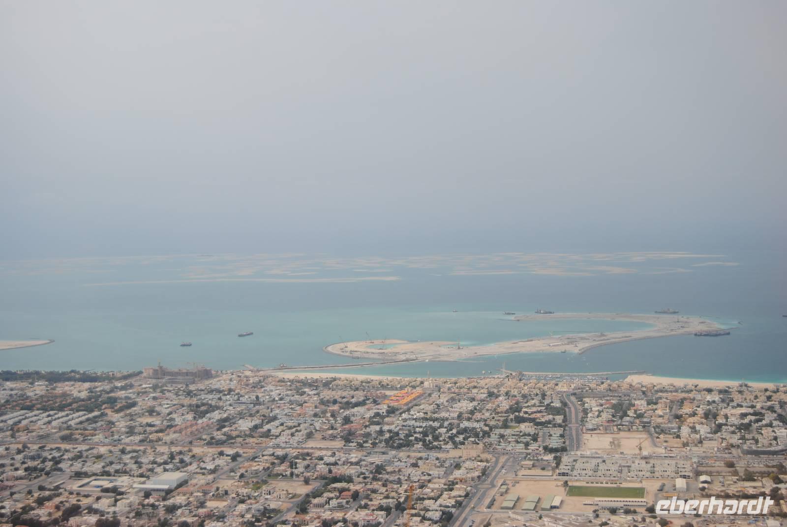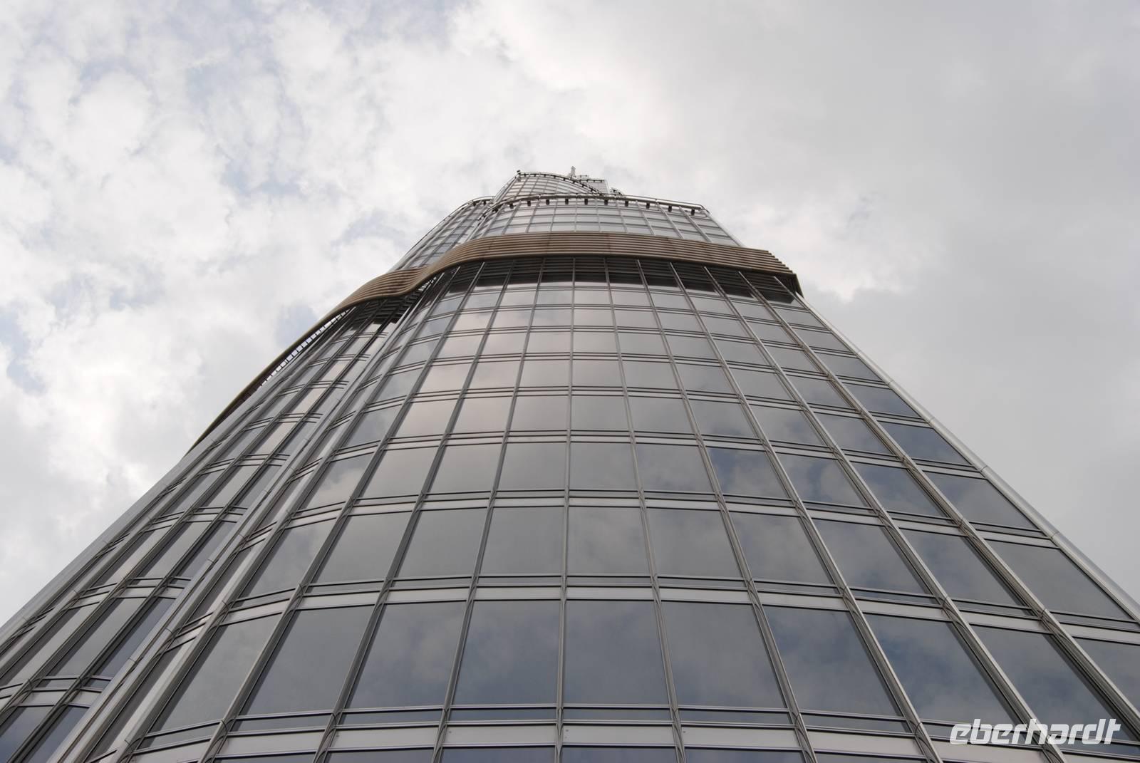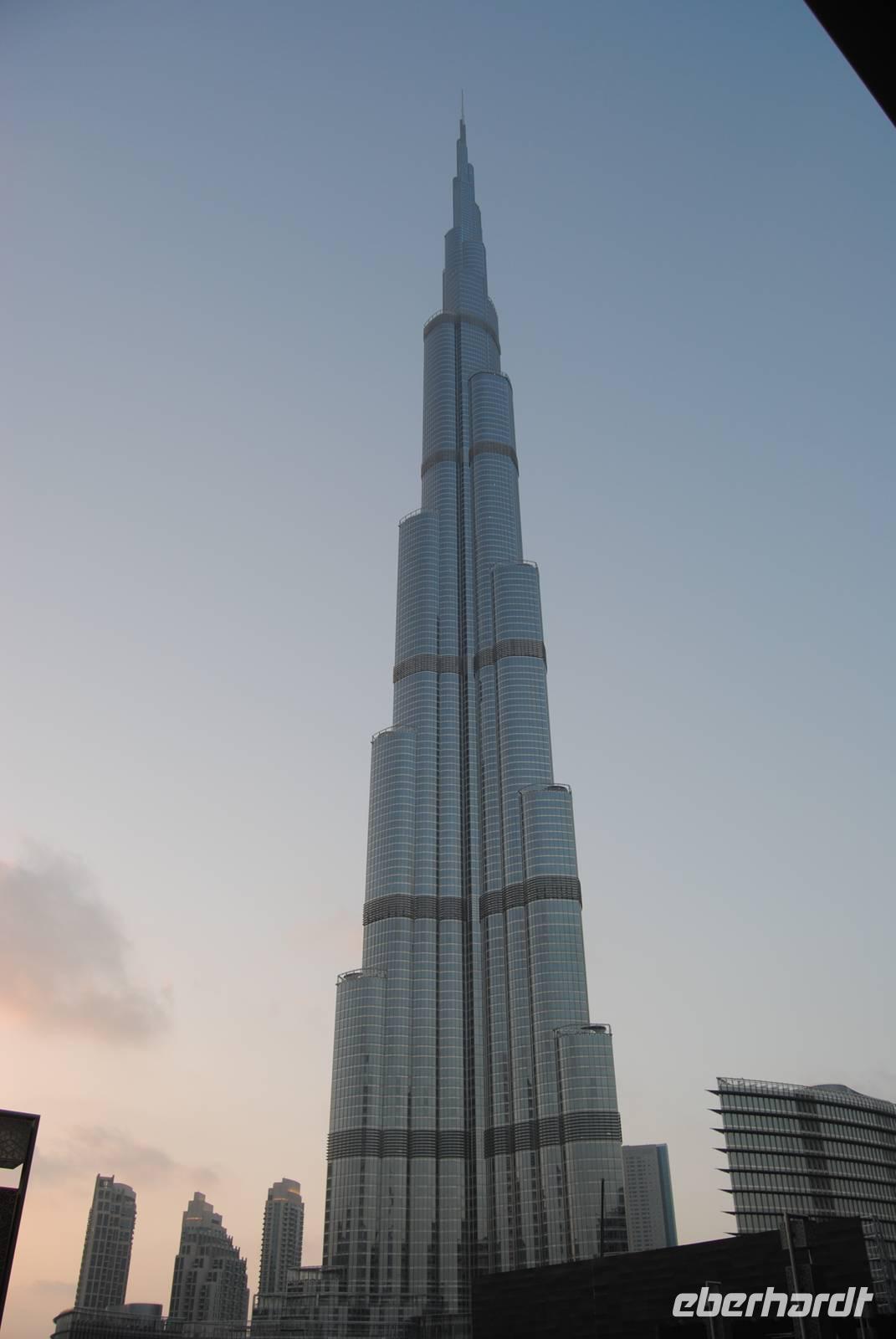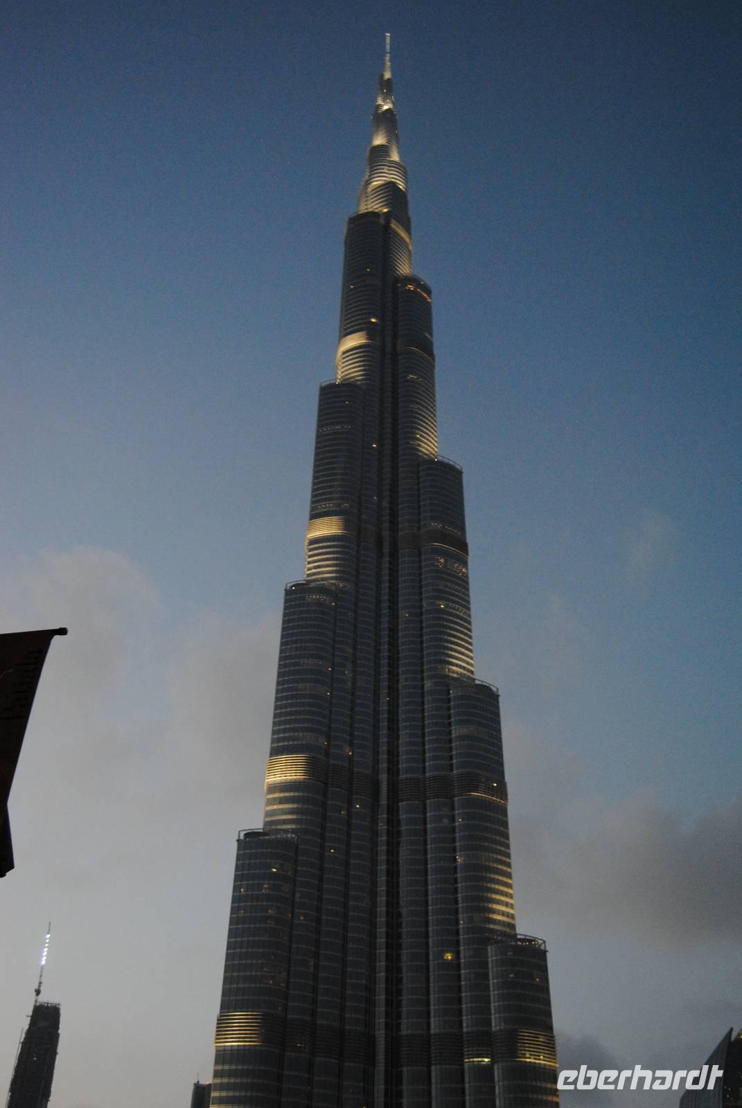 Über die Sheikh-Zayed-Road, der größten Schnellstraße Dubais, die an der breitesten Stelle sechs Spuren in jede Richtung misst, fuhren wir zunächst auf Palm Jumeirah, der bislang einzigen fast vollständig errichteten, künstlichen Insel vor Dubai. Auf dem ca. 4 km langen „Stamm" der Insel fuhren wir bis an Atlantis Hotel und schauten uns das Gebäude mit seinem imposanten Torbogen an. Den Rückweg von der „Palmenspitze" in Richtung „Palmenwurzel" fuhren wir dann mit der Monotrail, einer fahrerlosen Einschienenbahn. Nach einem kurzen Abstecher in die Dubai Marina fuhren wir anschließend mit dem Bus zunächst in die Mall of the Emirates, in der sich mit dem Ski Dubai, der größte Indoor-Skihalle der Welt befindet. Im Anschluss fuhren wir dann in die Dubai Mall, eines der mit einer Verkaufsfläche von ca. 350.000 m2 größten Einkaufszentren der Welt. In der Dubai Mall befinden sich über 1.200 Geschäfte, eine ganzjährig geöffnete Eislaufbahn, sowie ein mit 10.000 Kubikmetern Seewasser gefülltes Aquarium, welches über 30.000 Meerertiere beherbergt. Am Nachmittag stand dann eines der Höhepunkte unserer Reise auf dem Programm, die Auffahrt auf das Welthöchste Gebäude der Welt, den Burj Khalifa. Mit dem Aufzug fuhren wir bis in die 124. Etage des mit 828 m höchsten Gebäudes der Welt und erreichten dann die Aussichtsplattform, von der sich ein toller Blick über Dubai bietet. Am frühen Abend trafen wir uns dann alle zusammen am Fuße des Turmes zu schauten uns gemeinsam die beeindruckenden Wasserspiele an, die hier jeden Abend ab zwischen 18 und 22 Uhr stattfinden.