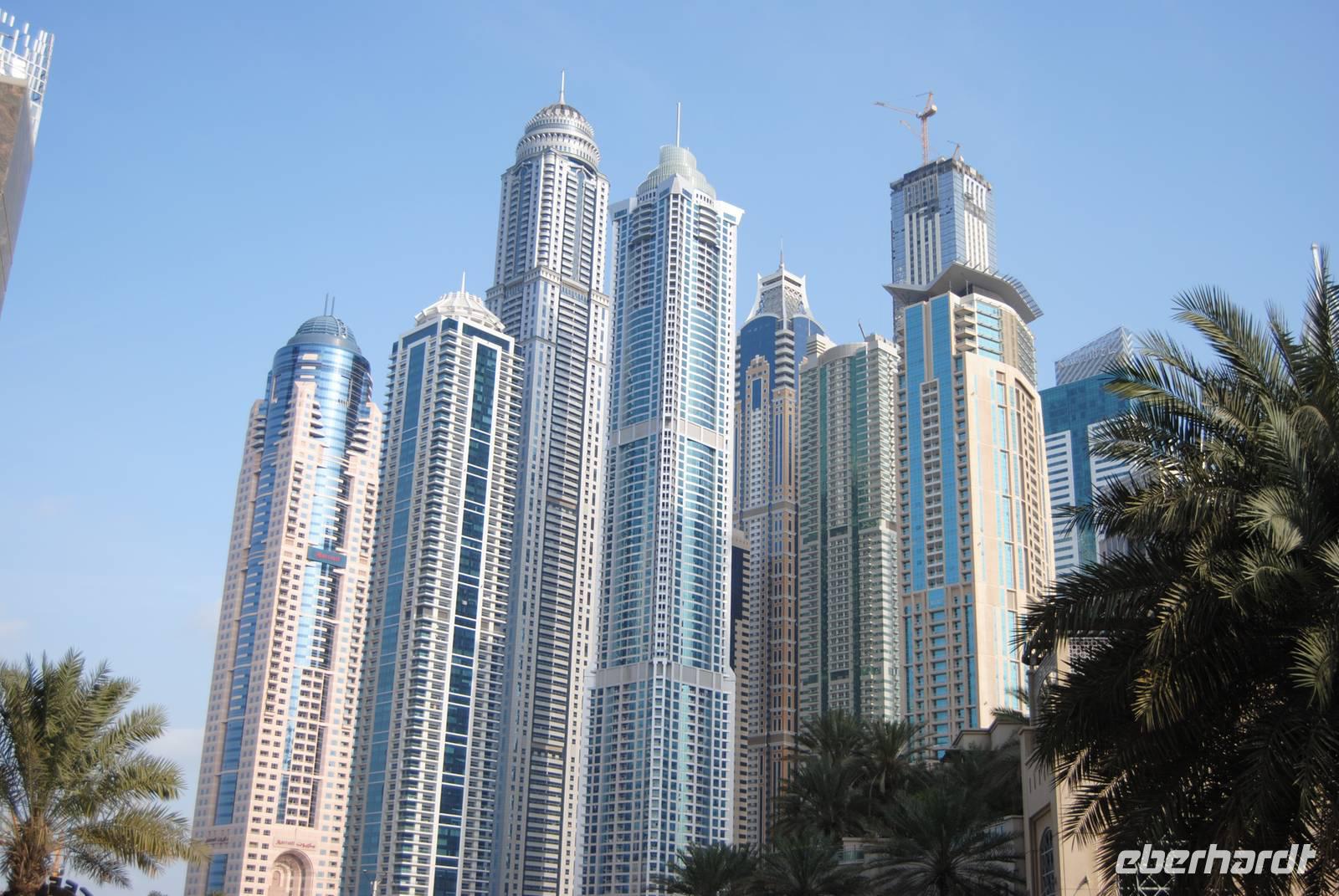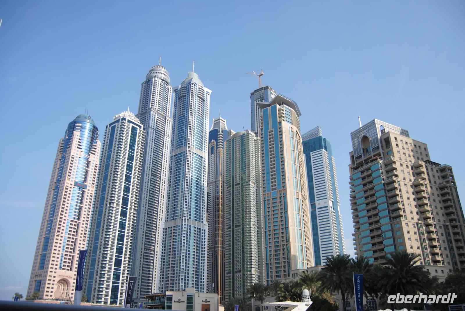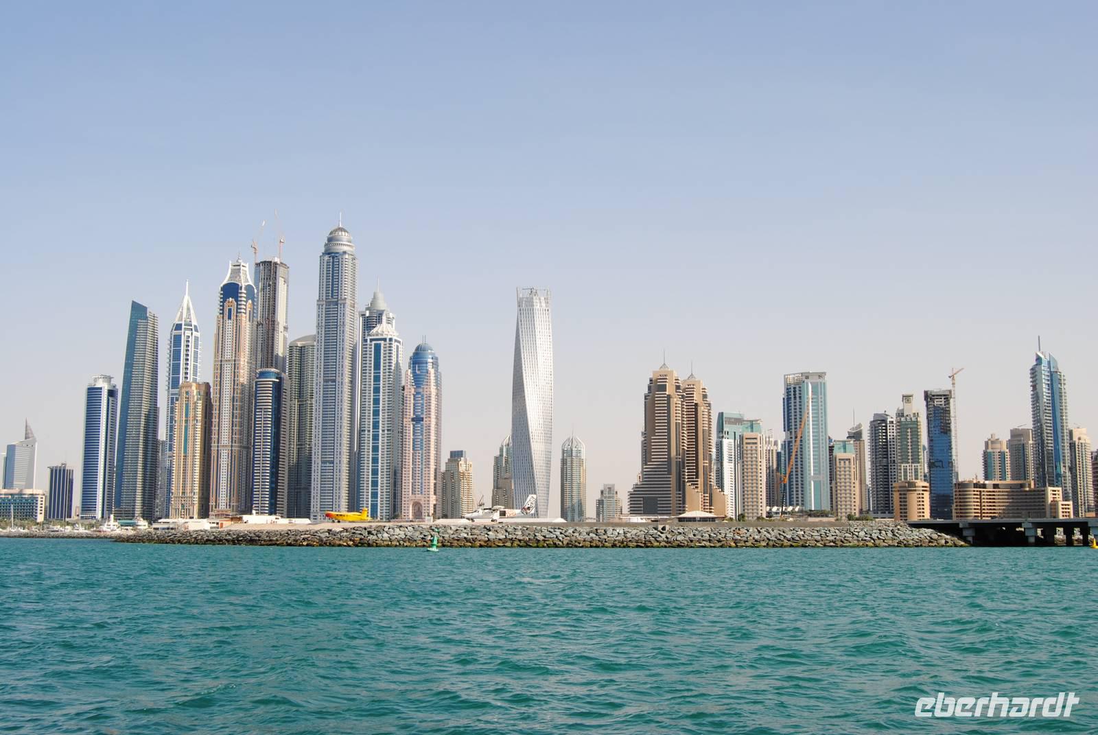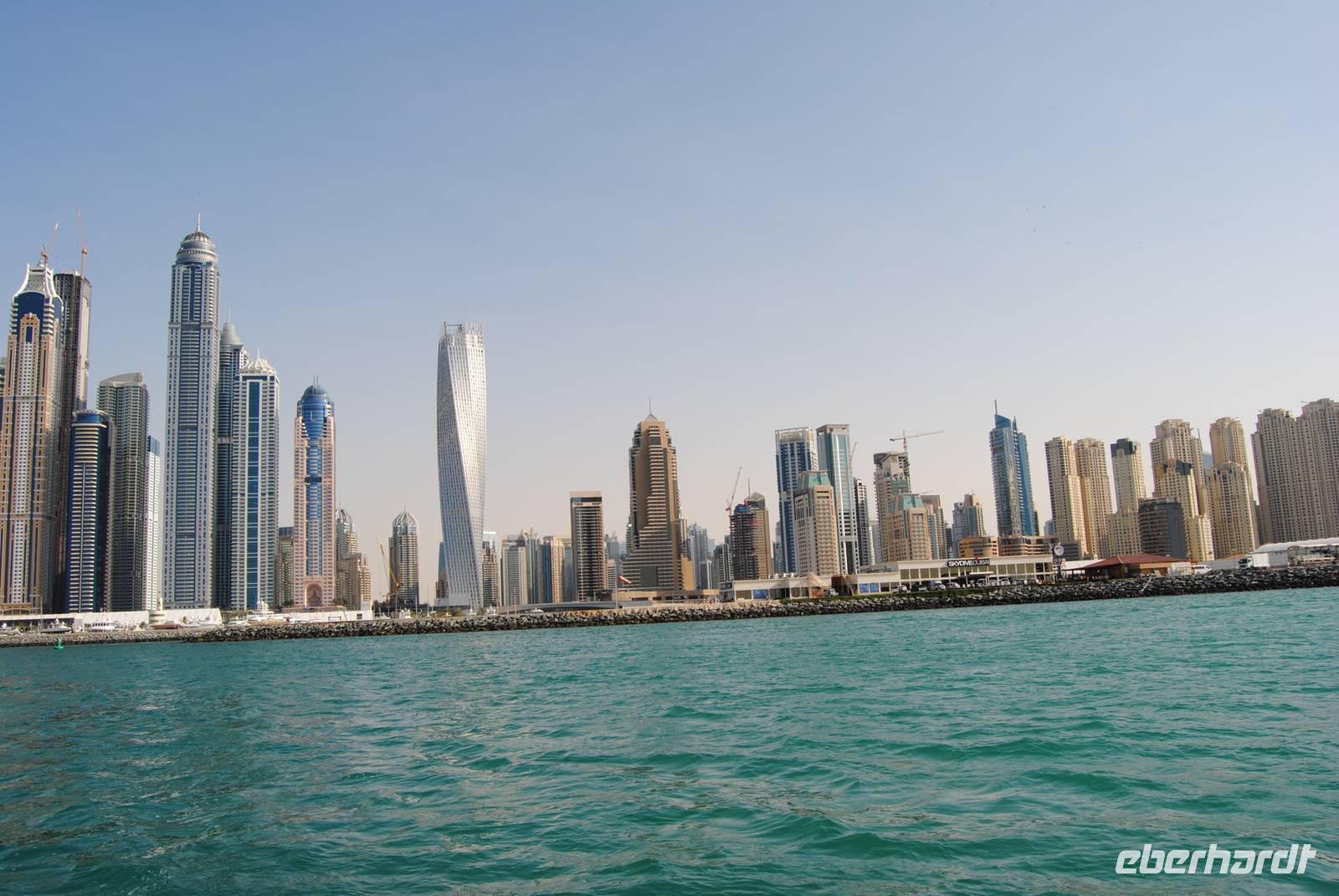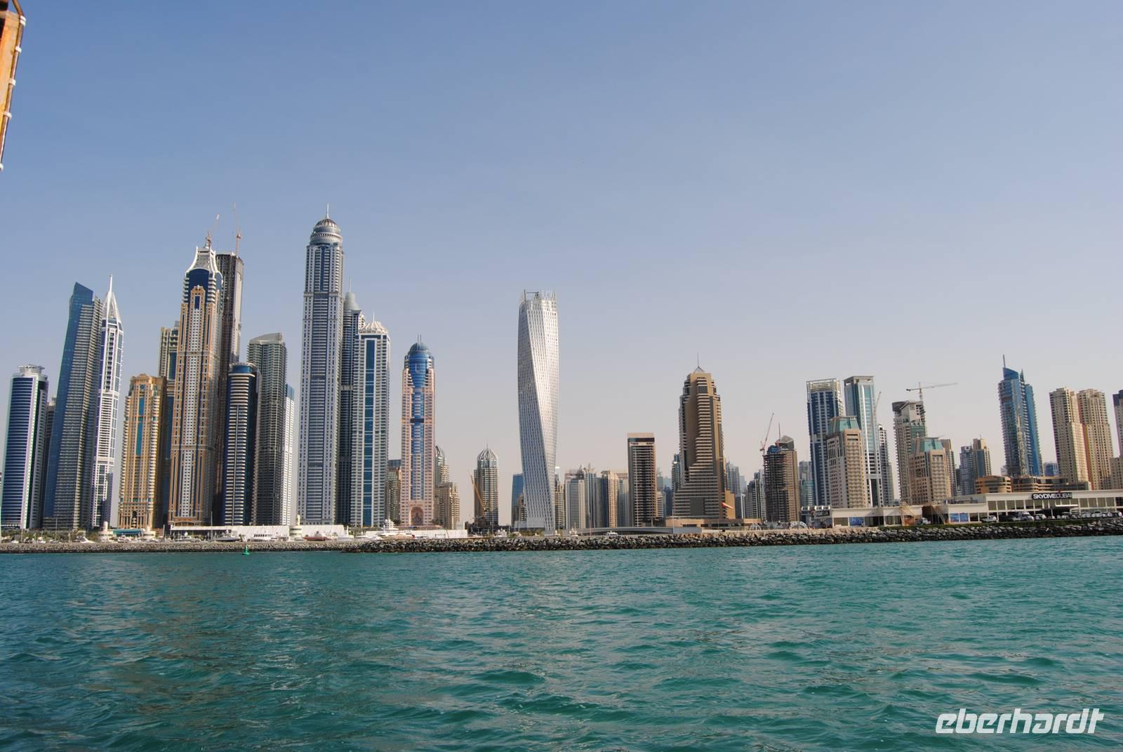 Viele Gäste unserer Gruppe nutzten den letzten Tag unserer Reise um Dubai noch einmal individuell zu erkunden oder ließen die Seele am Strand baumeln. Nach dem Mittagessen fuhr ich mit einigen Gästen mit der führerlosen Metro noch einmal zur Dubai Marina um uns die beeindruckende Skyline mit seinen fast 90 verschiedenen Hochhäusern anzuschauen. Am Nachmittag unternahmen wir dann vom Hafen der Marina City noch eine Fahrt mit einer Dhau und bestaunten den erst in den letzten 10 Jahren entstandenen Stadtteil von der Wasserseite aus. Am Abend trafen wir uns dann alle gemeinsam im Restaurant Moumtaz und genossen ein leckeres, indisches Menü.