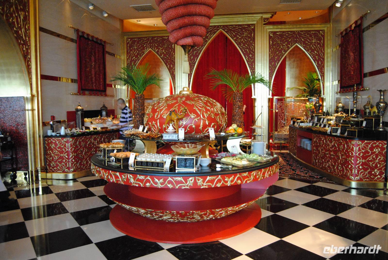 Der Höhepunkt des Tages war dann aber das Mittagessen im Burj al Arab Hotel. Ausgewählte arabische Köstlichkeiten waren hier ebenfalls vertreten wie leckere internationale Küche