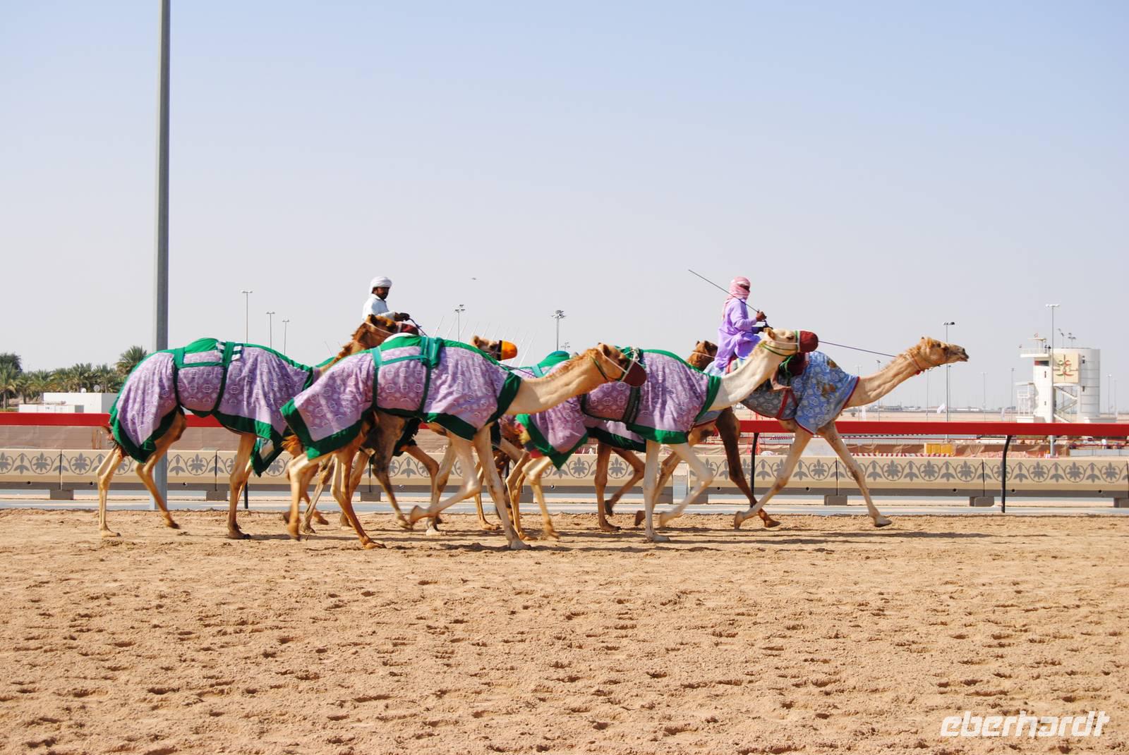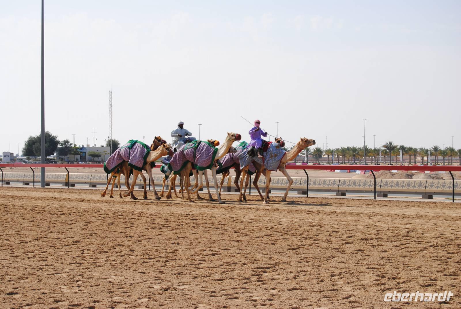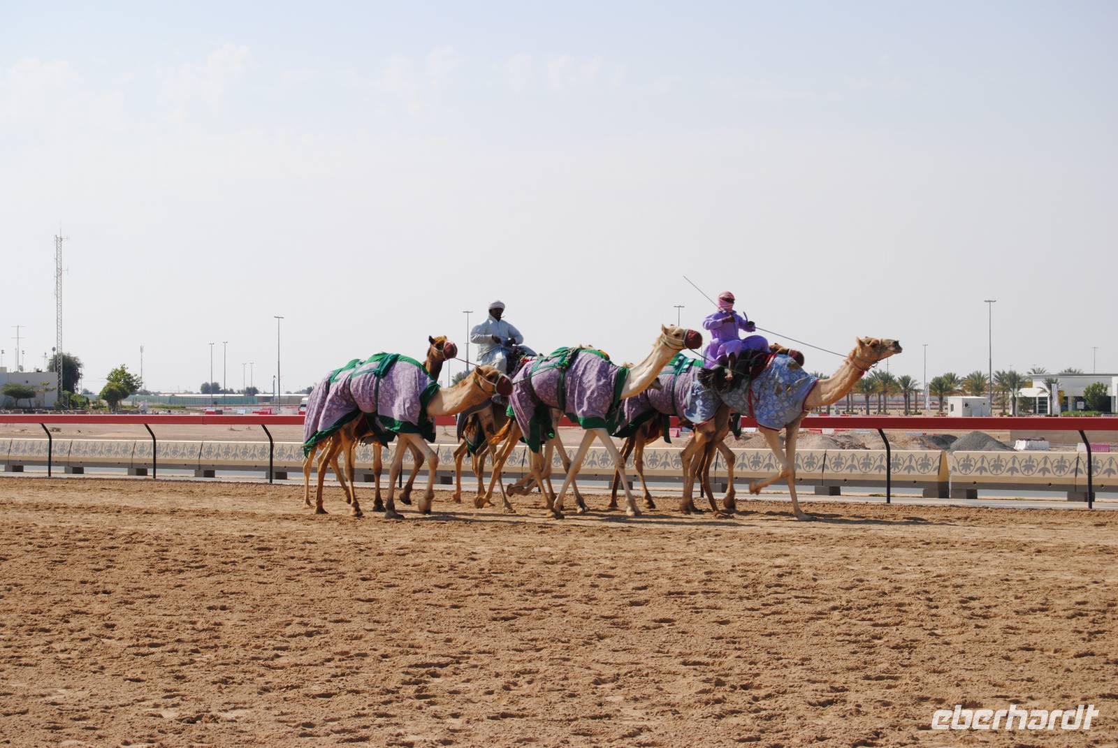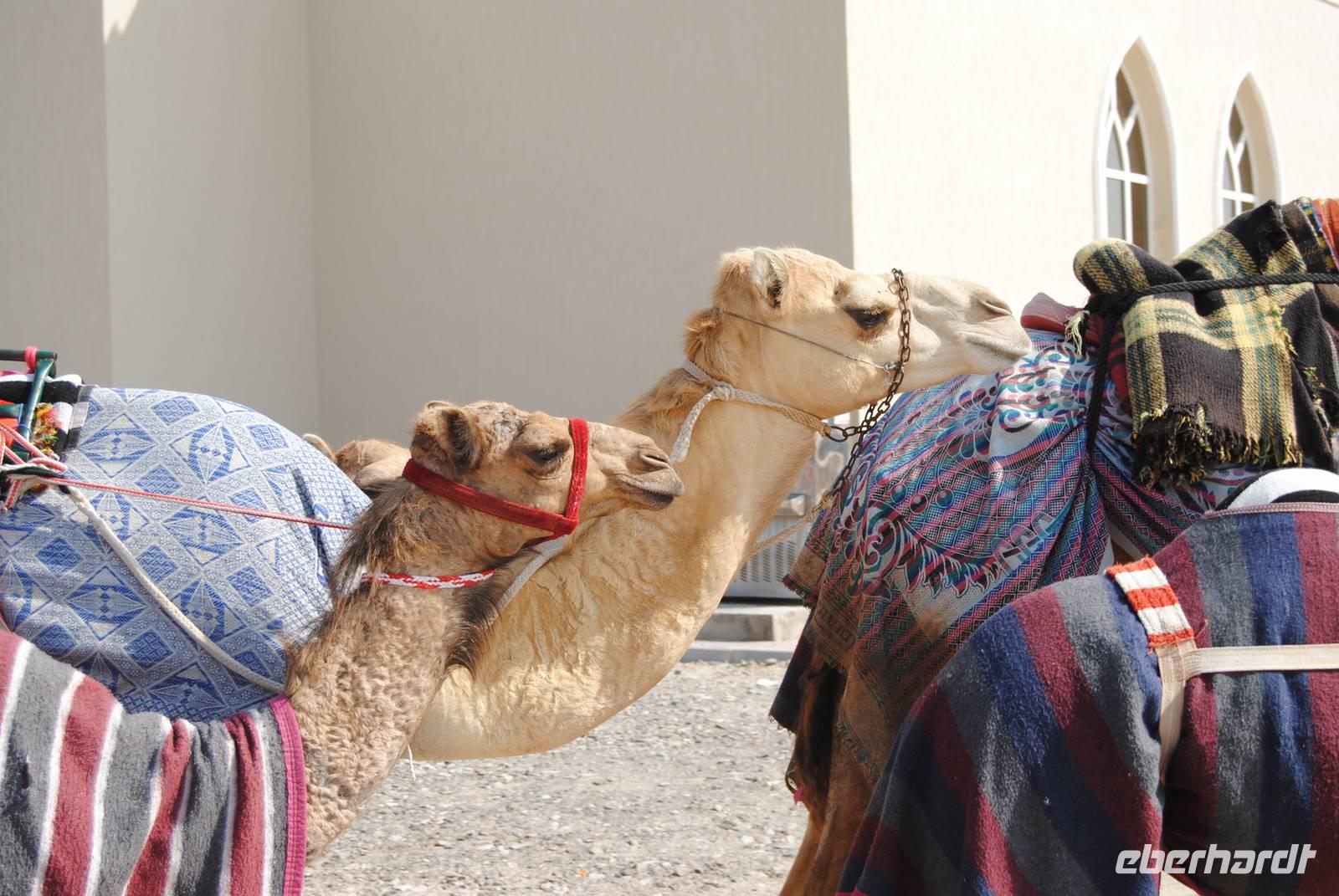 Einige Gäste nutzten den Tag, um den kostenlosen Strandshuttle vom Hotel zu nutzen oder Dubai individuell zu erkunden. Mit den anderen Gästen fuhren wir am Morgen in Richtung in die Oasenstadt Al Ain, ca. 150 km von Dubai entfernt. Auf der Fahrt zur „Quelle", so Al Ain übersetzt statten wir zunächst aber etwas außerhalb von Dubai der Kamelrennbahn noch einen Besuch ab, auf der auch gerade Trainingsläufe stattfanden. Die Kamelrennen finden ansonsten wegen der hohen Temperaturen vorrangig am frühen Morgen statt. Am Mittag erreichten wir dann die 370.000 Einwohner zählende Stadt, die sich unmittelbar an der Grenze zum Oman befindet. Zunächst besuchten wir den Kamelmarkt bevor wir uns in der Mall stärkten und anschließend durch die ursprüngliche Oase einen Spaziergang unternahmen und dort u.a. einen Palmenkletterer beobachten konnten. Den Abschluss unseres Besuches in Al Ain bildete der Besuch des Al Ain Nationalmuseums, das sich unmittelbar neben der Oase befindet und eine umfangreiche Ausstellung zur Geschichte und Archäologie beherbergt.