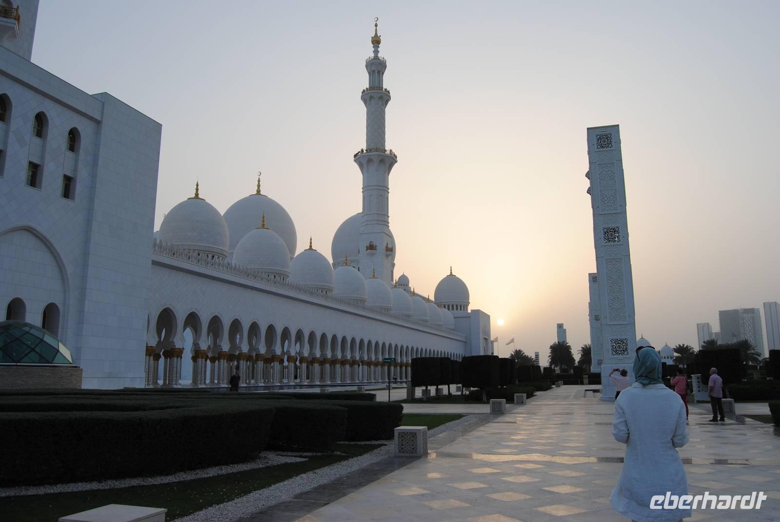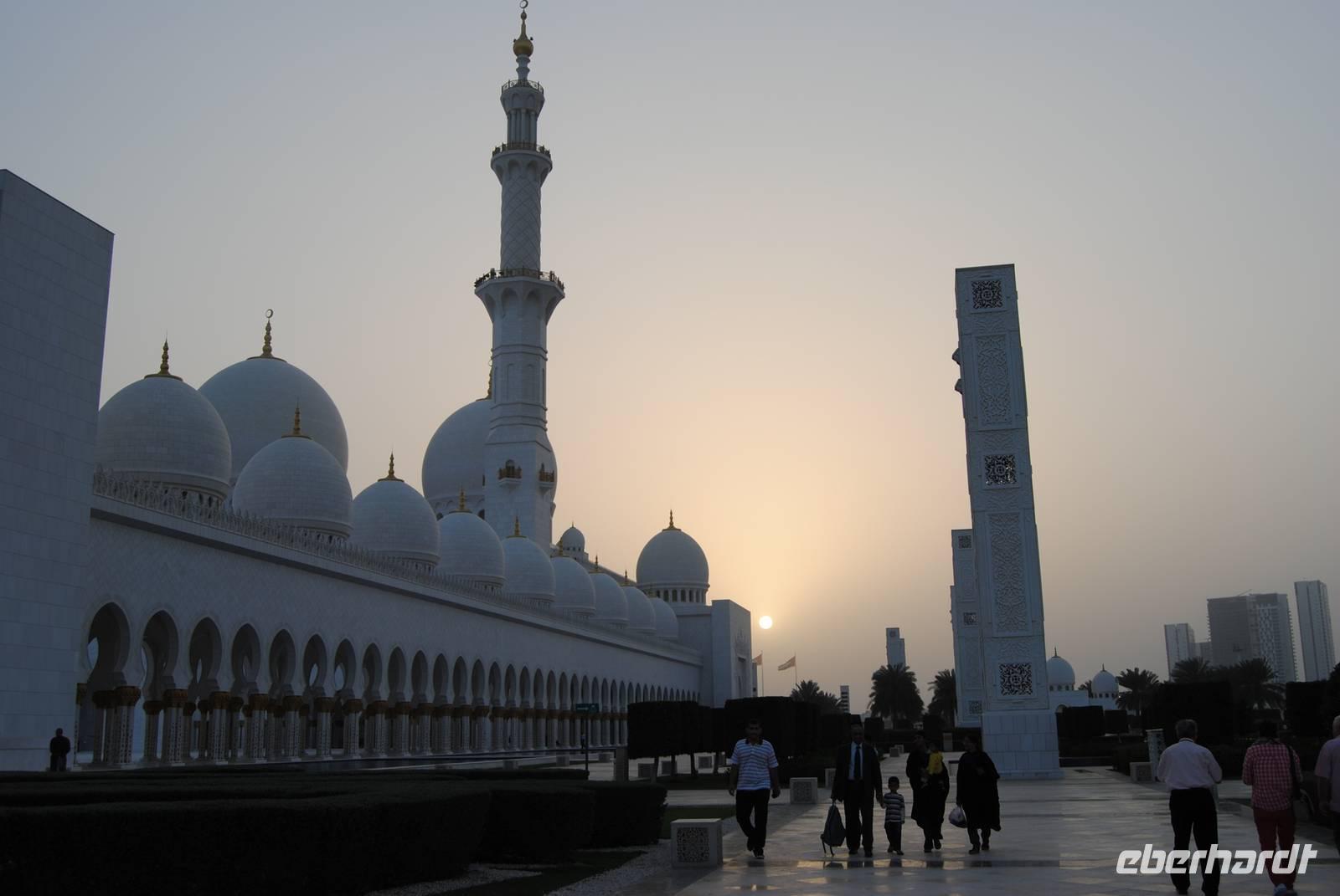 Das ebenfalls sehr angenehme Flair und der schöne Ausblick machten diesen Besuch im Al Iwan Restaurant zu einem doch unvergesslichen Erlebnis. Am Nachmittag schauten wir uns dann noch einmal die bei Dunkelheit noch beeindruckender wirken. Die Rückfahrt zum Hotel bestritten wir dann mit dem Taxi auf einer unterhaltsamen Fahrt auf der sechsspurigen Sheikh-Zayed-Road, ein Erlebnis für sich.