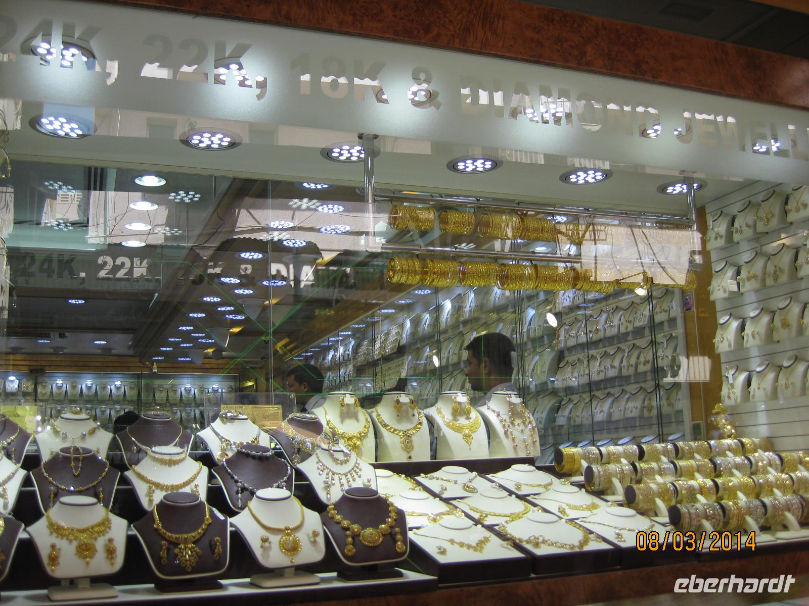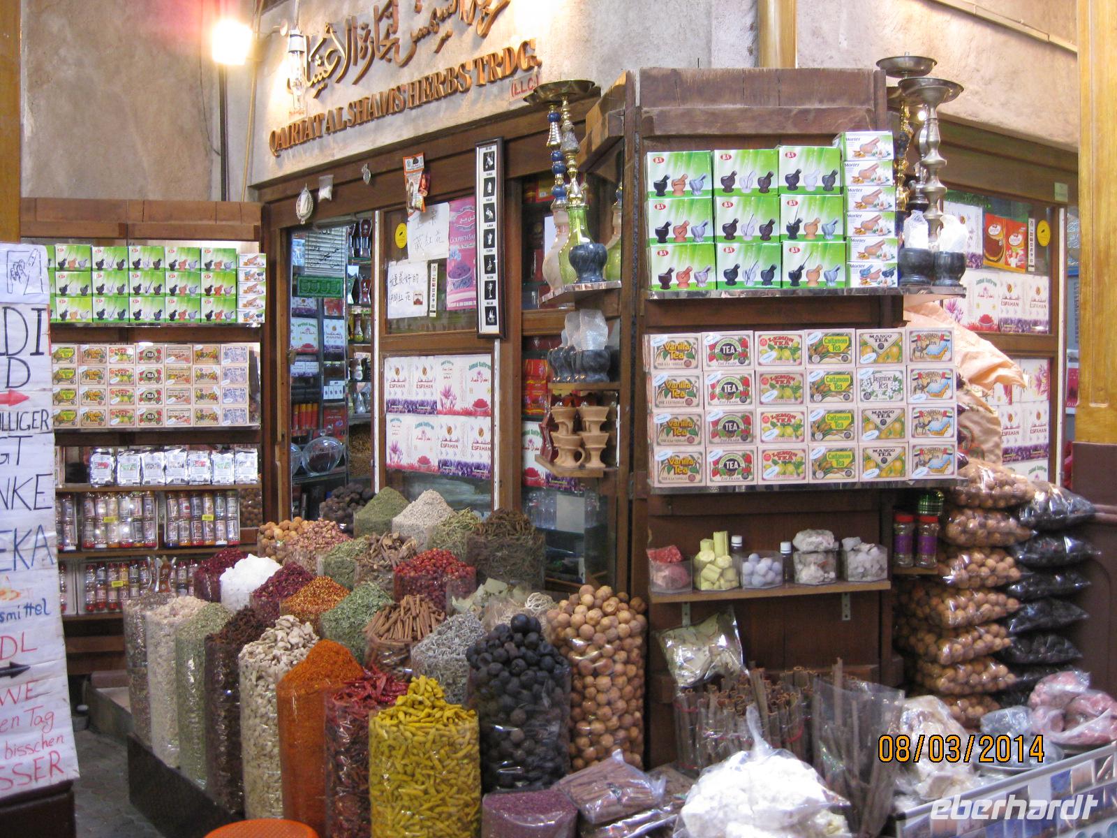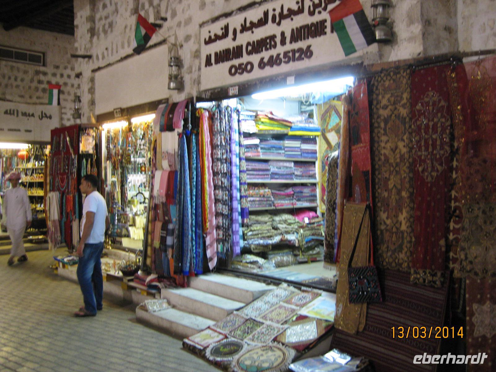 Unser letzter Stopp in Sharjah erfolgt am Blauen Souk. Von hier hat man einen sehr guten Blick auf die King Faisal Moschee. Danach schlendern wir noch ein wenig durch die kleinen Geschäfte des Souks, wo man Gold und Textilien erwerben kann.