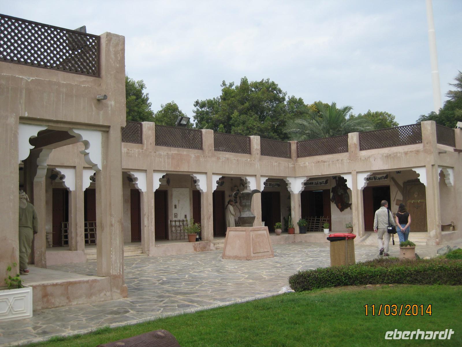 Unser erster Stopp in Al Ain ist das Museum der Stadt. In diesem erfahren wir noch einmal viel zur Vergangenheit der Emirate. Bilder von früher versetzen uns regelrecht ins Staunen und geben uns noch mehr Fragen auf, in welch kürze der Zeit, all das hier entstanden ist. Ausstellungstücke zum Leben der Menschen wie Kochutensilien, Kleidungsstücke oder auch Waffen geben uns einen guten Einblick in die damaligen Zeiten.
