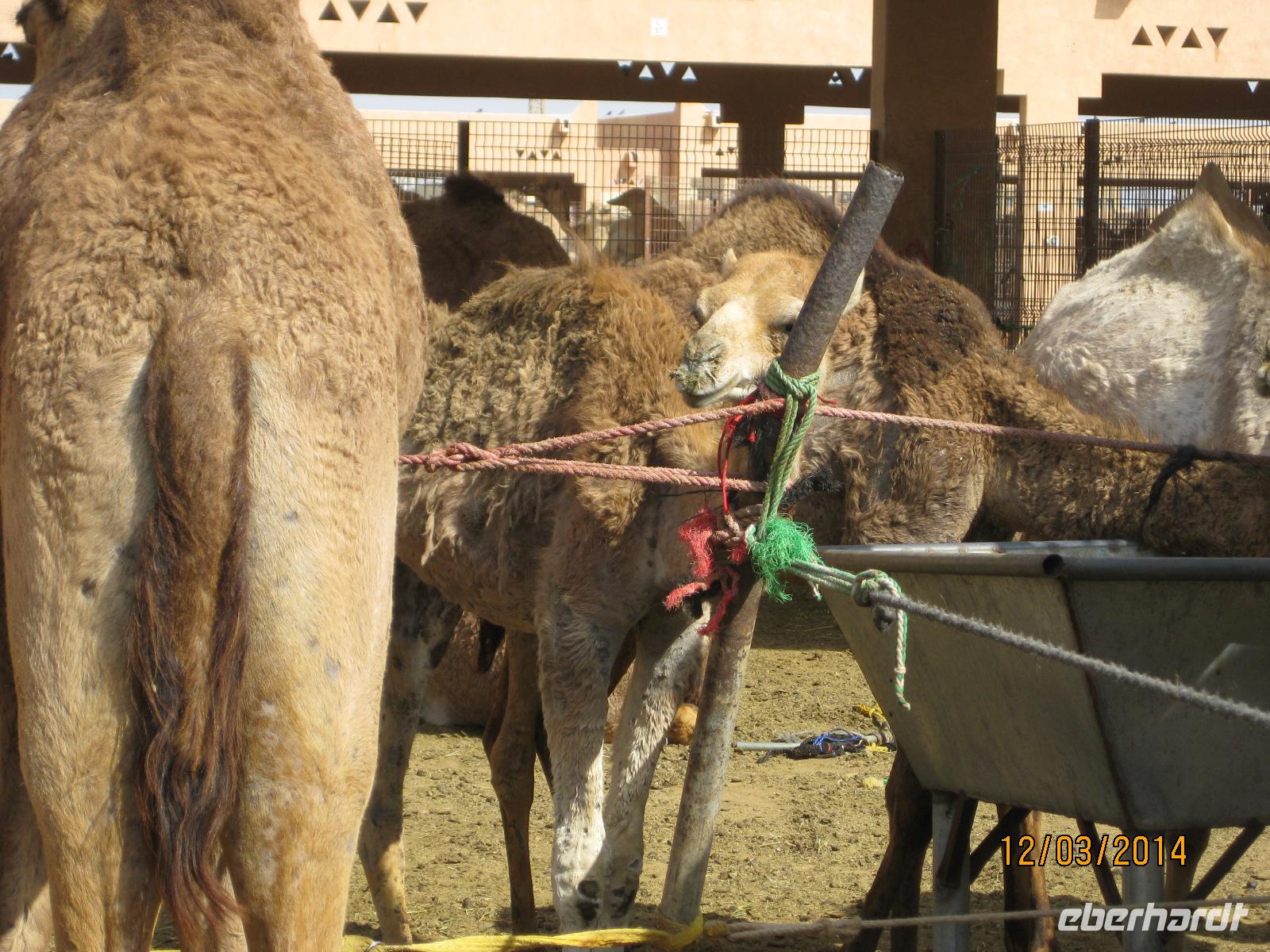 Danach fahren wir noch zum Kamelmarkt. Auch das gehört zum Leben hier dazu. Hier werden die Tiere gehalten und gehandelt. Vom Kamel zählt vor allem das Fleisch, die Milch sowie die Haut. All das wird vom Tier selbst verwertet. Gerade auch die Kamelmilch ist sehr beliebt, welche wir natürlich probieren müssen.