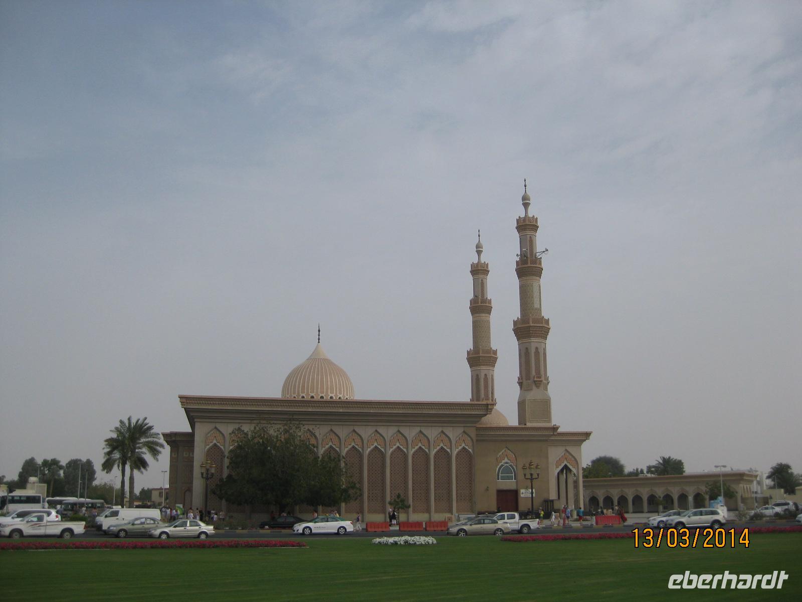 Bereits wieder früh am Morgen fahren wir heute an die Ostküste des Landes. Nach ca. 3,5 Stunden Fahrt erreichen wir den kleinen Küstenort Fujairah. Auf unserer Fahrt halten wir am bekannten Freitagsmarkt. Gemüse, Obst, Teppiche sowie Kochutensilien werden hier rege verkauft. Hintergrund dieser Märkte ist eine kleine Versorgung derjenigen, die ebenfalls von den großen Städten an die Küste über das Wochenende fahren. Daher findet man hier wirklch alles. Zudem tauchen wir heute noch einmal in eine ganz andere Landschaft ein. Unser Weg zur Ostküste führt über das Hajar Gebirge. Leider zeigt sich bereits, dass das Wetter heute nicht ganz auf unserer Seite ist. Aus diesem Grund gestalten wir unseren Badeaufenthalt am Golf von Oman etwas kürzer und nutzen die Zeit, um uns die Stadt Fujairah noch ein wenig anzuschauen. Zudem legen wir an der kleinsten Moschee der Welt (Al Bidya Moschee) einen Stopp ein. Während eines kurzen Aufenthaltes können wir einmal einen Blick in die Moschee wagen. Am späteren Nachmittag erreichen wir den äußeren Ring Dubais wieder und siehe da, das Glück ist heute doch noch auf unserer Seite und wir können noch einen Fotostopp an der Flamingo Station einlegen. Später erreichen wir unser Hotel und genießen unser heutiges Abendessen während einer Dhow Fahrt über den Creek. Musik und ein traumhaftes Buffet geben den entsprechenden Rahmen.