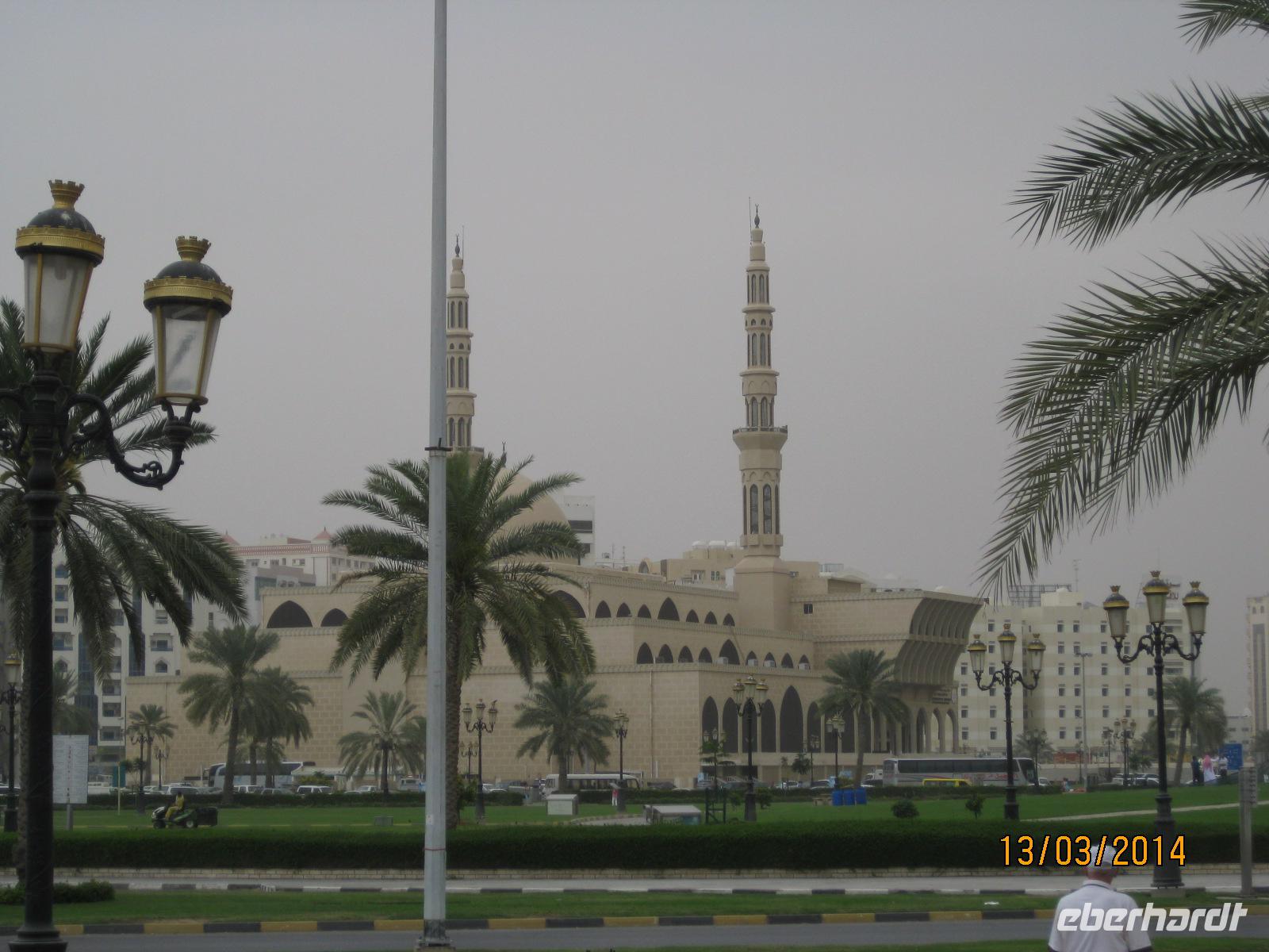 Heute steht bei unserem Tagesausflug das direkte Nachbaremirat Sharjah auf dem Programm. Unweit von Dubai erreichen wir das Emirat. Es gehört zu den strengeren Emiraten, was vor allem den Glauben und dessen Vorschriften betrifft. Angekommen im Emirat schauen wir uns zunächst den Koranplatz mit Regierungsgebäude, Moschee, Kulturpalast und Bibliothek an. Beeindruckt von der Architektur des Platzes fahren wir weiter bis nach Ajman, erstaunlich ist der Unterschied zwischen diesen beiden Regionen. Unser nächster Punkt von Sharjah ist der alte Teil der Stadt. Auf dem Weg zu diesem legen wir einen kurzen Stopp an der Al Noor Moschee ein. Im Alten Teil der Stadt besuchen wir eine noch in Stand gehaltene kleine Markthalle mit kleineren Verkaufsständen mit Tüchern, Souvenirs oder auch den typischen Gewändern der Einheimischen. Da ist schnell das ein oder andere Stück gekauft.