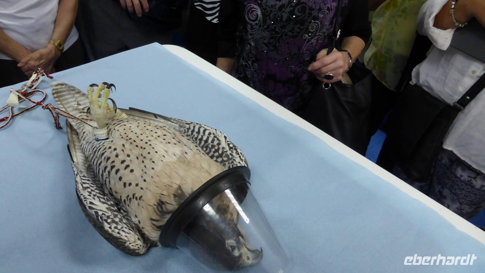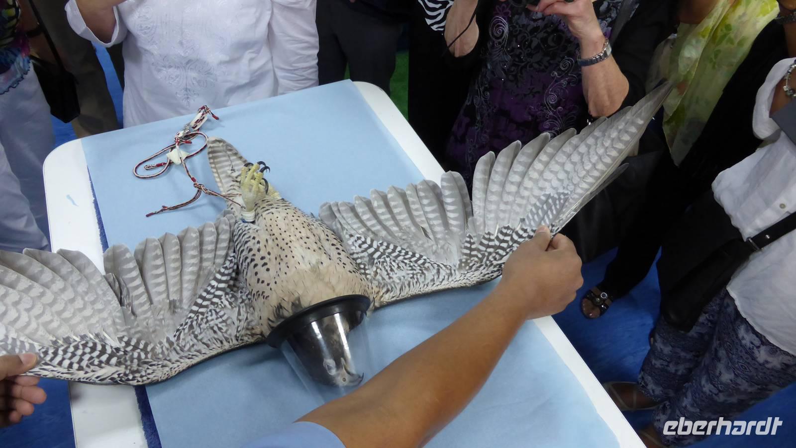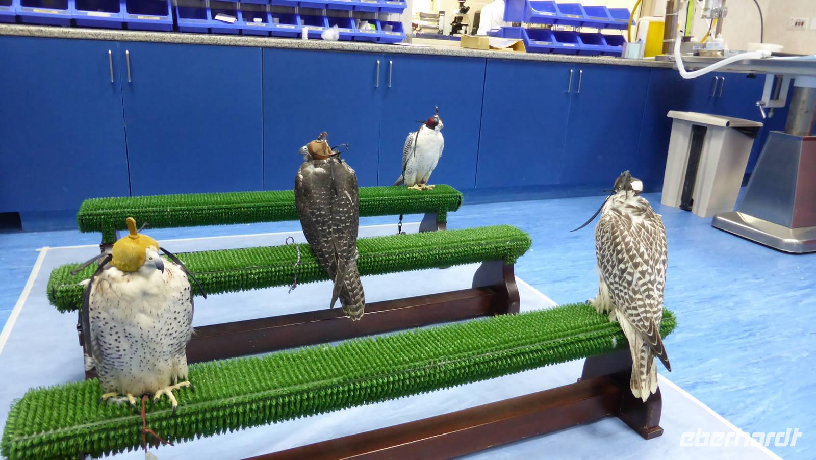 Nach einer zweistündigen Fahrt erreichen wir am Vormittag Abu Dhabi. Frau Dr. Müller, Tierärztin aus München, ist die Leiterin der Falkenklinik Abu Dhabi. Sie hat aufgrund des großen Interesses die Klinik für Besucher geöffnet. Ihre Mitarbeiter führen uns durch die weltgrößte Einrichtung dieser Art. Sie zeigen uns wie Schnäbel geschliffen und Krallen geschnitten werden. Jeder hat die Möglichkeit eines dieser edlen Tiere für ein Foto mal selbst auf dem Arm zu tragen.