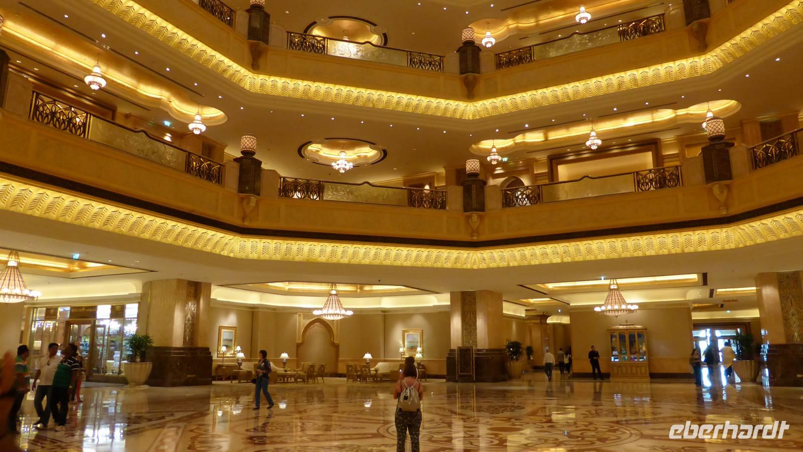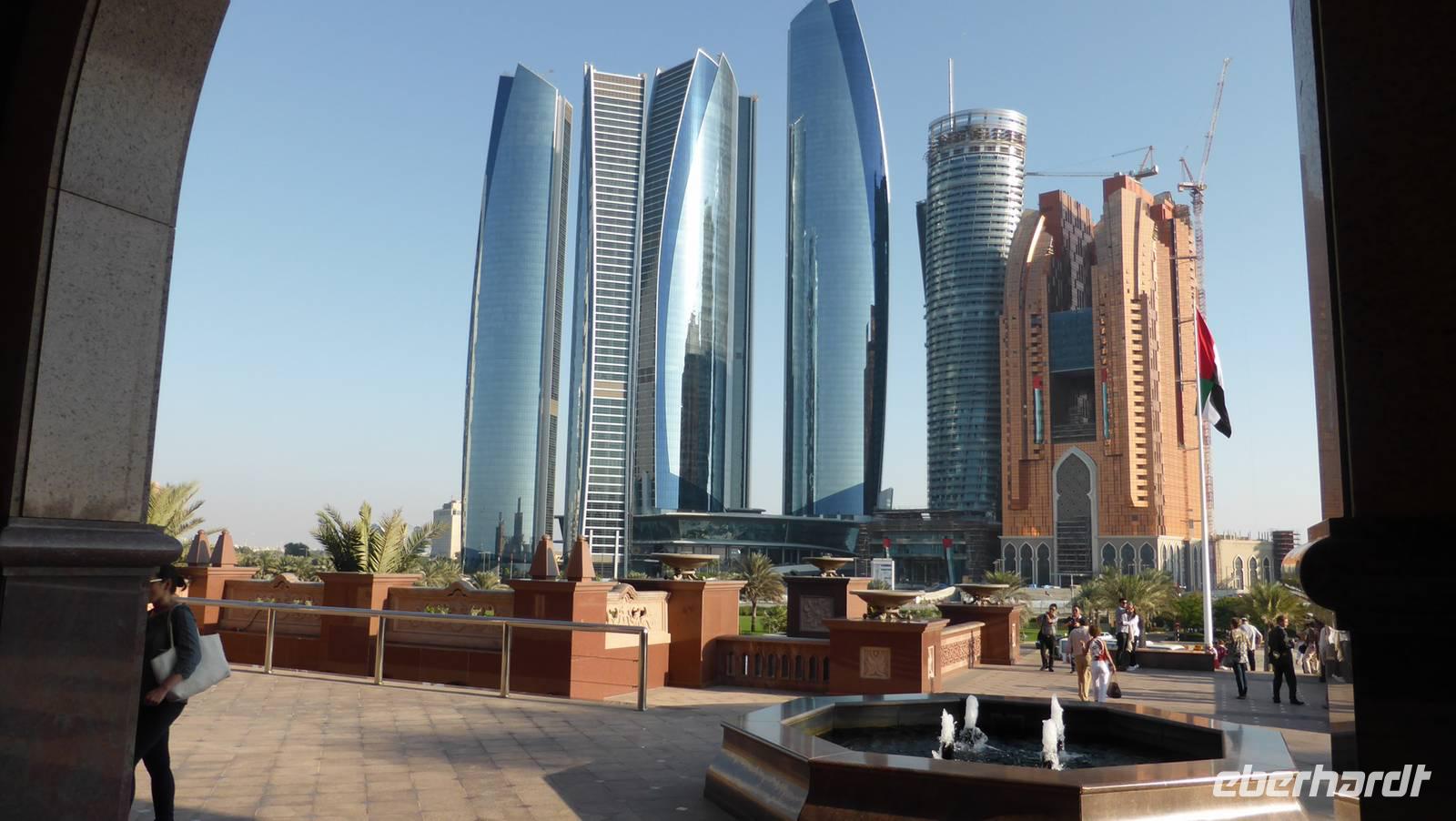 Entlang an der mit Wolkenkratzern flankierten Corniche Abu Dhabis gelangen wir zum Palasthotel Emirates Palace, Luxushotel und Tagungsstätte der Herrscher des Golfkooperationsrates und heute Gastgeber für unseren Nachmittagstee ?. Im luxuriösen Ambiente genießen wir Kaffee, Tee und Leckereien.