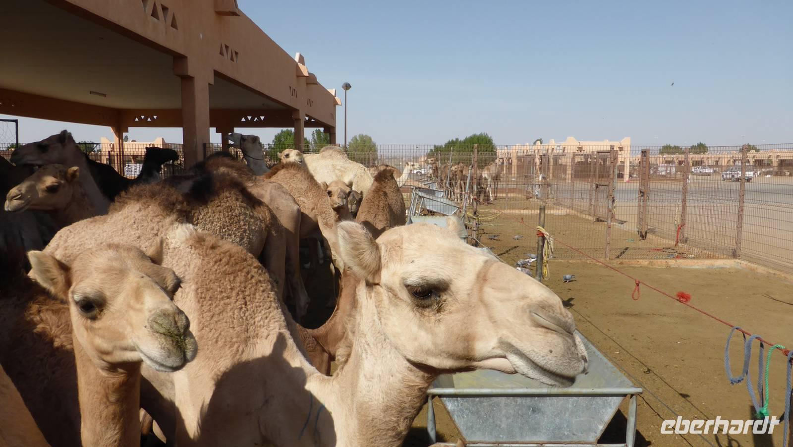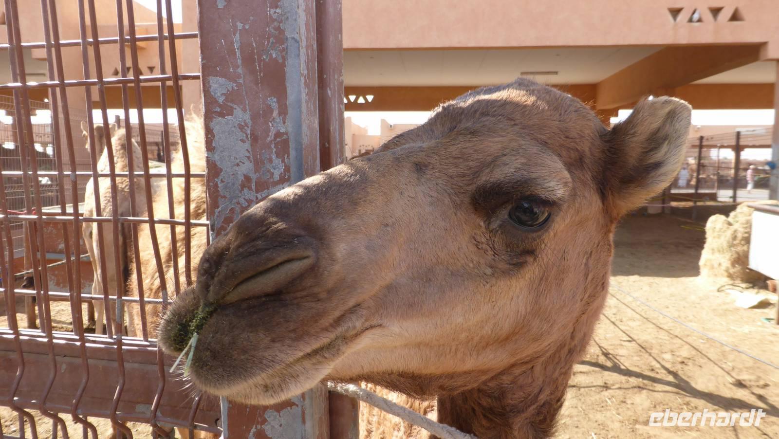 Am Rande von Al Ain befindet sich der größte Kamelmarkt des Landes. Einst waren diese so stolz blickenden Tiere wichtige Begleiter der Beduinen und sicherten ihnen das Überleben in der Wüste. Heute dienen sie als Rennkamele bei hochdotierten Rennen oder sie werden als Nutztier für die Milch und Fleischgewinnung auf dem Kamelmarkt zum Verkauf angeboten. Auch Kamele aus anderen arabischen Ländern kann man hier finden: eine kleine Rasse stammt aus dem Oman, schwarze Kamele aus Saudi Arabien und weiße aus dem Sudan.