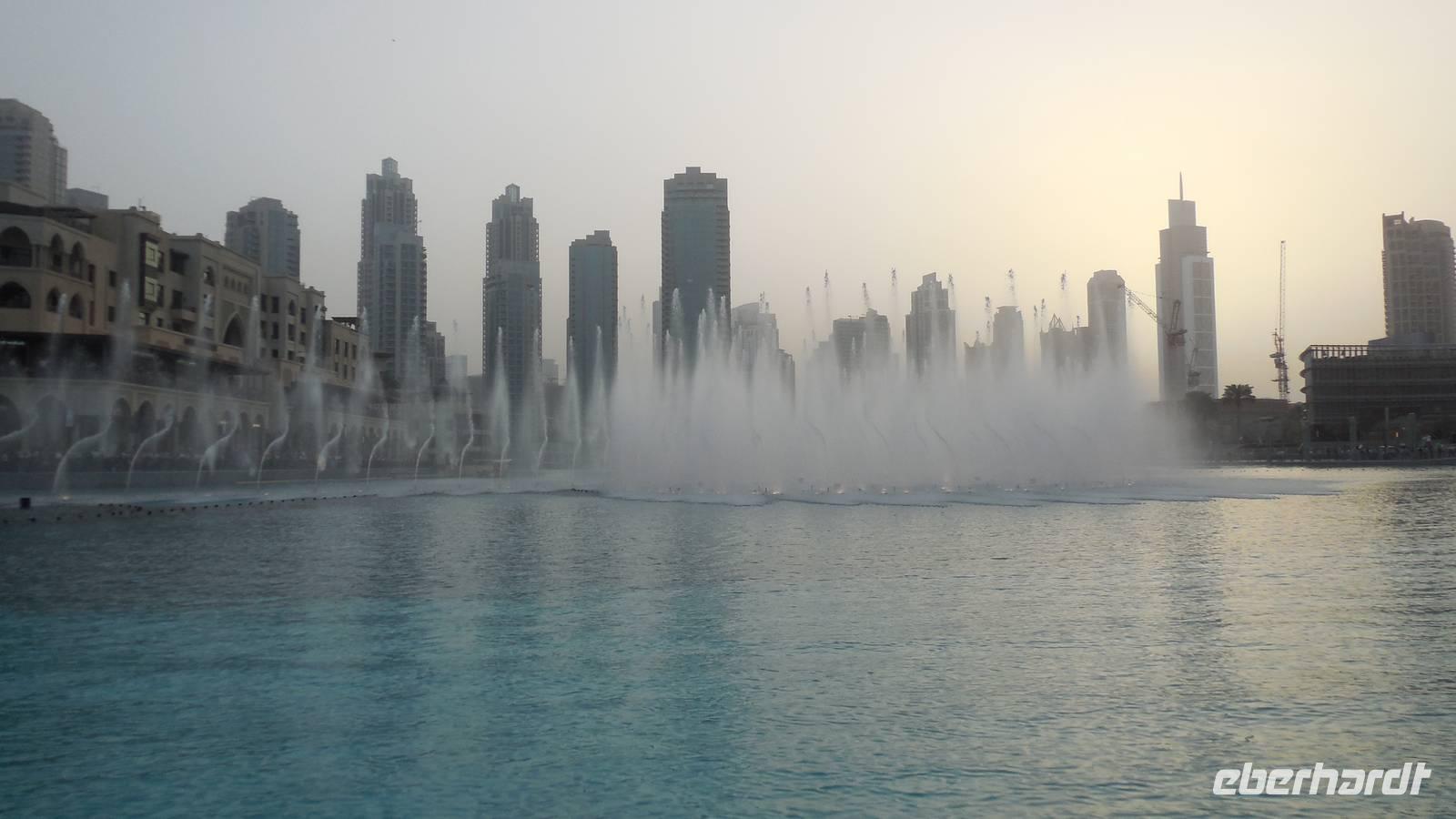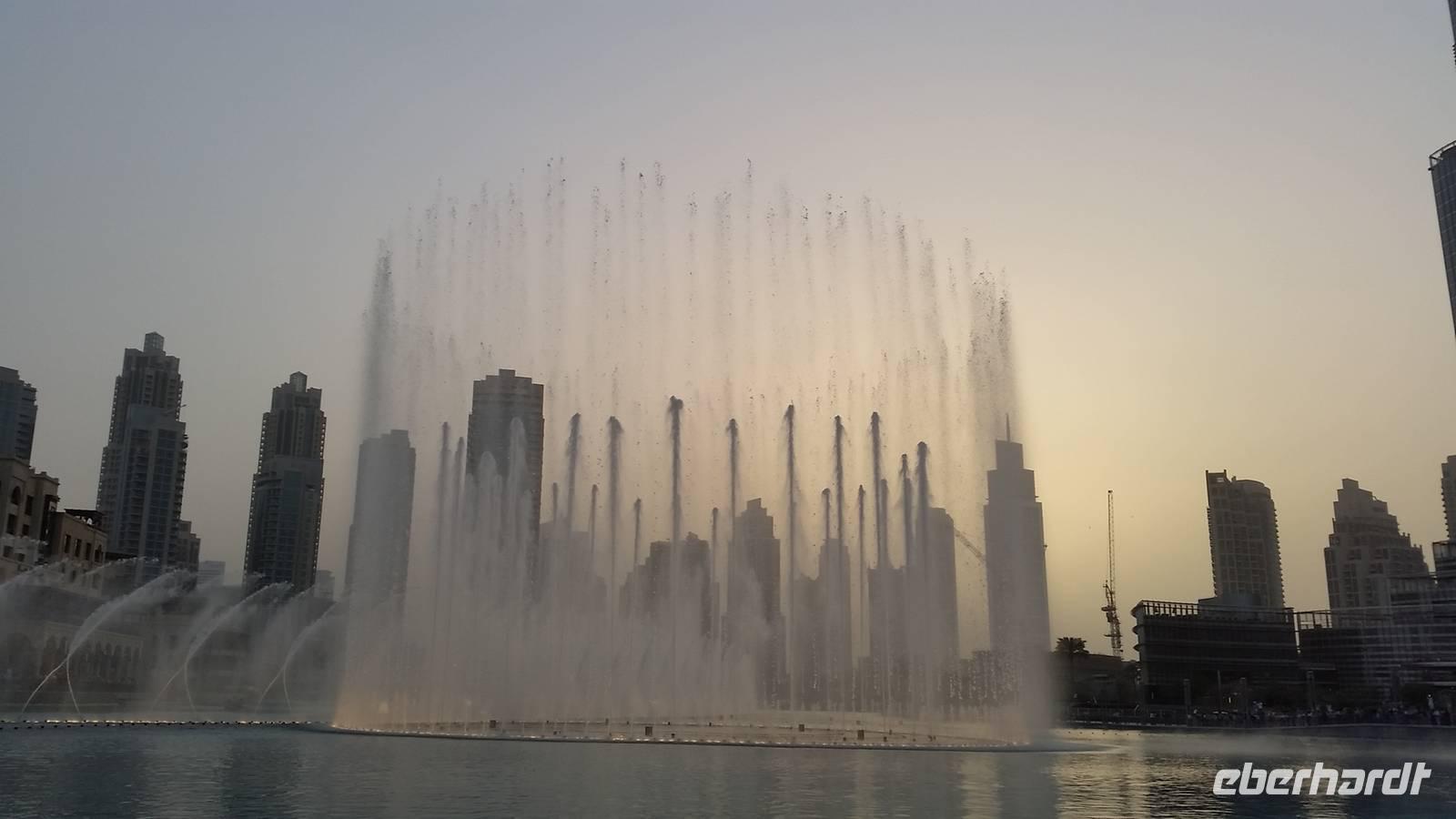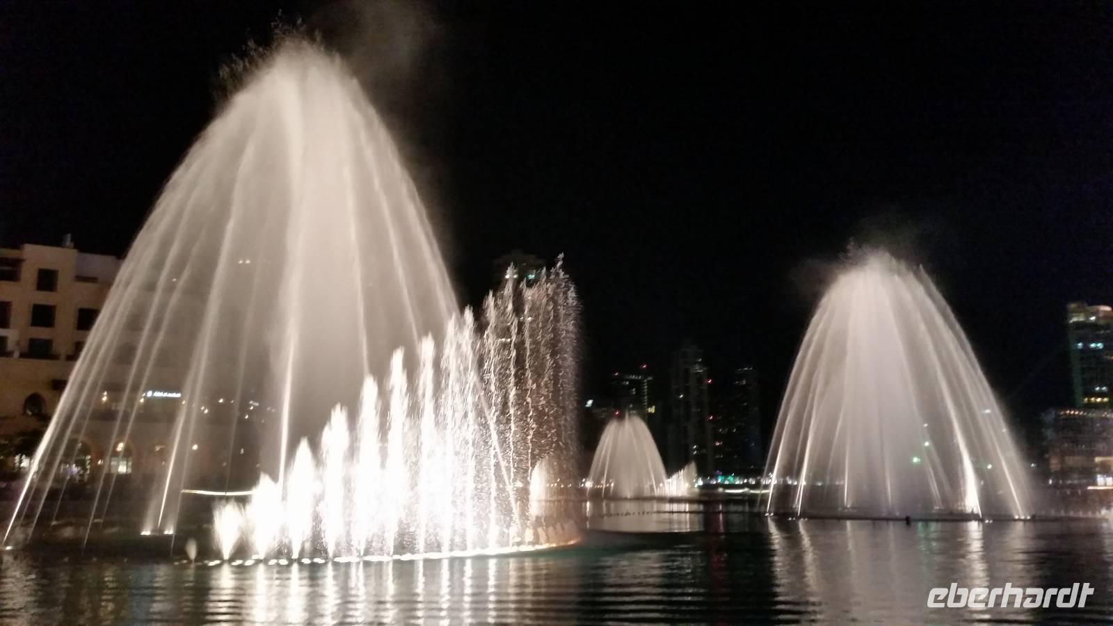Nach dem Abendessen organisierte Benjamin einen Bus, da viele nochmal die Wasserspiele von Burj Khalifa in der Nacht sehen wollten. Und es hat sich wirklich gelohnt. Alle 30 Minuten wiederholten sich die Wasserspiele mit Musik, Wasser und Beleuchtung gegenüber dem höchsten Gebäude der Welt. Das erste Lied war „I will always love you" von Withney Houston. Man konnte sogar fast weinen. Einige Gäste die in Las Vegas waren verglichen die Wasserspiele mit diesen und sagten, dass die in Dubai deutlich mehr beeindruckten. Wir waren ein bisschen kaputt vom ganzen Tag und gingen glücklich ins Bett mit dem schönen Abschluss der Wasserspiele im Kopf als Verabschiedung.