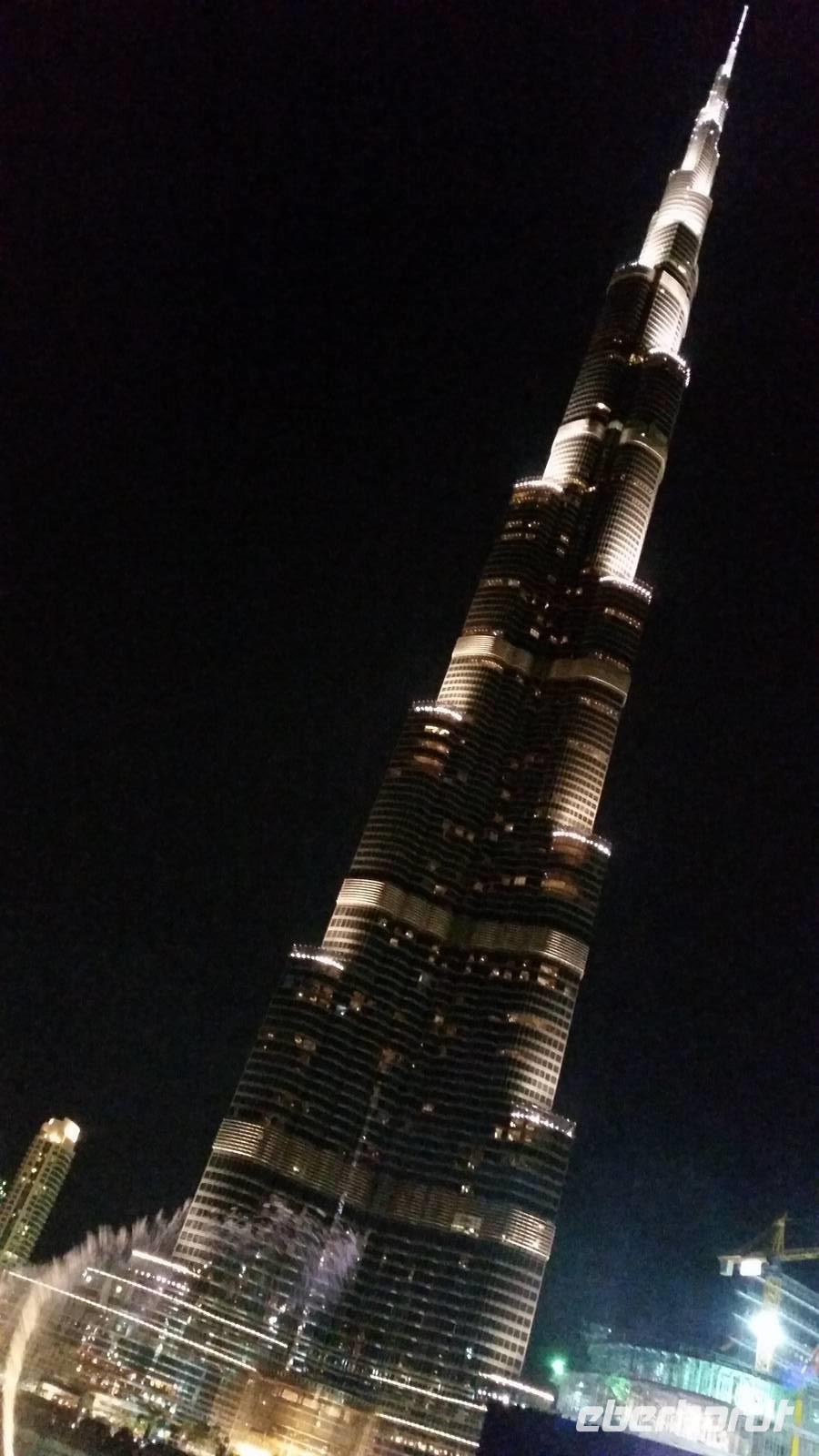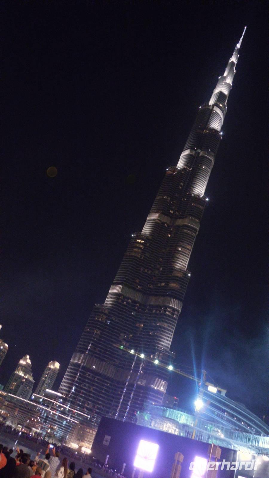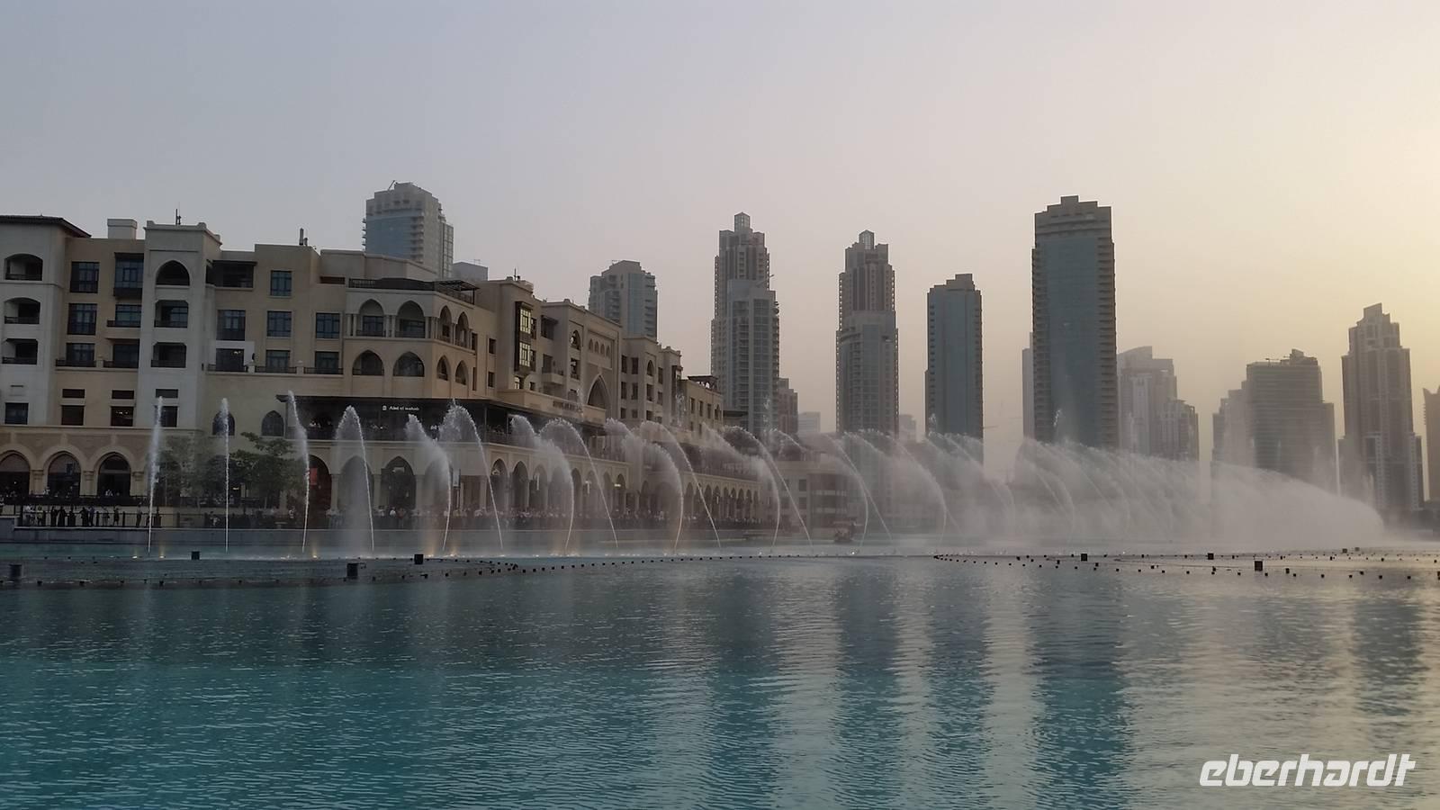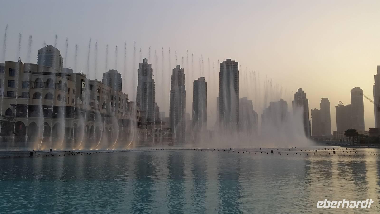 Nach dem Abendessen organisierte Benjamin einen Bus, da viele nochmal die Wasserspiele von Burj Khalifa in der Nacht sehen wollten. Und es hat sich wirklich gelohnt. Alle 30 Minuten wiederholten sich die Wasserspiele mit Musik, Wasser und Beleuchtung gegenüber dem höchsten Gebäude der Welt. Das erste Lied war „I will always love you" von Withney Houston. Man konnte sogar fast weinen. Einige Gäste die in Las Vegas waren verglichen die Wasserspiele mit diesen und sagten, dass die in Dubai deutlich mehr beeindruckten. Wir waren ein bisschen kaputt vom ganzen Tag und gingen glücklich ins Bett mit dem schönen Abschluss der Wasserspiele im Kopf als Verabschiedung.