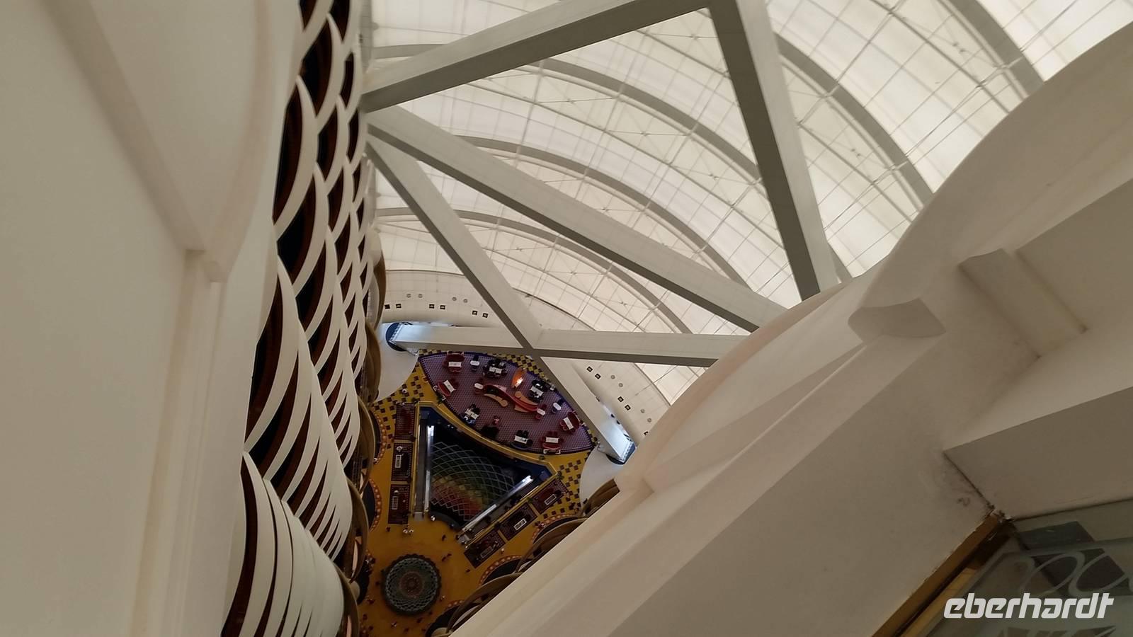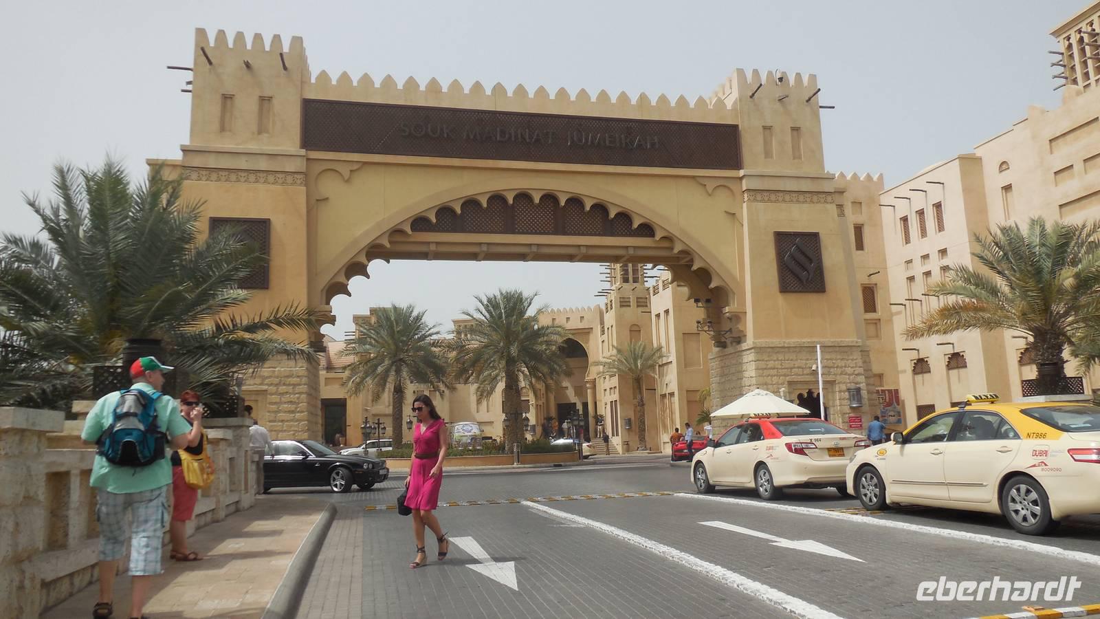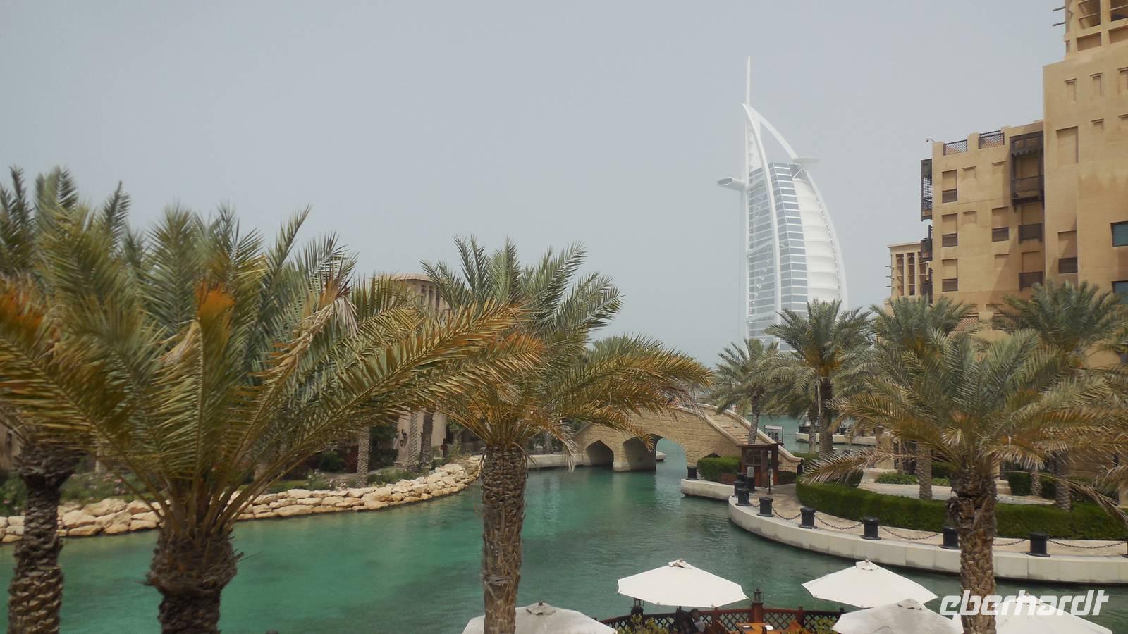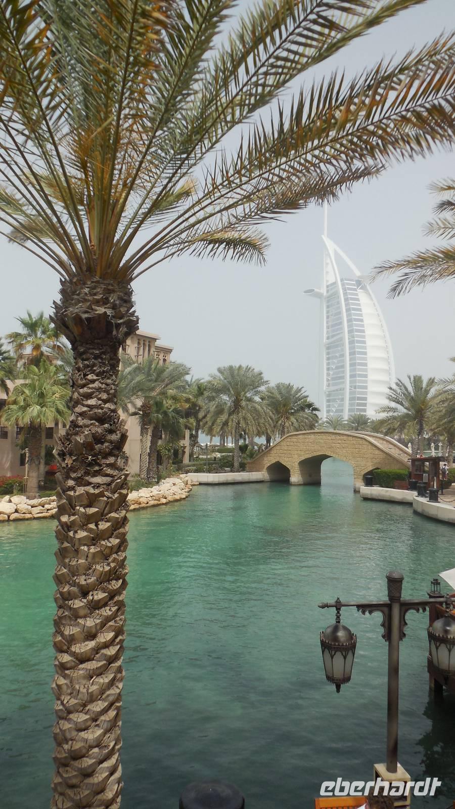 Nach einem späten Frühstück traffen wir uns am Vormittag, um gemeinsam zu dem fakultativen Ausflug zum 7-Sterne Hotel Burj al Arab oder „Turm der Araber" aufzubrechen. Bevor wir eines der luxuriösesten und teuersten Hotels der Welt besichtigen wollten, fuhren wir zu dem schönen und modernen Madinat Souk, von wo aus man auch schöne Ausblicke zum Burj al Arab hatte. Einige, die das Mittagsessen im Hotel nicht gebucht hatten, fuhren mit uns gemeinsam mit dem Bus zum Souk, um dort den Tag verbringen wollten.