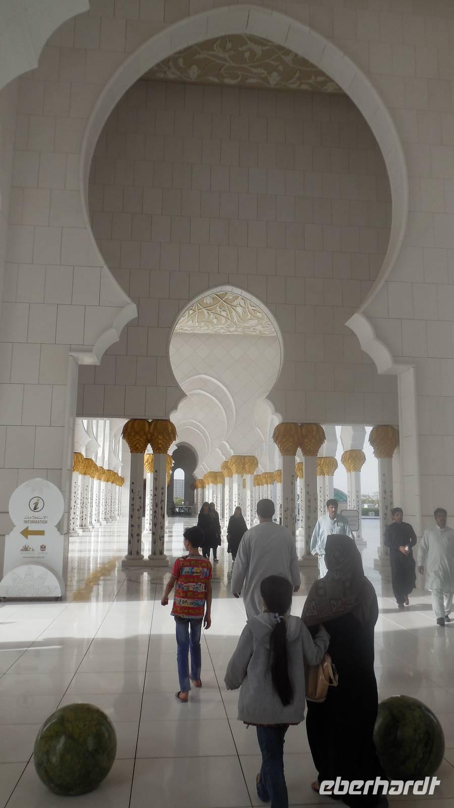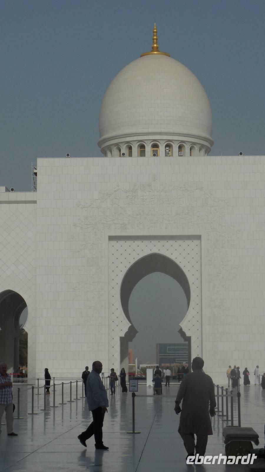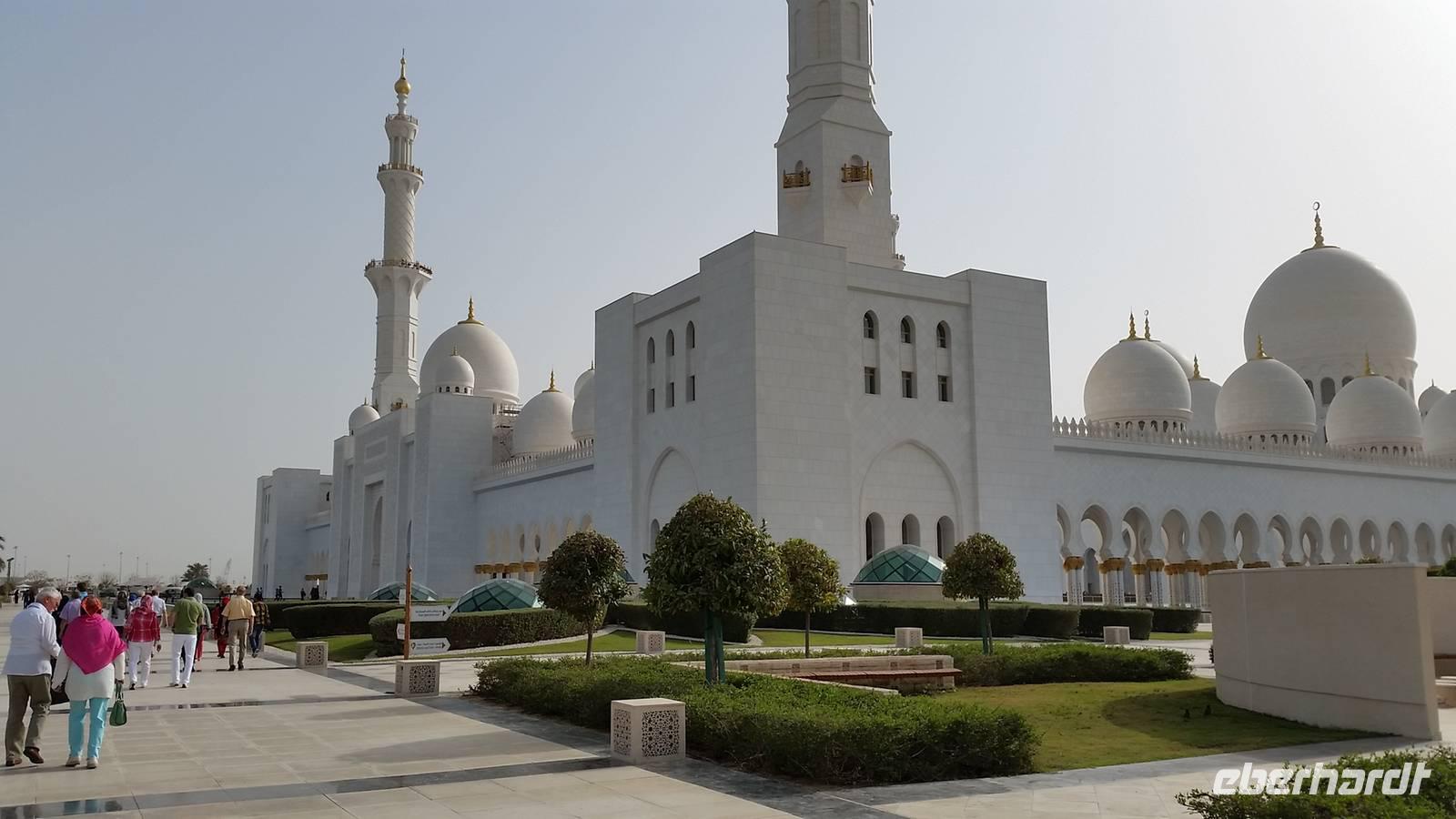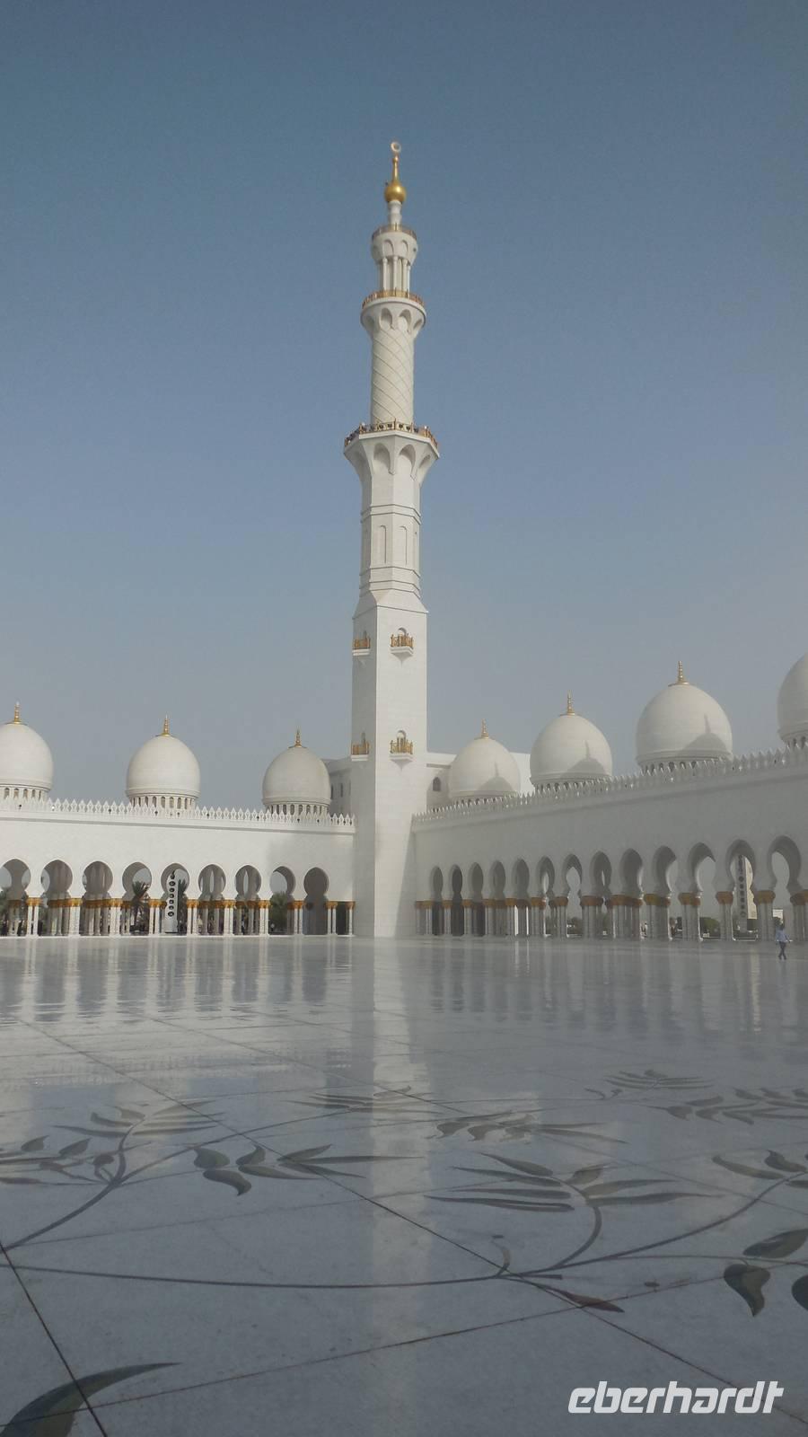 Heute mussten wir schon etwas eher aufstehen, da uns ein langer Tag mit vielen Erlebnissen erwartete. Wir fuhren anderthalb Stunden in Richtung der Hauptstadt der 7 Arabischen Emirate - nach Abu Dhabi. Auf dem Weg erklärte uns unsere liebe Reiseleiterin Anja viel über dieses Land, seine Bevölkerung, Politik und über die Lebensweise. Die Vereinigten Arabischen Emirate bestehen aus 7 Emiraten, die mit den Bundesländern in Deutschland vergleichbar sind. Die beiden bekanntesten Emirate sind Dubai und Abu Dhabi. Ihre Geschichte ist bestimmt vom Scheich, seinen Familienverhältnissen und seiner Macht. Für den Scheich bedeutet Macht auch Verantwortung und so wurde er so beliebt. Wenn es ihm gut geht, soll es auch den anderen gut gehen. Das ist seine Philosophie. Deswegen wird der Scheich jedes Jahr am Nationalfeiertag am 2. Dezember Nationalfeiertag gefeiert wie ein Volksheld.