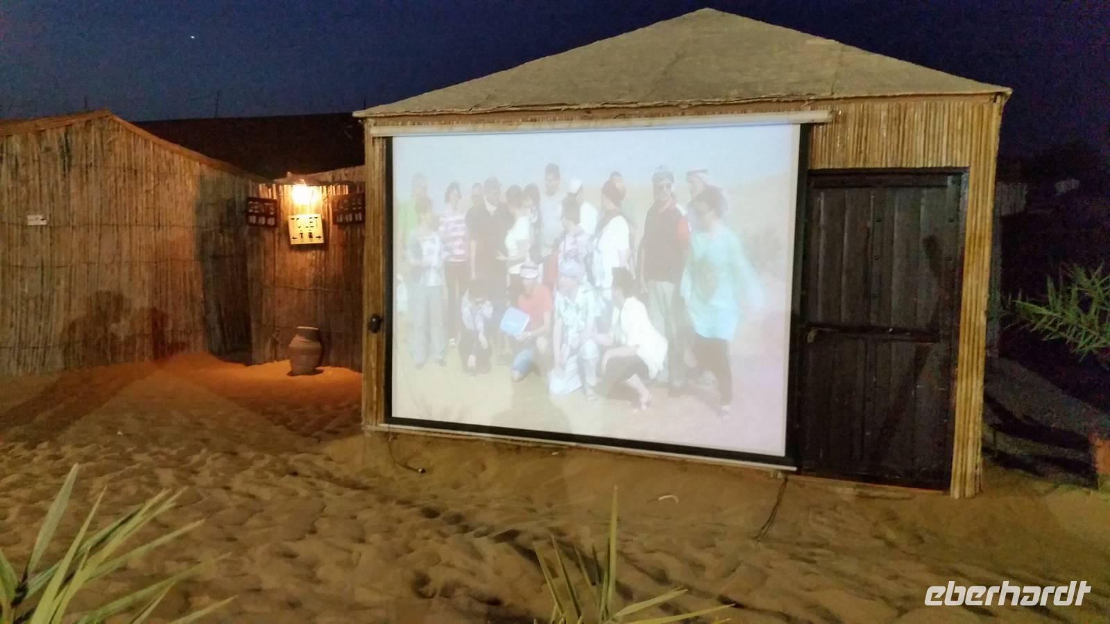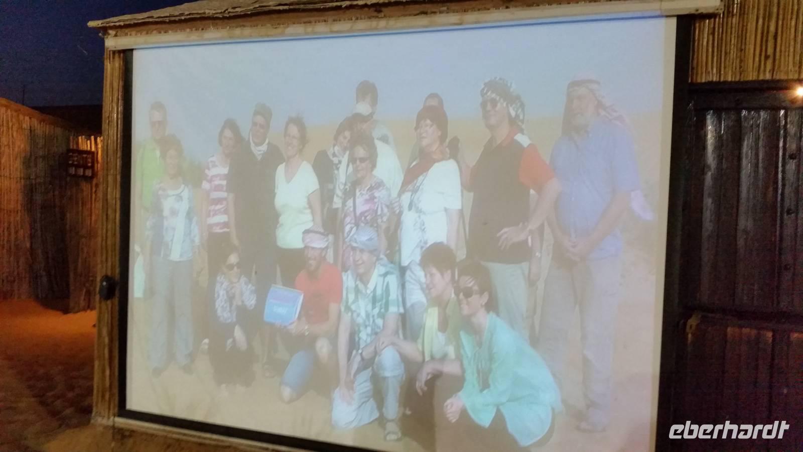 Im Wüstencamp konnte man sich kleiden wie die Einheimischen damals oder sich ein Henna-Tattoo auf die Haut malen lassen. Als die Sonne untergegangen war, wurde es frischer und wir holten unsere Jacken oder Pullover heraus. In diesem beduinische mit Zelten gebauten Wüstencamp wurden wir kulinarisch und musikalisch verwöhnt. Man konnte auch die Wasserpfeifen mit aromatisiertem Tabak rauchen. Den Abschluss bildete eine orientalische Bauchtanzshow, die uns allen sehr gut gefallen hat. Es war heute wieder ein sehr schöner und erlebnisreicher Tag und mit arabischer Musik im Ohr gingen wir schlafen und träumten von 1.001 Nacht.