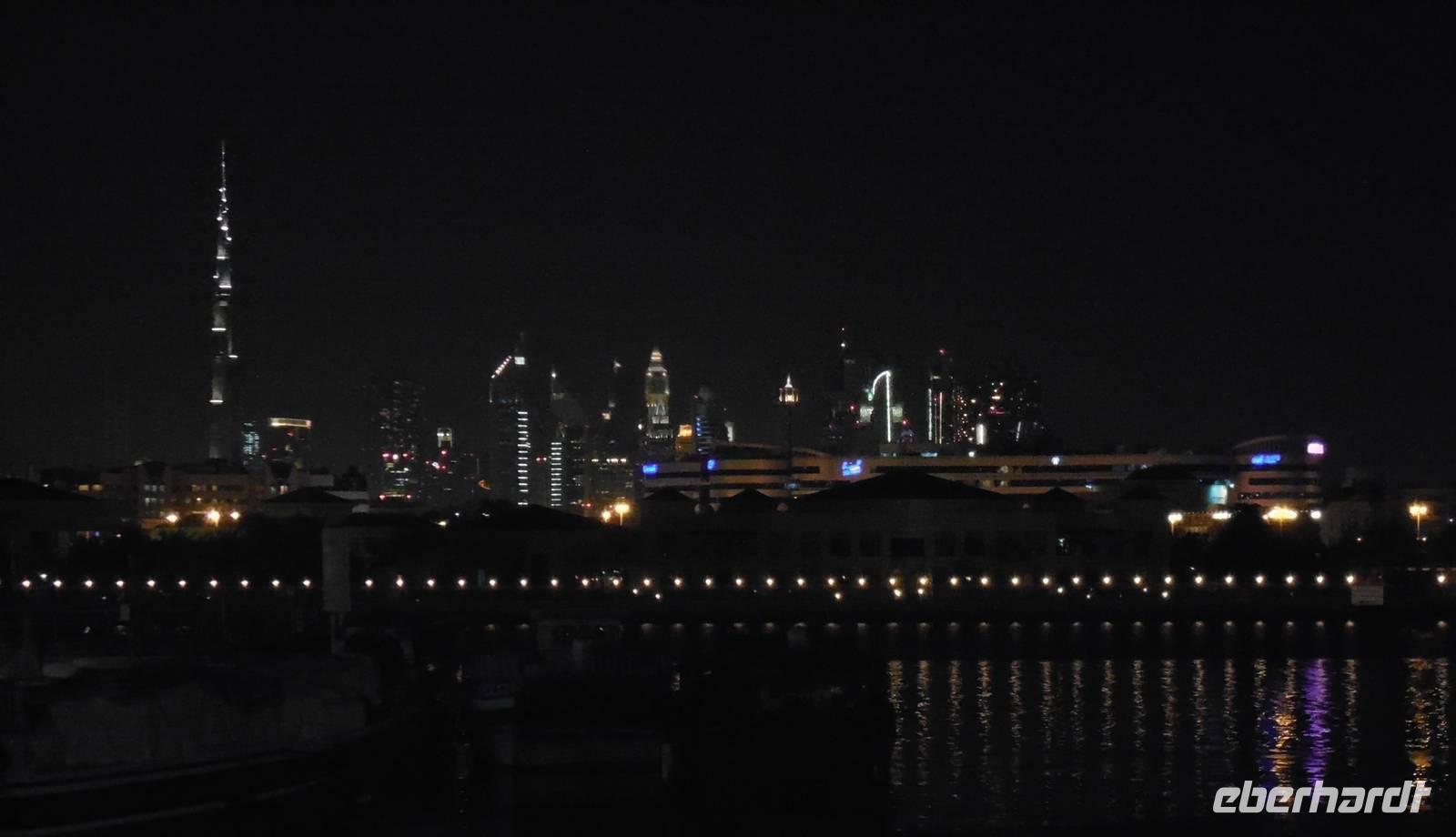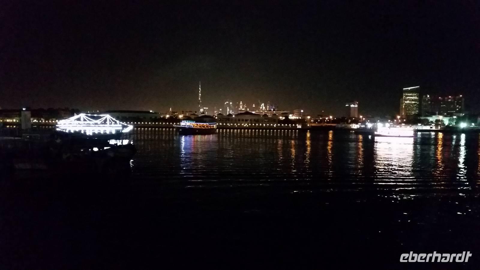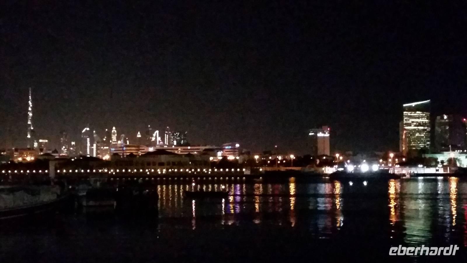 Heute Abend organisierte Anja und Benjamin eine Fahrt mit einer traditionellen Dhau auf dem Dubai-Creek. Wir genossen ein Abendessen vom Buffet und bestaunten die Skyline auf dem Dubai-Creek. Es war herrlich an Bord zu sein mit nur einer Jacke, unter den Sterne zu essen und durch das Wasser und die beleuchteten Schiffe zu fahren. Im Hintergrund die Skyline von Dubai mit dem Burj Khalifa als König der Nacht und die Sterne als Zeugen davon. Benjamin sagte auf dem Schiff dass eine deutsche Gruppe an Bord ist und zusammen mit arabischer Musik haben Sie auch Atemlos von Helene Fischer gespielt und viele von uns tanzten atemlos durch die Nacht;)