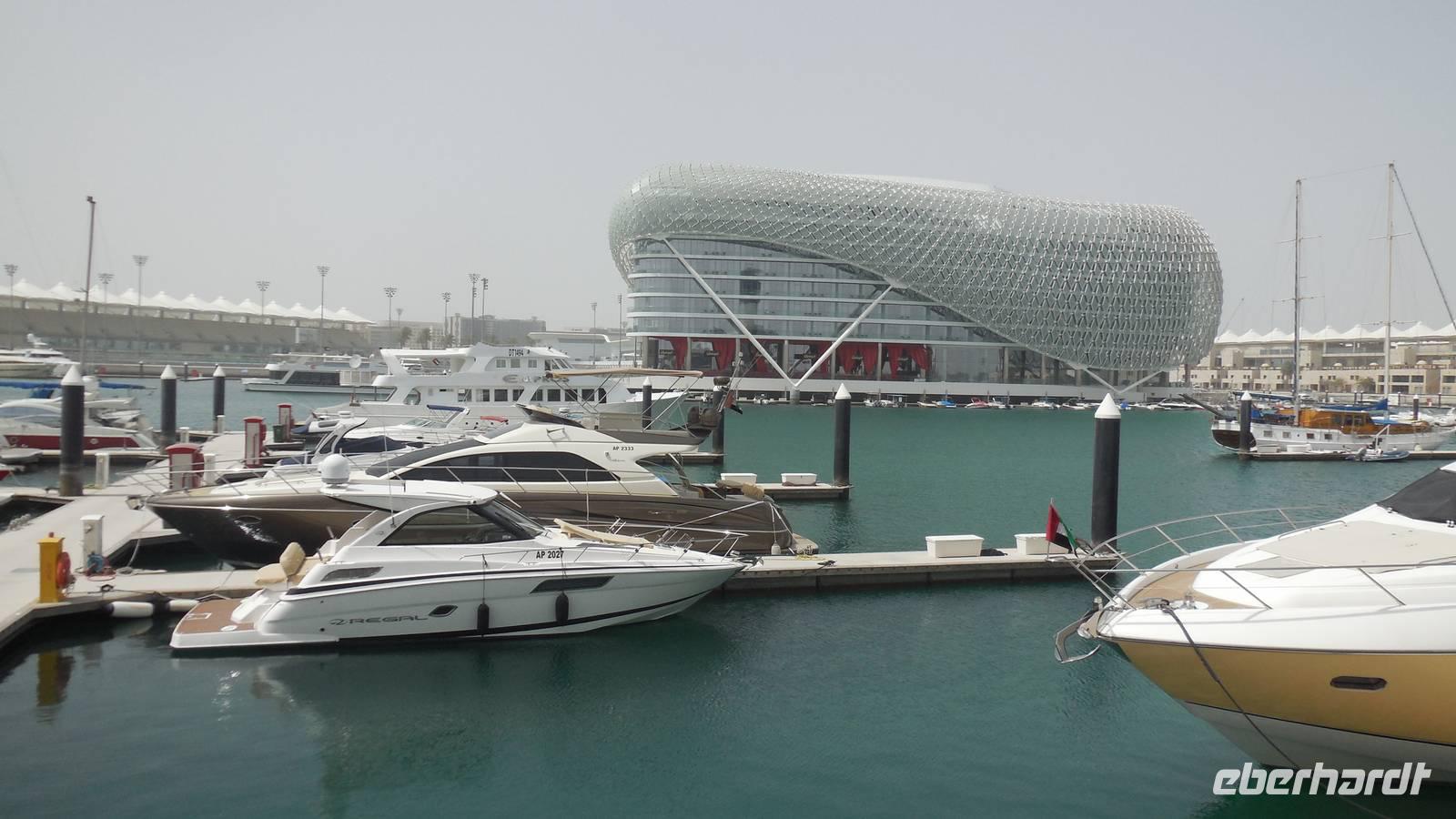 Unser erster Stopp heute war die Falkenklinik von Frau Dr. Müller, die in Erlangen studiert hat und seit hier lebt. Wir erlebten eine deutschsprachige Führung und schauten uns die tägliche Arbeit der Ärzte hier an. Interessant war für uns, dass Falken einen eigenen Reisepass haben und im Flugzeug sogar Anspruch auf einen eigenen Sitzplatz haben. Auch die Tatsache, dass die Tiere bis 350 Kilometer pro Stunden erreichen können, war uns vorher noch nicht bekannt. Wir hatten es mit den größten, schnellsten und stärksten Vögeln der Welt zu tun. Weiter fuhren wir über die weltberühmte Rennstrecke der Formel auf der Yas Insel, wo seit 2009 immer in November der Grand Prix stattfindet, der bis in die dunkel beleuchtete Nacht geht. Hier wurden bis 370 Kilometer pro Stunde gemessen.