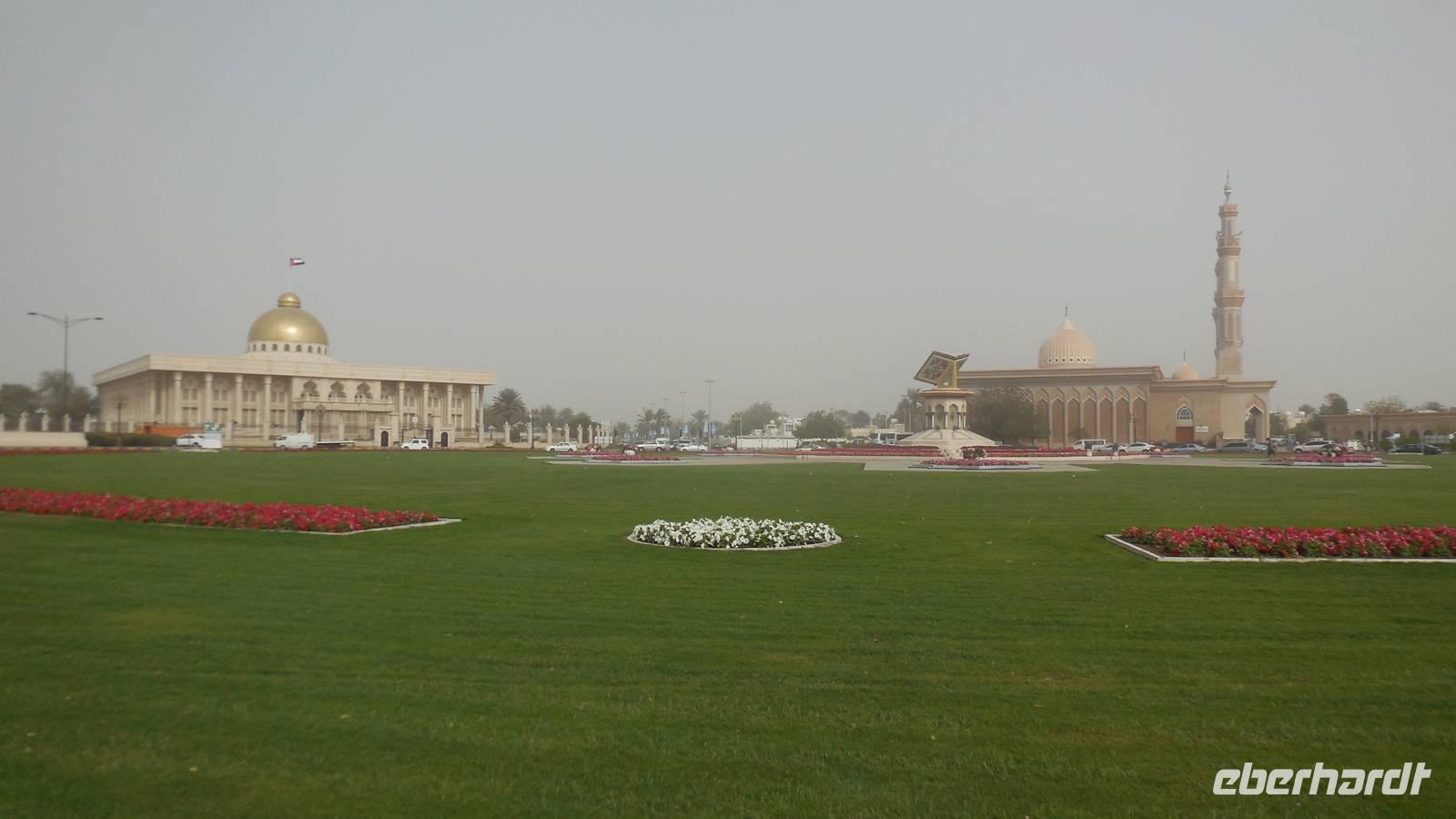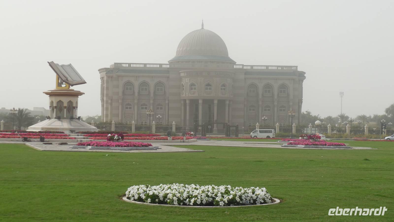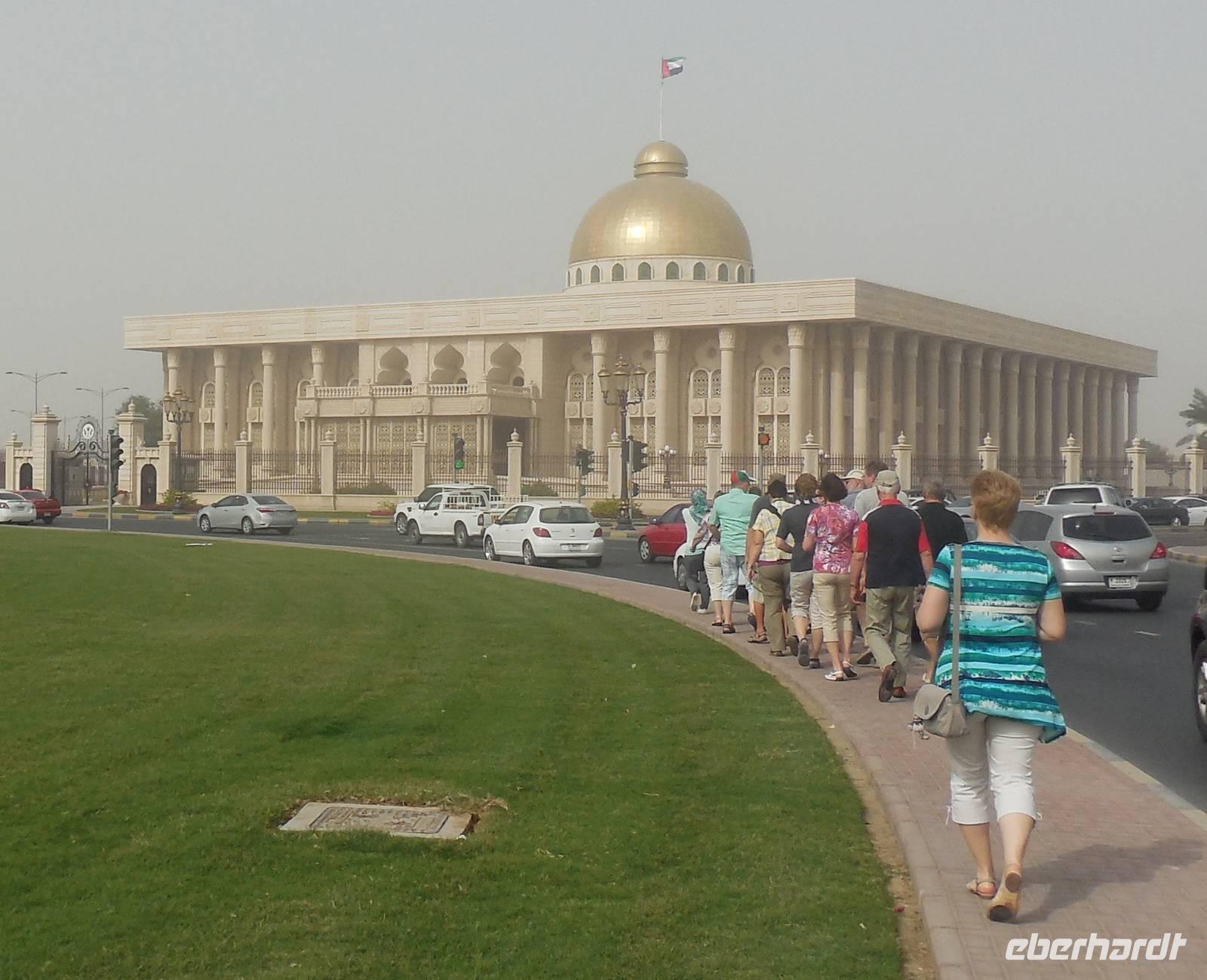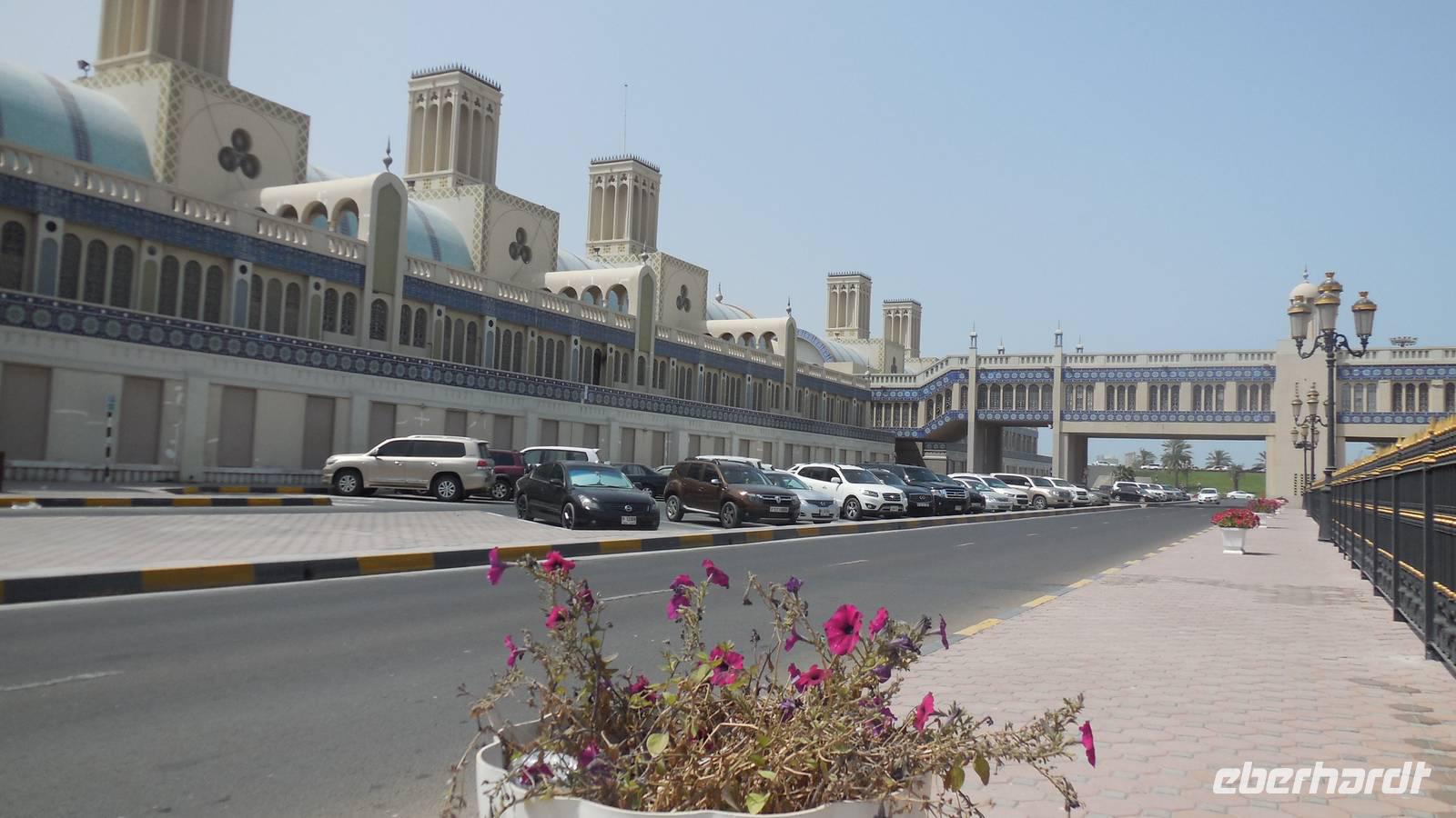 Wie jeden Morgen rief auch heute wieder pünktlich 5.30 Uhr der Mueicin zum Gebet, aber wir hatten uns schon daran gewohnt, sodass es uns gar nicht mehr störte. Nach einem reichhaltigen Frühstück fuhren wir heute in der nicht so weit entfernte Emirat Sharjah, welches das drittgrößte der sieben Emirate ist. Hier wird das Gesetz der Sharia sehr streng beachtet, vorallem in Bezug auf das Alkoholverbot. Bei Verstoß dagegen erwarten einen sehr hohe Strafen. In Dubai dagegen wird die Sharia nicht so streng eingehalten.