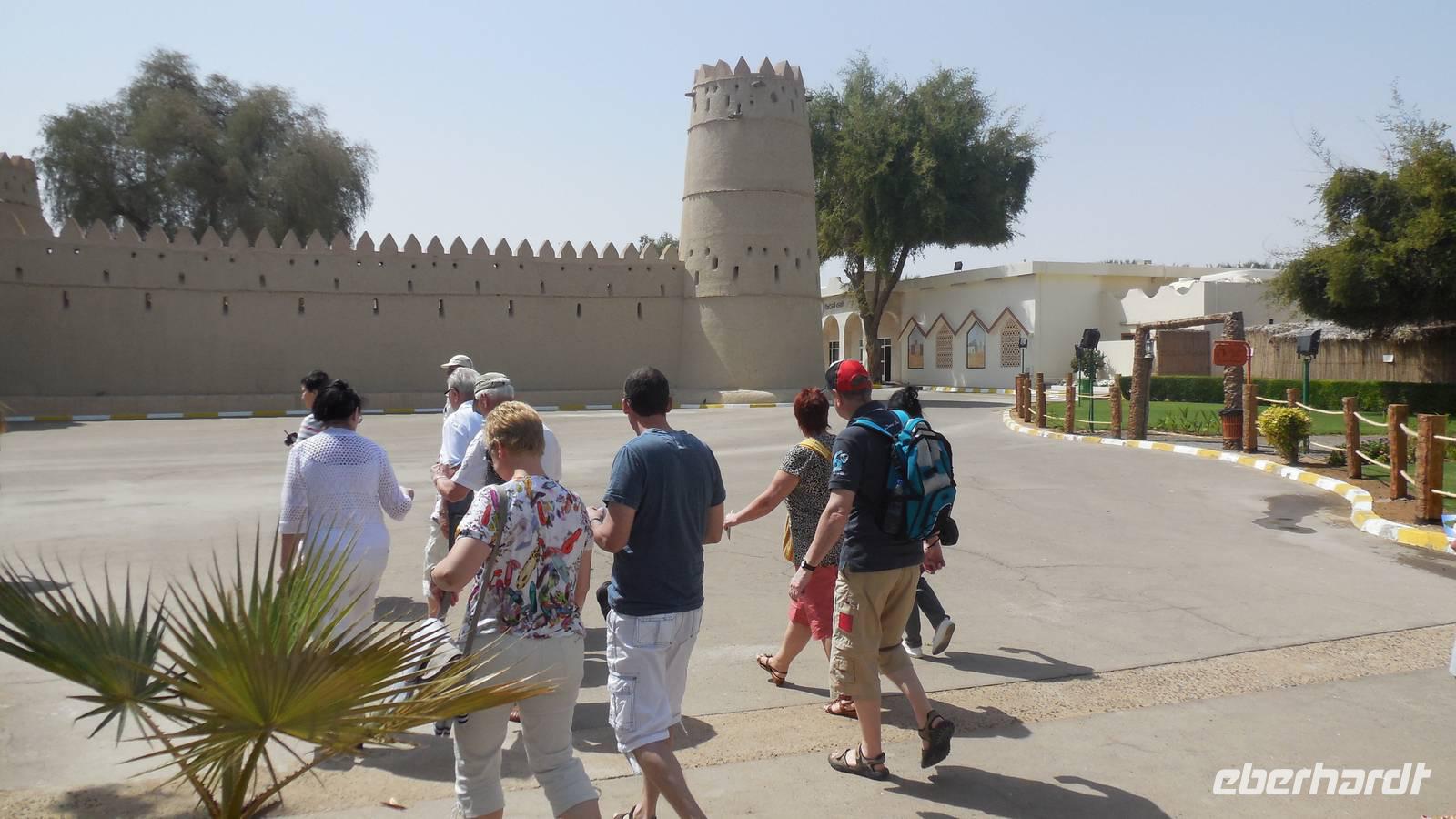 Al Ain bedeutet „Die Quelle" und wir merken schnell, wie grün die Gegend war. Es ist eine Universitätstadt und hier wurde die erste Universität des Landes 1977 geöffnet. Wir fuhren an die Palastanlage von Herrschaftenfamilien vorbei und staunten, wie diese Gartenstadt in Mitten der Wüste mit herrlichen Palmenhainen verblüfft.
