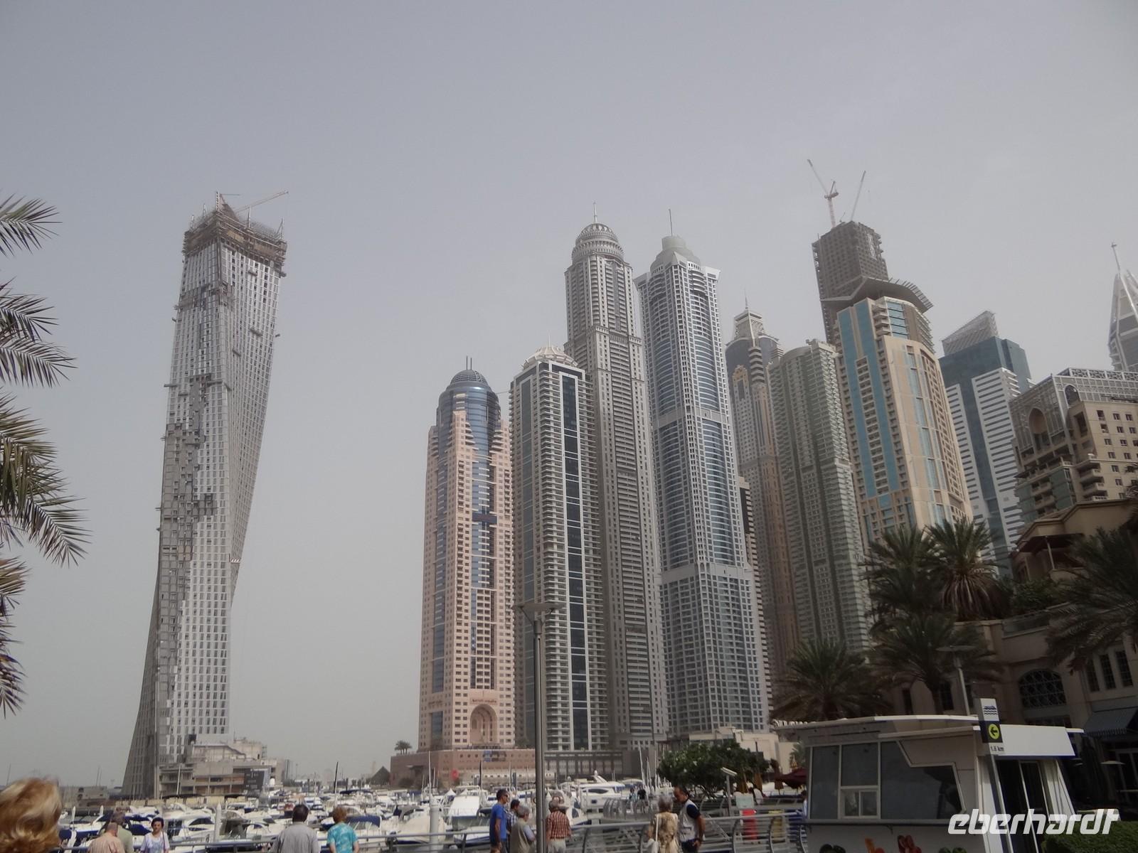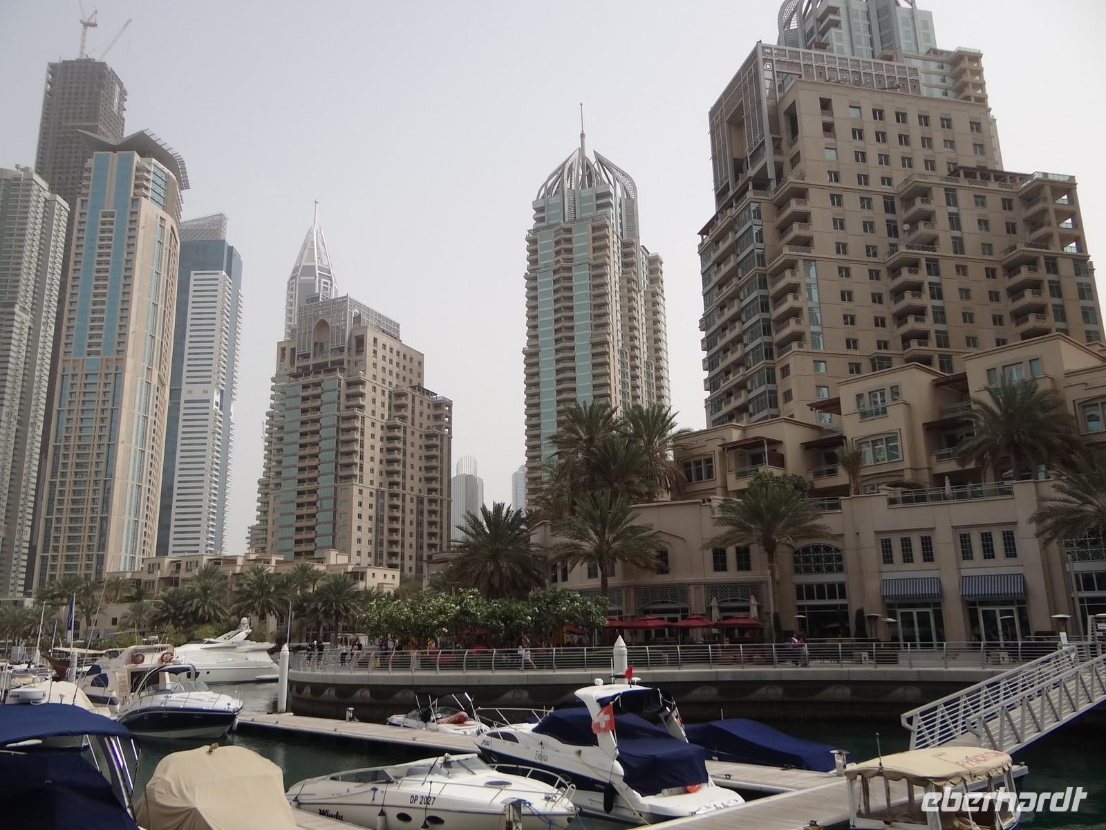 Heute beginnen wir unsere Besichtigung von Dubai mit dem modernen Dubai, welches unter anderem aus Dubai Marina besteht. Hier spiegeln sich die Apartment-Hochhäuser im Wasser der künstlich geschaffenen Marina und die Promenade entlang der Lagune lässt uns Zeit, um zu überlegen, wer sich solche Wohnungen leisten kann. Mit Sicherheit nicht die Bauarbeiter von Indien oder Pakistan, aber höchstwahrscheinlich die Einheimischen und die westlichen Expatriierten.