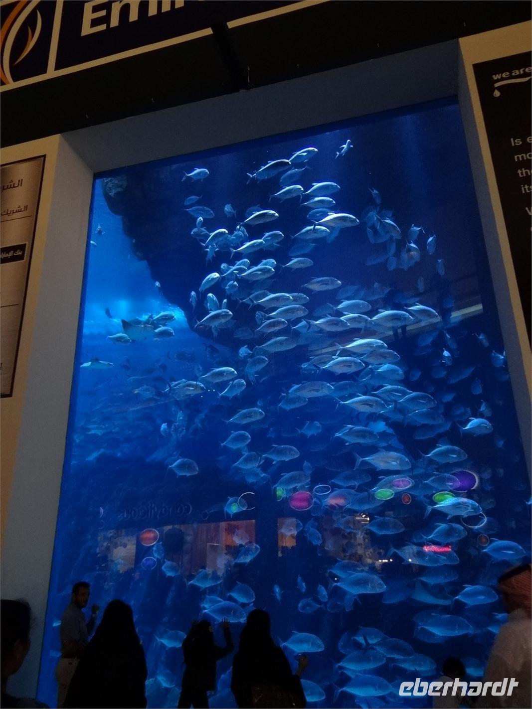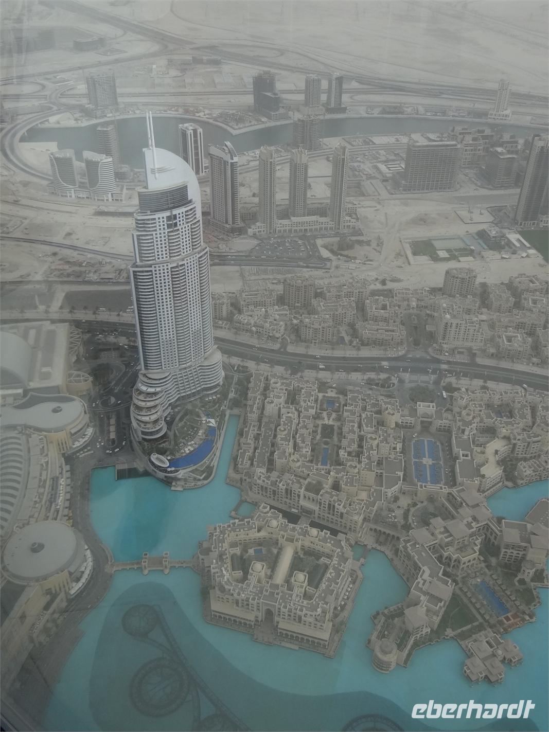 Der nächste Höhepunkt unseres Tages ist die Dubai Mall (die zweitgrößte Shopping Mall der Welt), und sein Aquarium. Das Aquarium ist sehr beeindruckend, weil es ein 33x8 m großes Fenster hat, wo man die mehr als 33 000 Meerestiere beobachten kann. Anschließend hatten wir ein bisschen Freizeit, bevor wir uns vor dem Eingang von Burj Khalifa treffen. Dubai ist voll mit Superlativen und Burj Khalifa spielt eine große Rolle dabei, da es das höchste Gebäude der Welt ist. Auf der 124. Etage ist die Besucherplattform, die man mit einer Geschwindigkeit von 10 Meter pro Sekunde erreichen kann. Der Blick von der Besucherplattform „At the Top“ ist natürlich sehr eindrucksvoll, aber was wirklich auffällt ist, dass Dubai nur Baustelle ist. Baustelle und Sand.