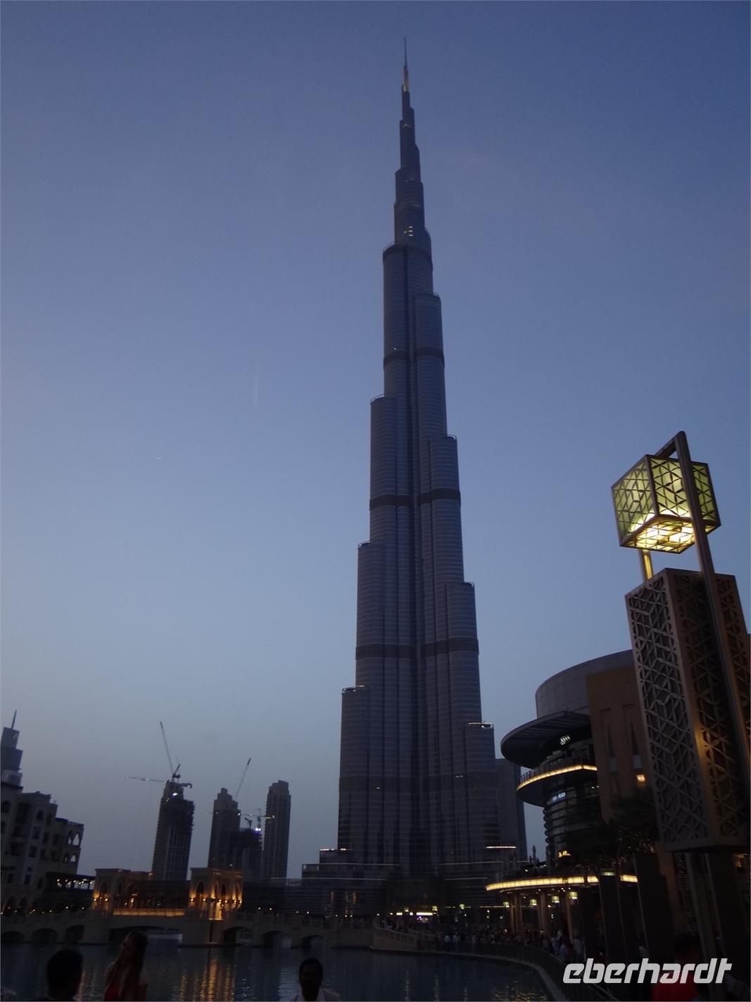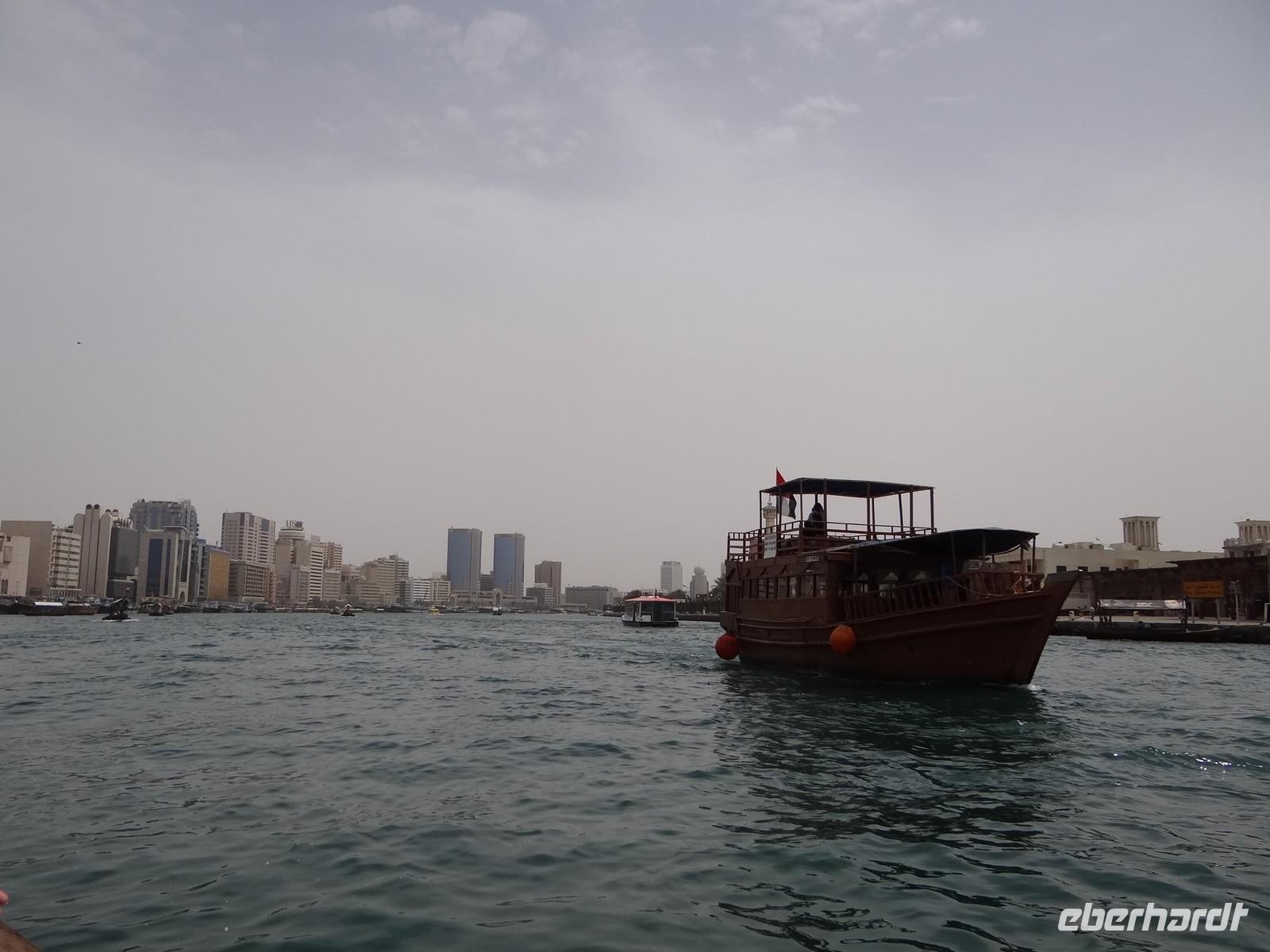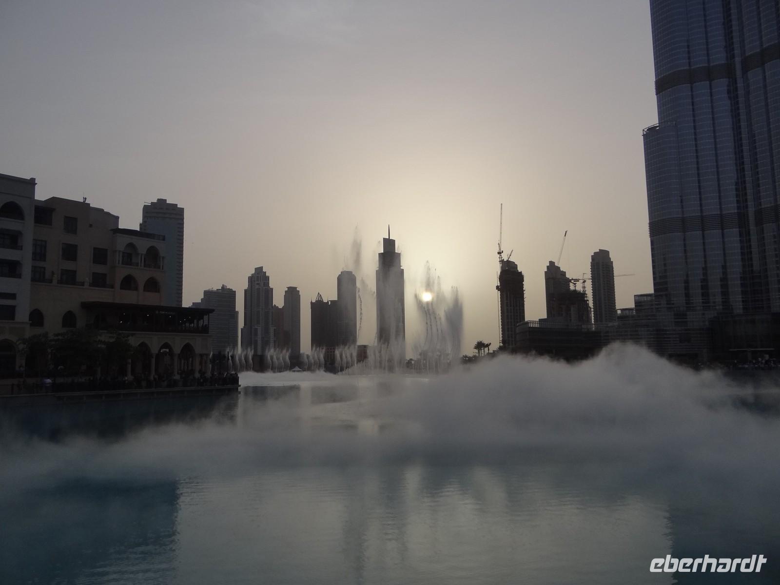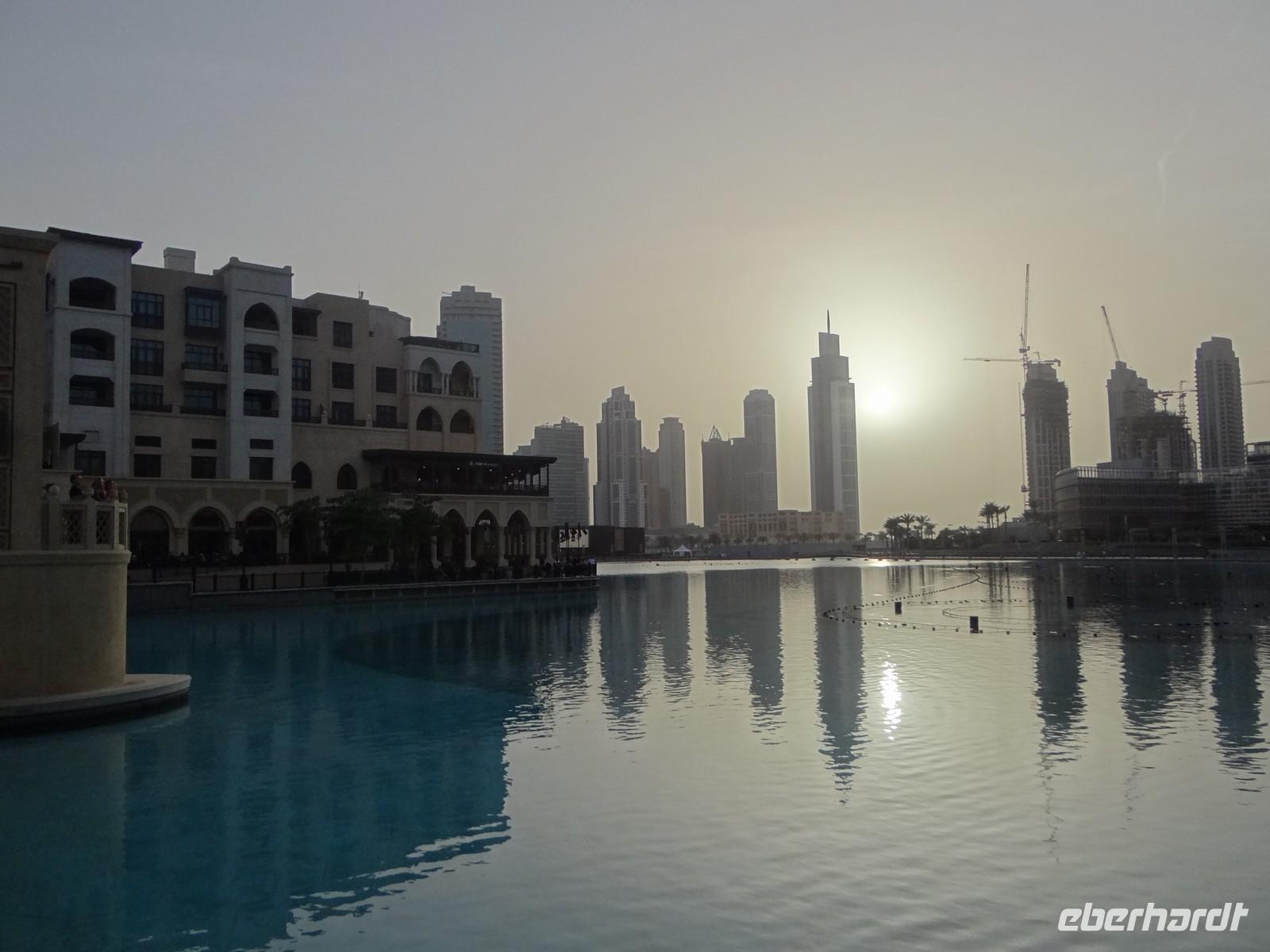 Wir sehen zwei Wasserspiele, welche jeweils ungefähr 10 Minuten dauern. Aber das Warten lohnt sich total, um das Wasser in der Fassade von Burj Khalif spiegeln zu sehen. Heute essen wir zu Abend in den Twin Towers. Das Buffet ist wirklich lecker und wir haben einen wunderschönen Blick über den Creek.
