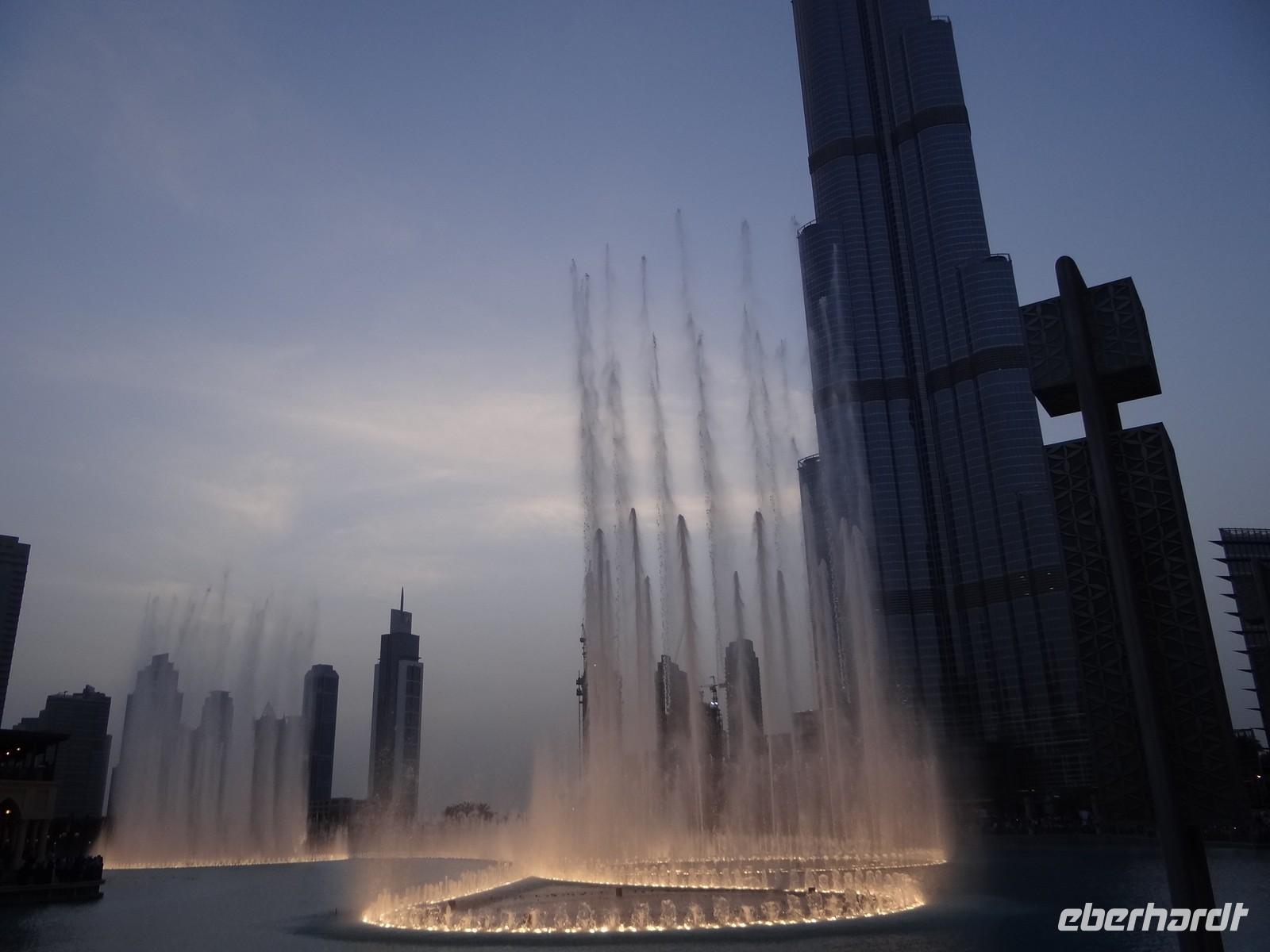 Wir sind dann zurück zum Hotel gefahren und Tarek und ich laden die Gäste ins Dubai Museum ein. Es ist ein bisschen schwierig eine Führung darin zu machen, aber Tarek konnte die Geschichte von Dubai trotzdem ein bisschen im Innenhof vom Museum erklären. Danach besuchen wir nach eigenem Ermessen das Museum und genießen ein bisschen Ruhe, bevor wir um 17:15 Uhr zu den Wasserspielen bei Burj Khalifa fahren.