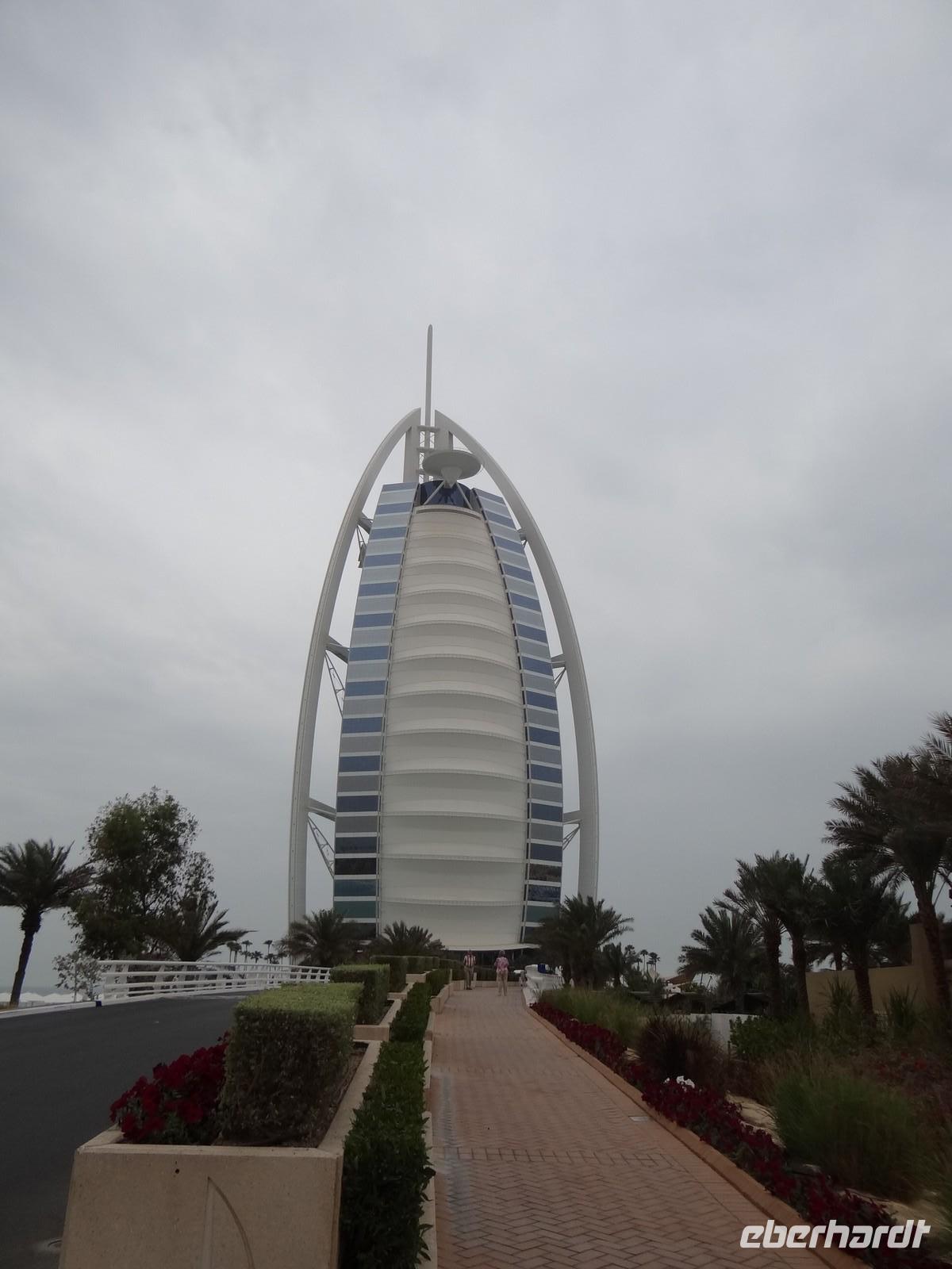 Heute erwartet uns ein besonders luxuriöses Erlebnis: ein Mittagsessen im neuen Wahrzeichen Dubais: Burj al Arab. Das Hotel liegt auf seiner eigenen Insel und niemand ohne Autorisation kann bis zum Eintritt gehen oder schwimmen. Der Dom in der Lobby ist von Gold und Licht ausgestaltet und ist beruhigt von Wasserspielen, die in sich eine Meisterleistung sind.