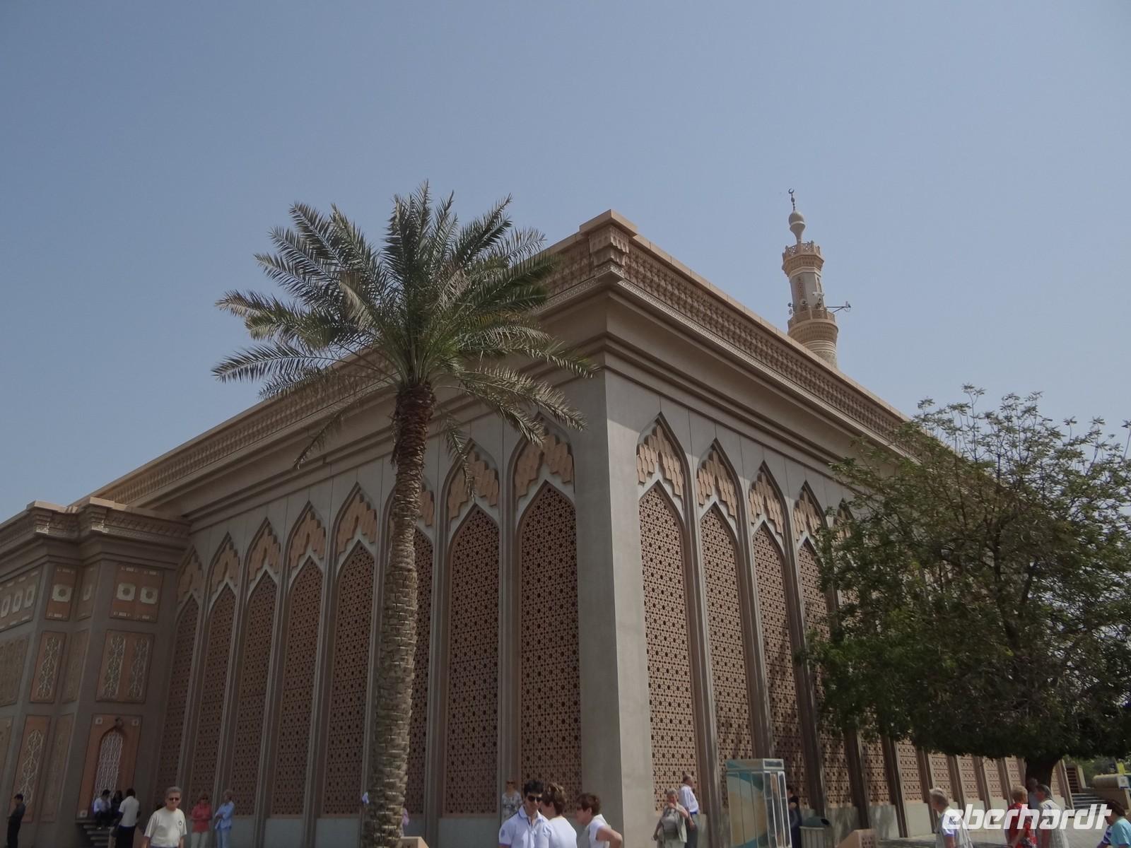 Anschließend besuchen wir das Al Ain Palace Museum, welches der frühere Wohnsitz des Sheikh Zayed war und wir sitzen in dem Raum, wo er die Regierungschefs mit der Kaffeezeremonie gegrüßt hat. Die Anlage ist, für unsere Augen, sehr sittenstreng und weit vom heutigen Luxus entfernt, in dem die Scheiche wohnen. Die Anlage ist sehr schön mit vielen Bäumen und mehreren tiefen Gebäuden. Das Palast Museum repräsentiert eine gute Abschlussbesichtigung, bevor wir zurück nach Dubai fahren, um ein letztes Abendessen im Hotel zu genießen.