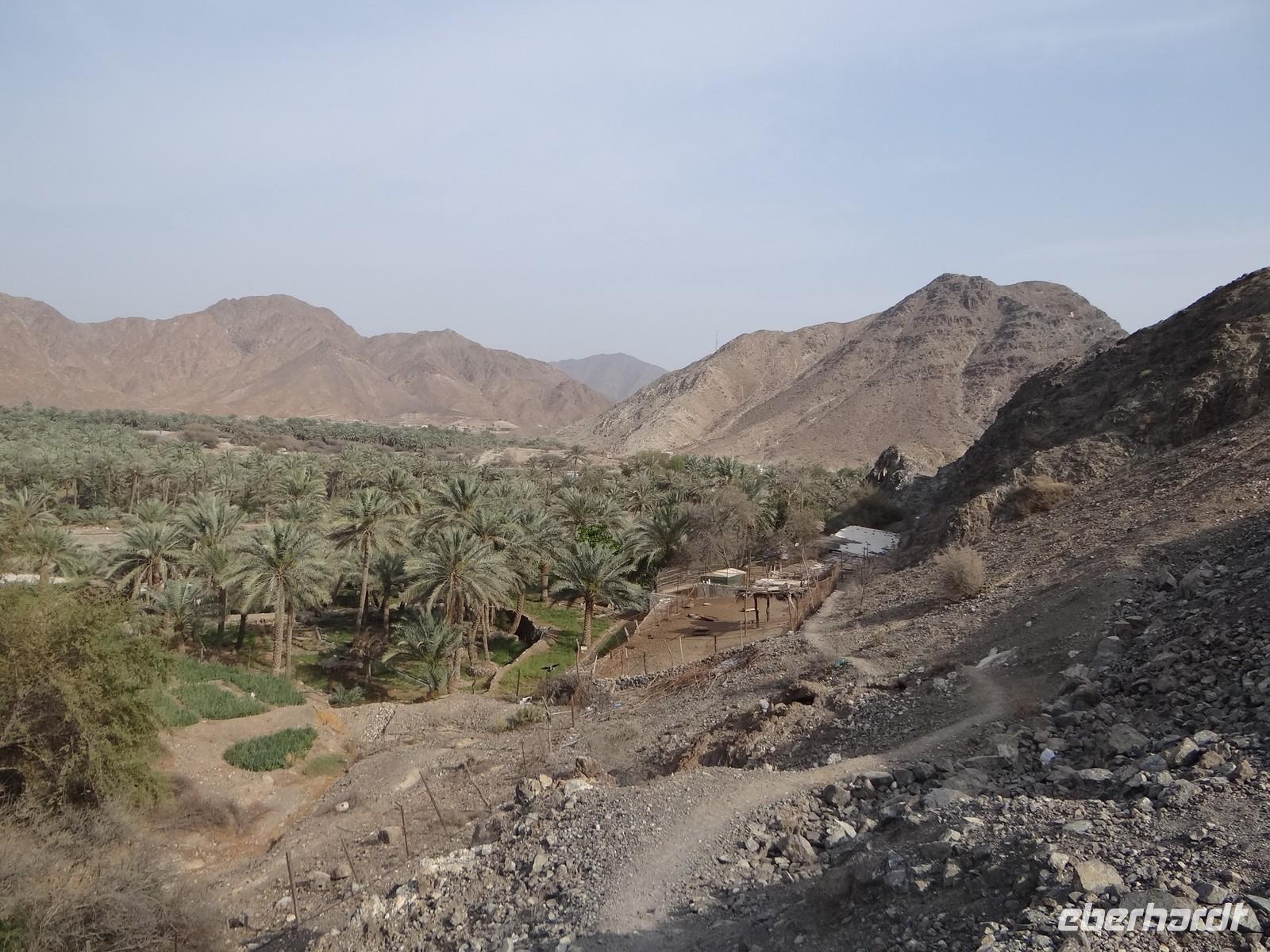 Wir fahren heute zusammen (alle 25 Gäste) zur Ostküste, an der östlichsten Seite der Emirate, in der Nähe von Oman. Die Fahrt ist angenehm und wir entdecken neue Landschaften, da wir im Hajar Gebirge fahren. Unterwegs halten wir am Freitagsmarkt, der nicht nur am Freitag stattfindet, und Tarek und ich haben Small Fingers Bananen für die Gäste gekauft. Wir haben dann die Bananen im Bus verteilt. Die kleinen Bananen sind geschmackvoll und haben uns geholfen die Stärke zu haben, um später zu schwimmen.