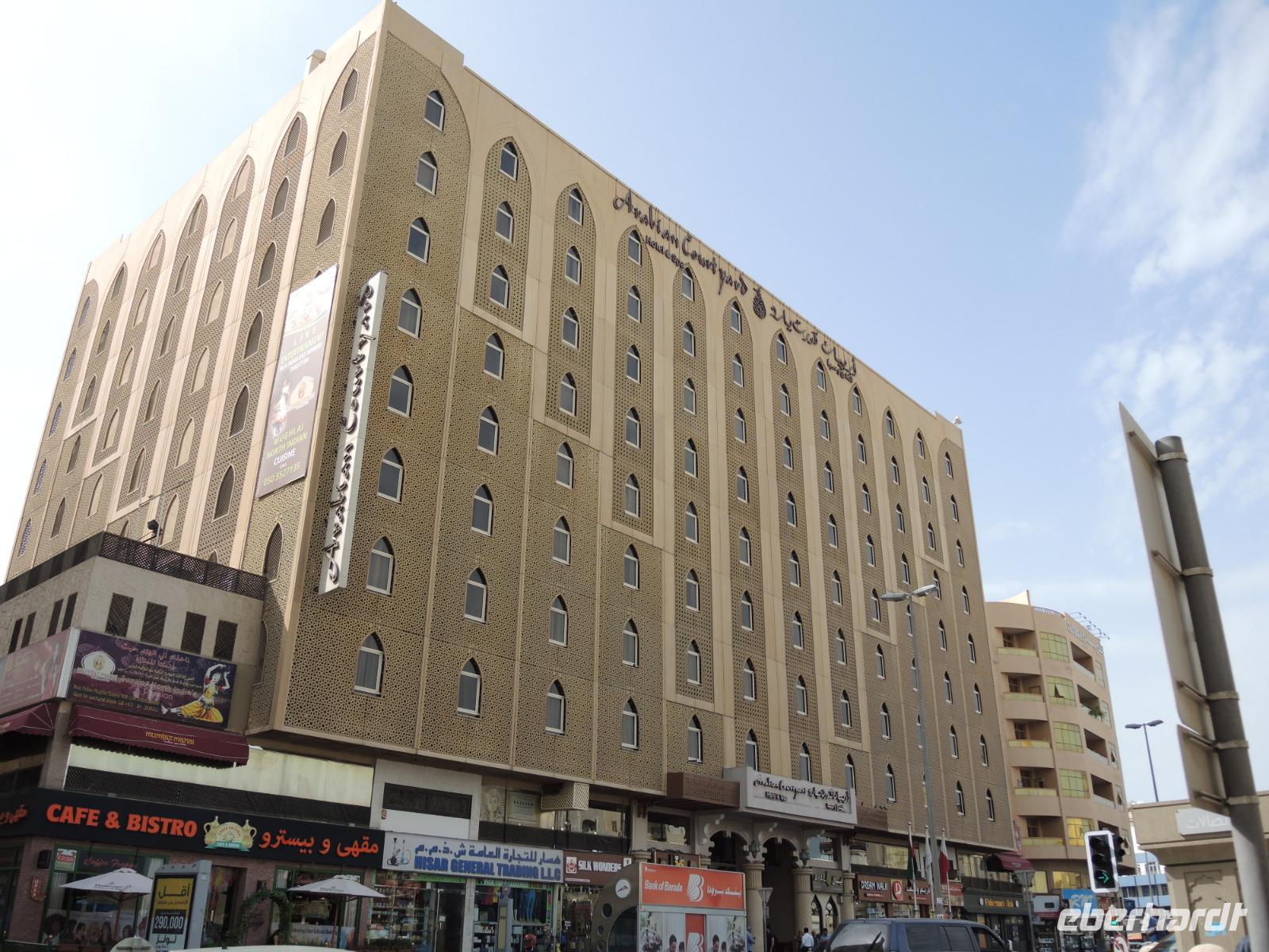 Nach einem sehr angenehmen Flug mit Lufthansa landen wir am Abend in der Metropole Dubai. Von unserem Reiseleiter Ibrahim werden wir mit einem herzlichen „salam aleikum" begrüßt und zu unserer Unterkunft für diese erlebnisreiche Woche gebracht, dem 4* Hotel Arabian Courtyard im alten Stadtteil von Dubai. Unsere Reiseteilnehmer, die direkt ab Prag geflogen sind und am frühen Abend ankamen, wurden eher ins Hotel gebracht und hatten bereits die Möglichkeit die schöne Umgebung des Hotels zu erkunden.