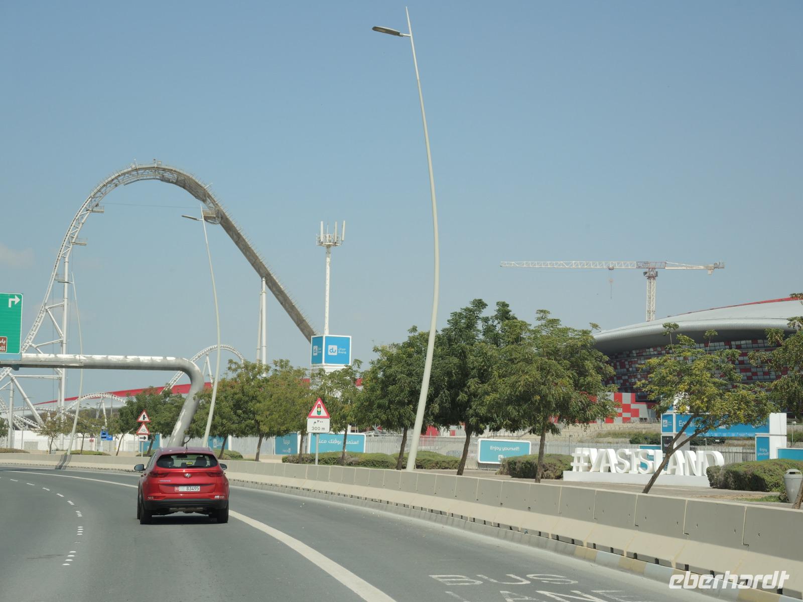 Über die vielen Inseln von Abu Dhabi geht es nun in Richtung einer der größten Inseln: Yas Island mit der Formel 1 Rennstrecke und der Ferrari World. Unsere Reiseteilnehmer sind überglücklich als unser Reiseleiter uns tatsächlich ermöglicht, die Rennstrecke von Nahem zu erkunden.
