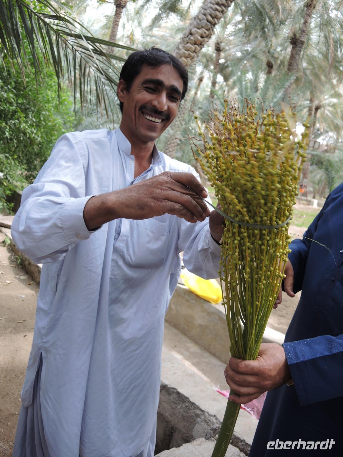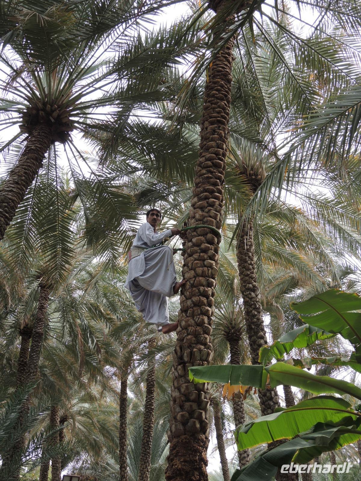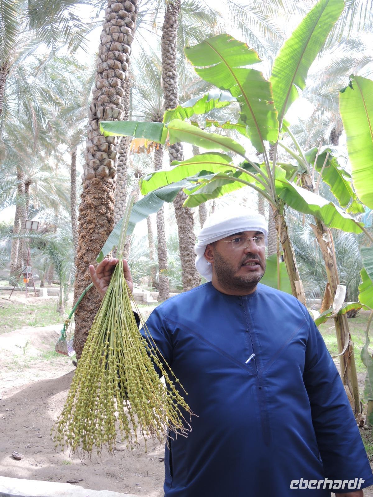 An unserem letzten Tag erkunden wir die Wüstenstadt Al Ain und den höchsten Berg der VAE, den Jebel Hafeet. Vorbei an einer 12km langen Kamelrennbahn fahren wir nun durch die Wüste der Emirate bis wir in Al Ain, kurz vor der Grenze zum Oman ankommen. Nach einer kleinen Stadtrundfahrt geht es zur Dattelfarm „Al Ain Oasis". Hier erklärt uns Ibrahim wie das Dattelfarming funktioniert, wie die Blüten von den Farmarbeitern bestäubt werden und wie das Wässerungssystem hier auf den Feldern funktioniert.