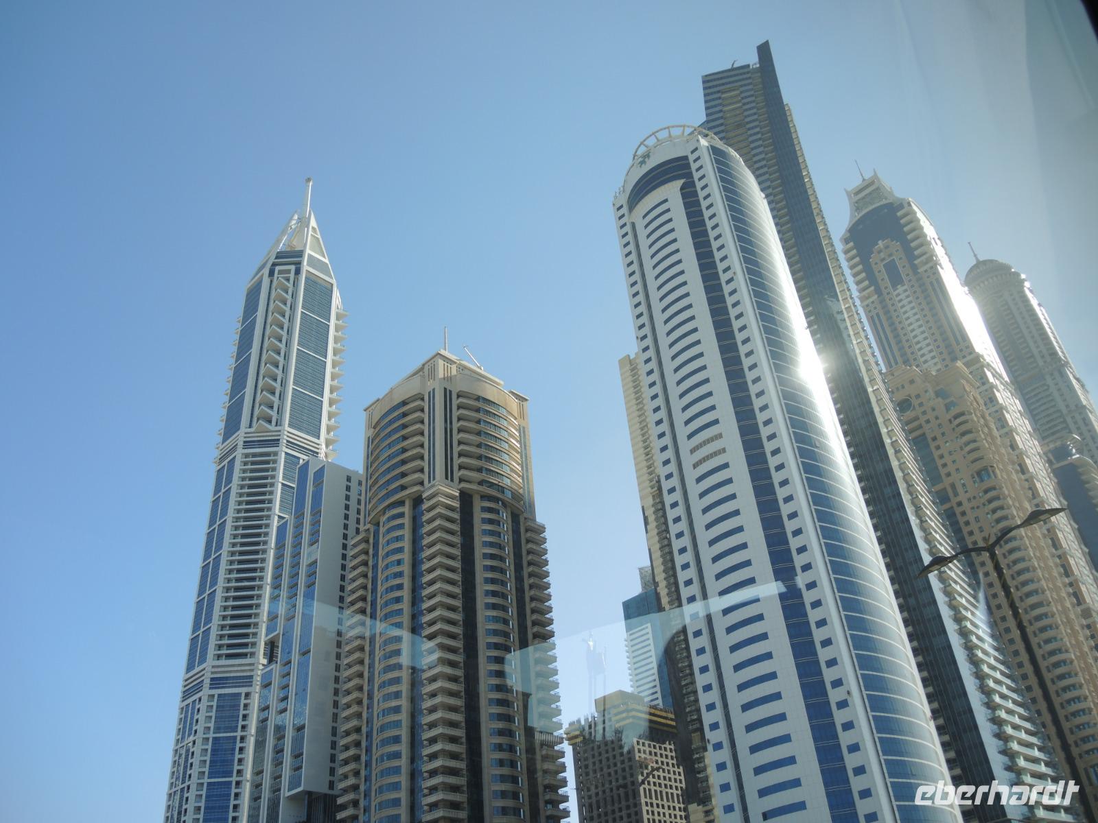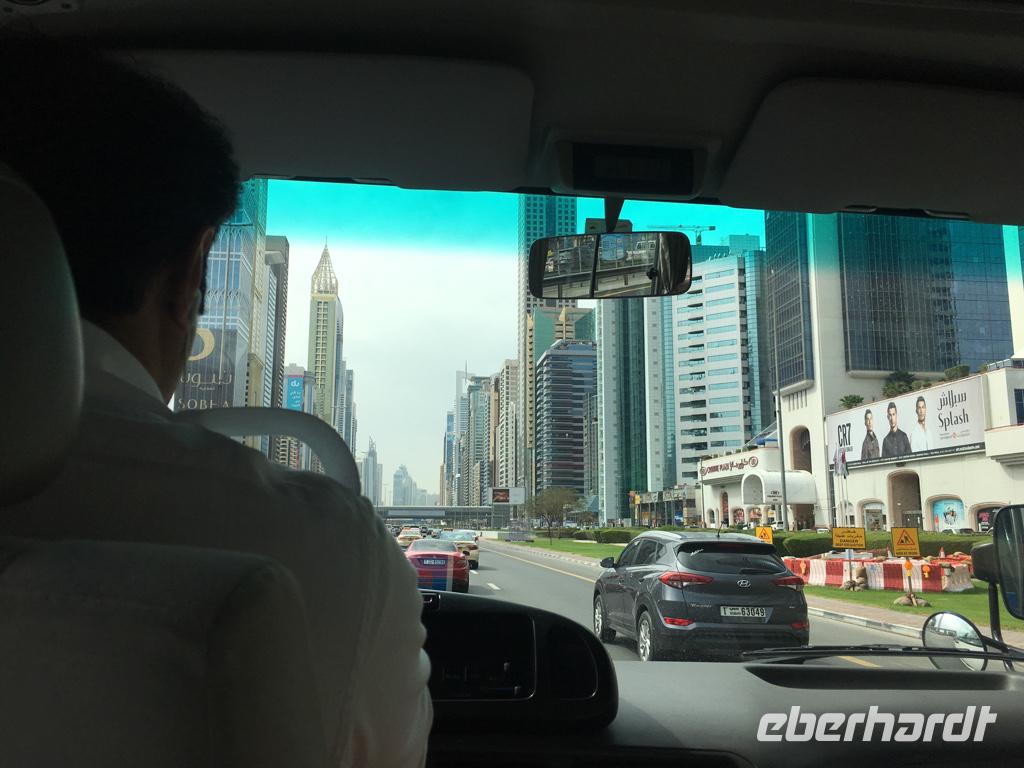 Nachdem wir uns am Frühstücksbuffet gestärkt hatten treffen wir uns in der Lobby des Hotels und lernen uns kennen, bis unser Reiseleiter Ibrahim uns abholt, um mit uns das moderne Dubai zu erkunden. Auf der Fahrt ins Zentrum haben wir nun das erste Mal die Möglichkeit bei Tageslicht die Hochhäuser der beeindruckenden Großstadt zu bestaunen.