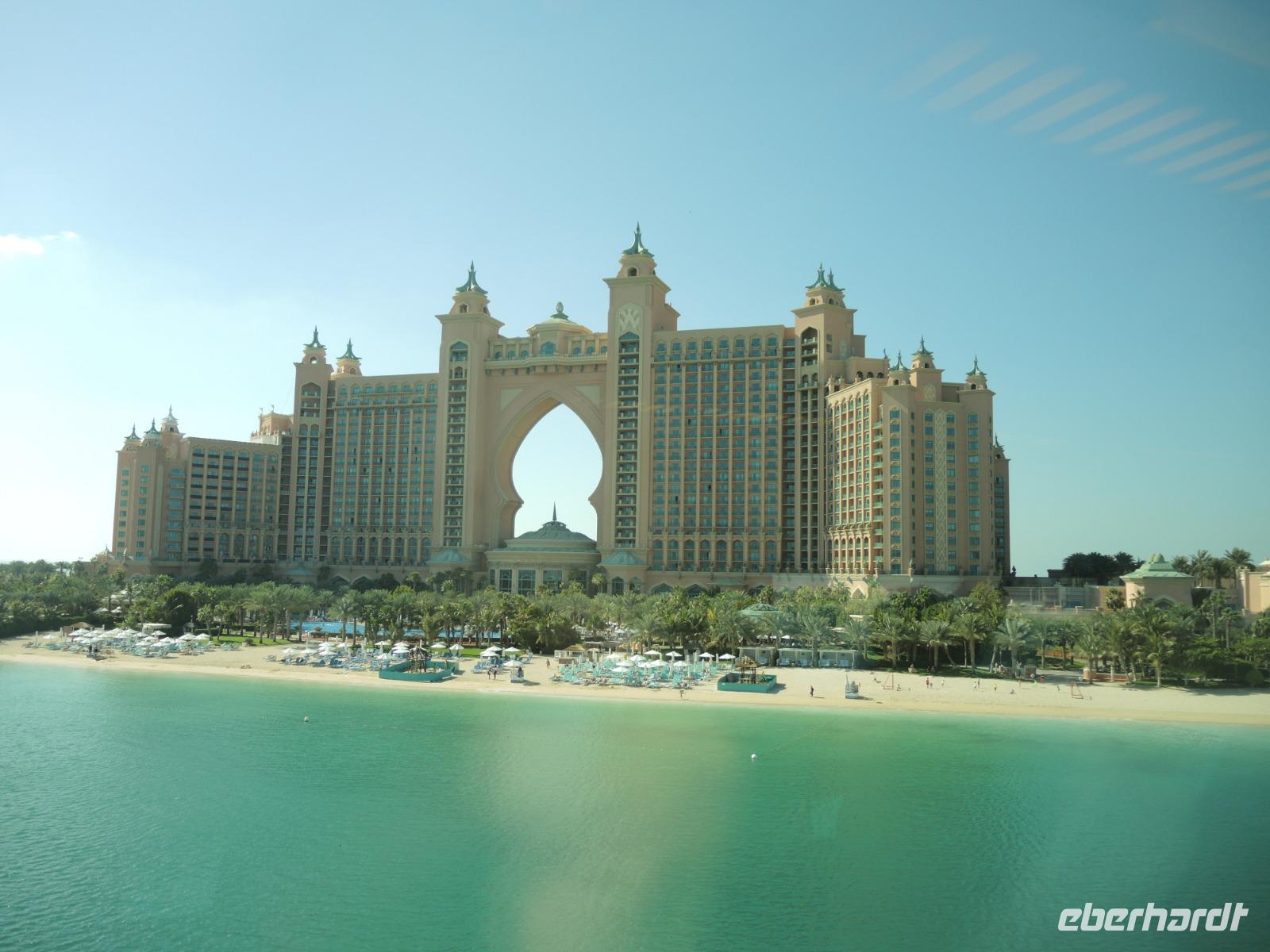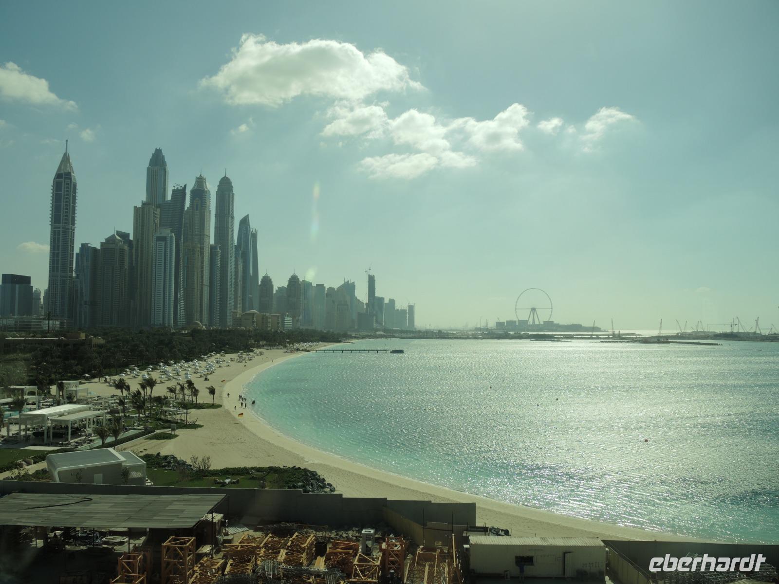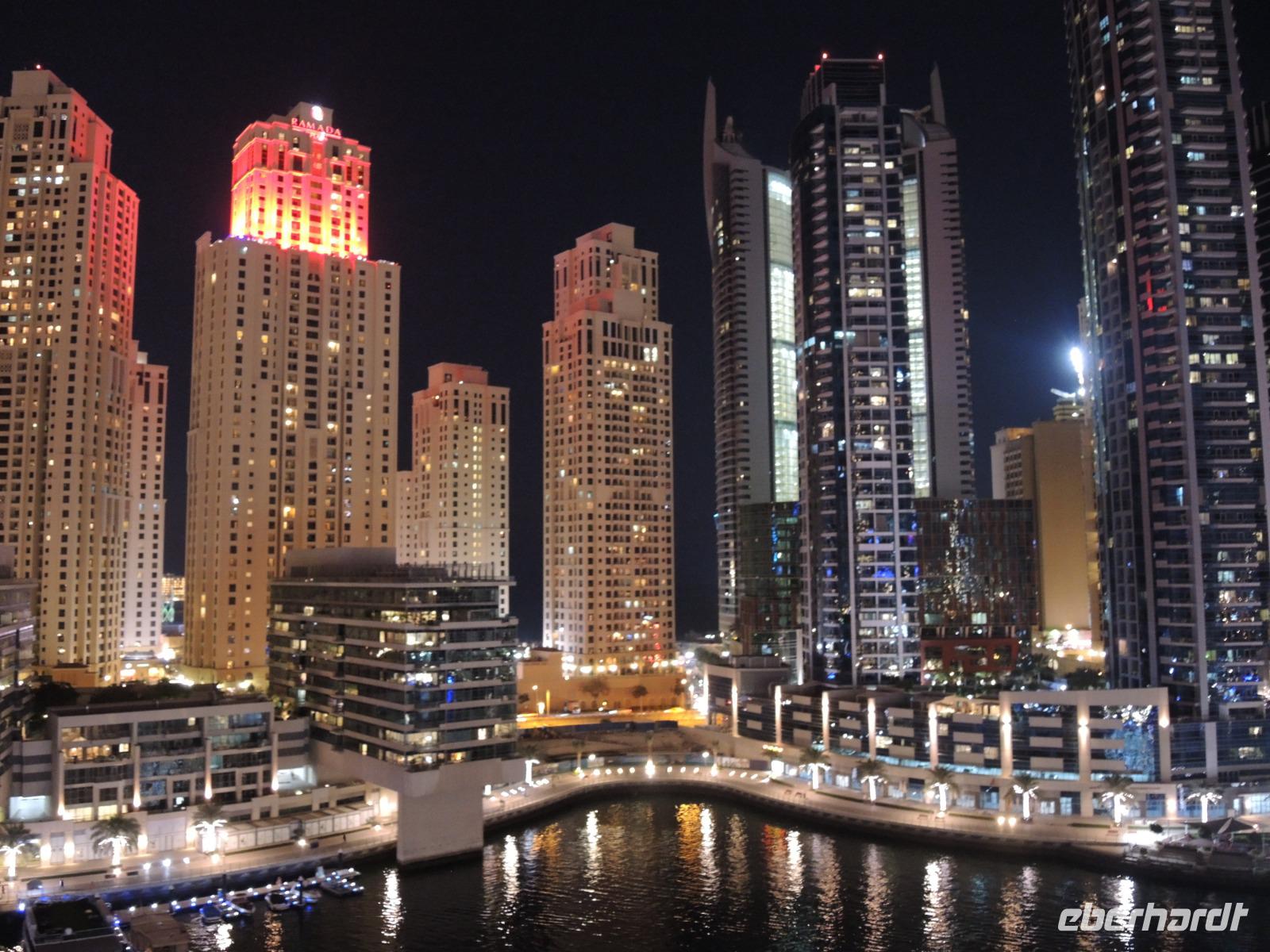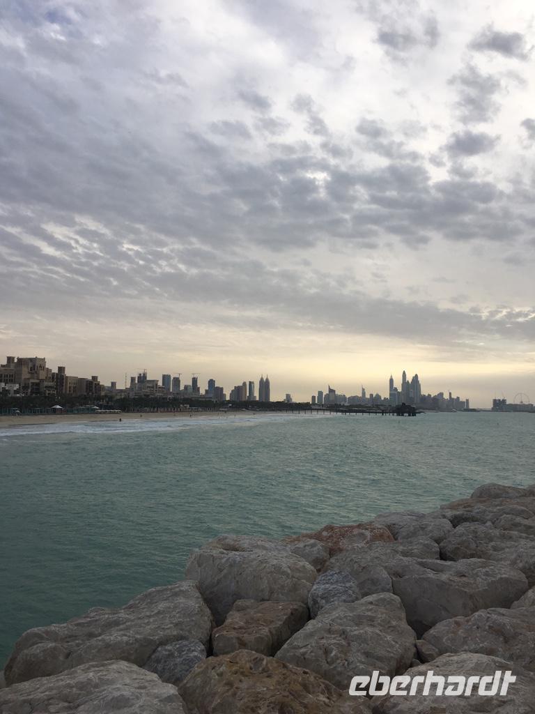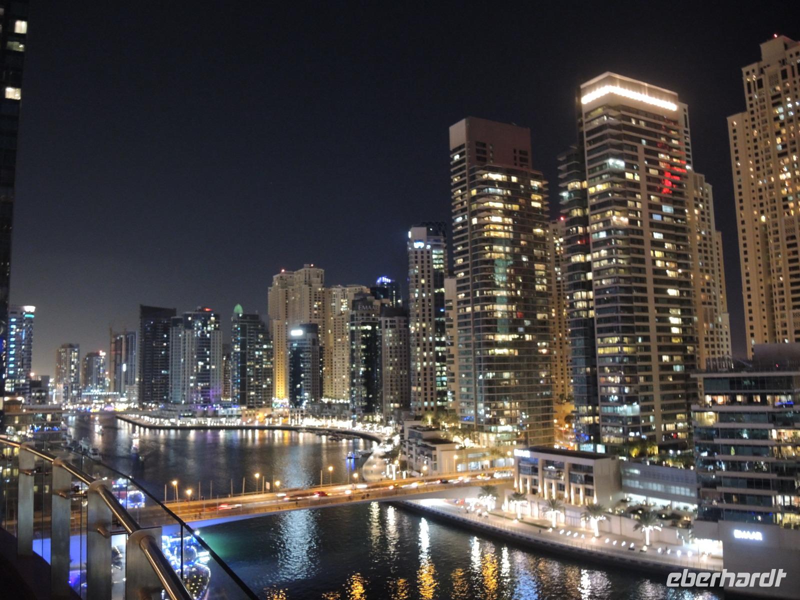 Bei einem wunderbaren Mittagessen stärken wir uns im Hauptrestaurant des Hotels Atlantis the Palm, bevor es weiter geht mit der Monorail zurück zu unserem Bus an der Endstation. Unser Busfahrer Bilal bringt uns dann zum Marina Beach - einige Gäste erfrischen sich nochmals im Meer und andere schlendern die Promenade entlang, bevor es dann wieder weiter geht zur Marina Mall und zum Restaurant Atelier Pier 7. Auf der Terrasse des Restaurants genießen wir heute Abend unser Essen bei einem fantastischen Ausblick über die Skyline der Dubai Marina.