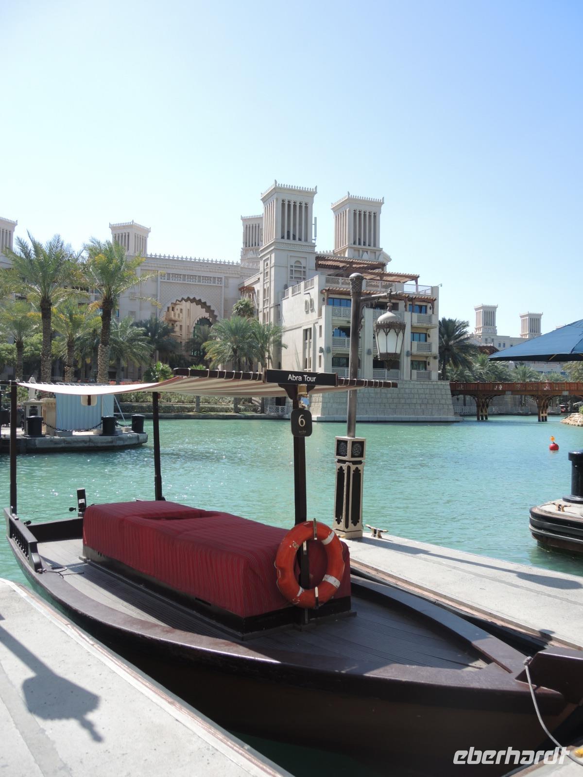Nachdem wir uns den Wüstensand von der Kleidung geklopft haben geht es nun heute zum Souk Madinat Jumeirah, in der wir Freizeit haben um durch die kleinen Läden zu schlendern, uns Andenken kaufen zu können, die Kanäle bei einer Bootsfahrt vom Wasser aus zu erkunden oder einfach die Sonne auf die Nasenspitze scheinen zu lassen bei einem kühlen Getränk in einem der zahlreichen Cafés und Restaurant.
