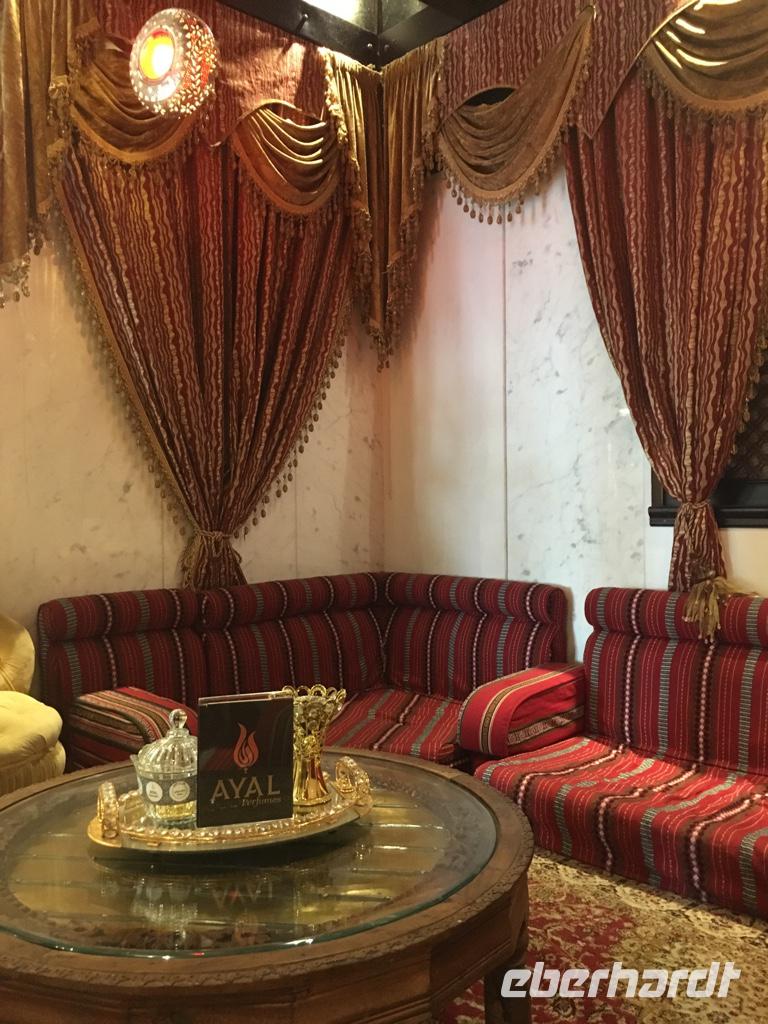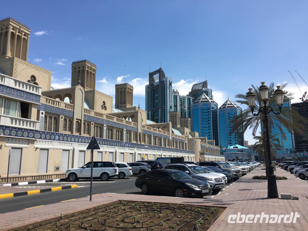 Im „blauen Souk" haben wir dann Zeit um durch die kleinen Geschäfte zu bummeln, das geschäftige Treiben zu beäugen oder auf der Promenade zu spazieren und den herrlichen Blick auf die Skyline von Sharjah zu genießen.