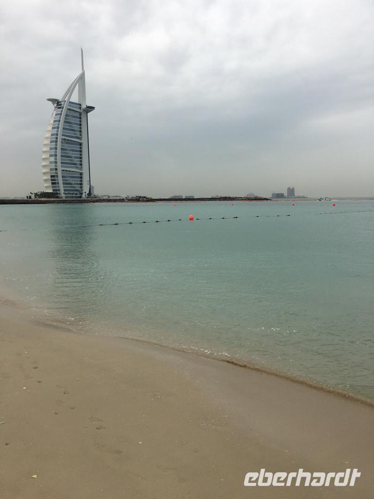 Zuerst halten wir am wohl luxuriösesten Hotel der Welt, dem Burj al Arab am Strandabschnitt Jumeirah Beach. Einige strecken die Zehen ins noch recht frische Meer, manche fotografieren das Hotel in Segeloptik und andere lassen sich die Meeresbrise um die Nase wehen. Herzlich Willkommen in Dubai!
