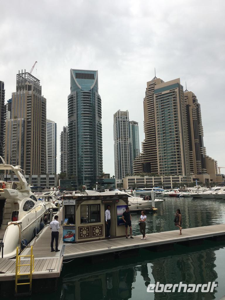 Es geht weiter zur Dubai Marina, einem Stadtteil etwas südlicher, mit ca. 200 Hochhäusern, einem künstlich angelegten Kanal, Yachthafen und einer bezaubernden Meile zum Flanieren. Weitere Highlights an diesem Tag ist die Emirates Mall, in der wir uns „Dubai Ski", eine Skihalle mitten im Sonnenstaat VAE, anschauen sowie ein weiteres Einkaufsparadies, die Dubai Mall.