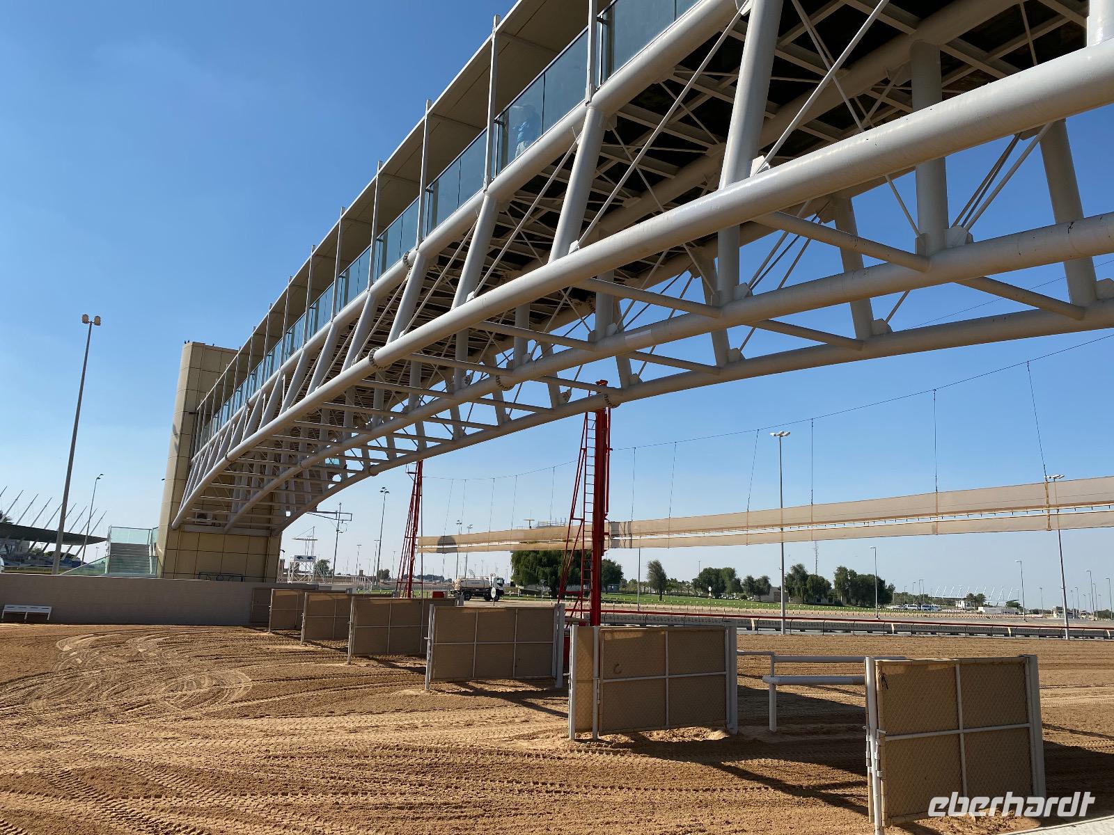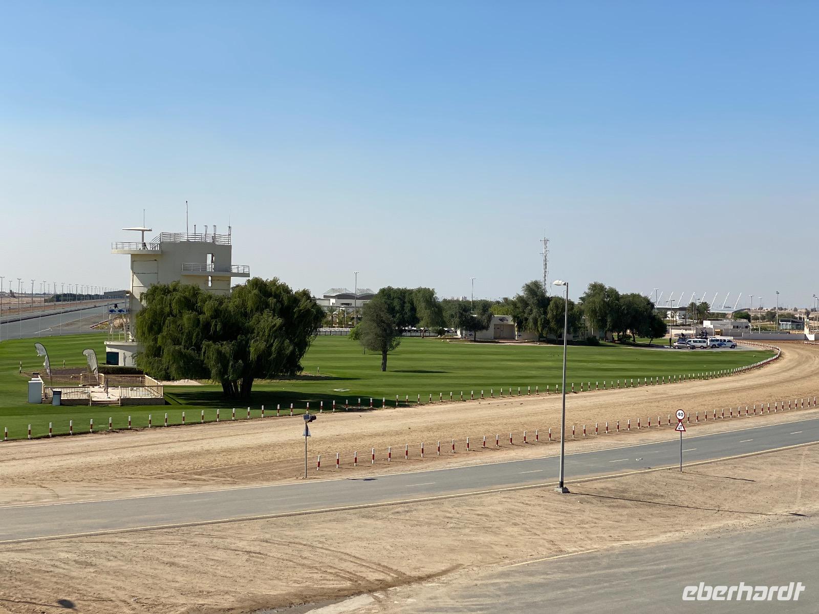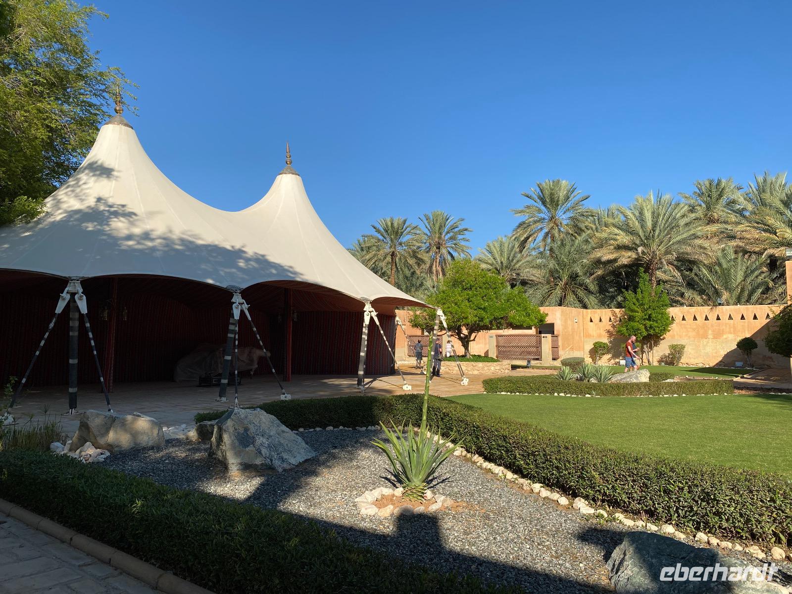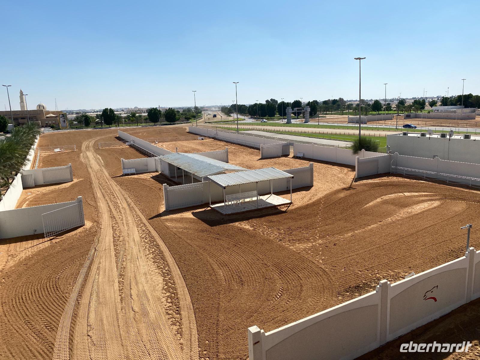 Anschließend trafen wir uns an der Kamelrennbahn, welche bereits für ein am Nachmittag stattfindendes Rennen vorbereitet wurde. Wir begutachteten einen Teil der 12 Kilometer langen Strecke und fuhren auch noch zum Kamelmarkt. Hier bekamen wir einen Einblick, welche „Reiter" während eines solchen Rennens auf den Kamelen zum Einsatz kommen. Dies sind keine Menschen mehr, sondern lediglich Roboter, welche aus einer Bohrmaschine gebaut werden. Wirklich interessant! Schließlich setzten wir unsere Fahrt fort und erreichten am Nachmittag die Oasenstadt El Ain. Hier schauten wir uns zunächst die Moschee von außen an und besuchten auch das Palastmuseum, welches die ursprünglichen Wohnräume der Scheichfamilie von Abu Dhabi zeigte. Hier erfuhren wir auch einiges über die Scheichfamilie selbst sowie deren Stammbaum. Wir genossen das angenehme Klima und schlenderten durch die hübsche und gepflegte Anlage.