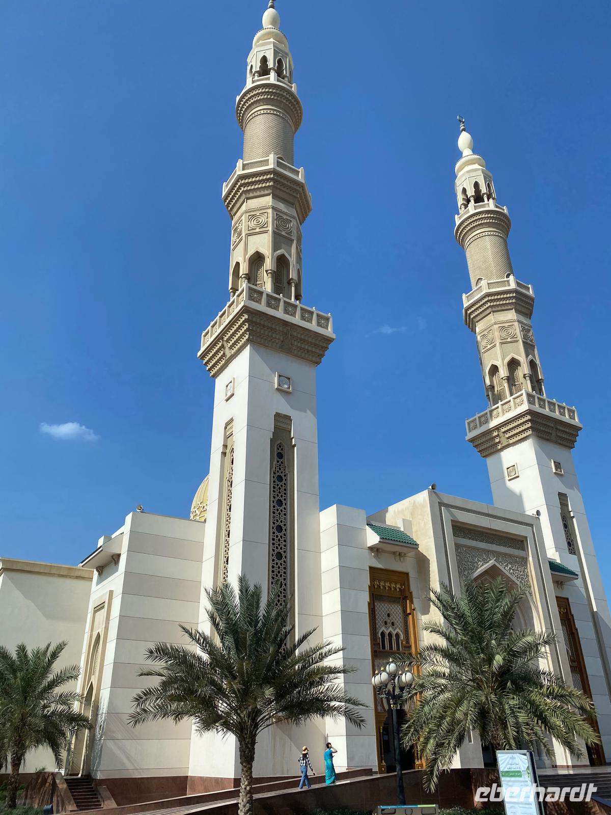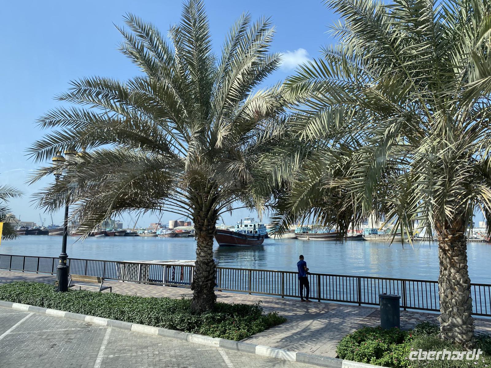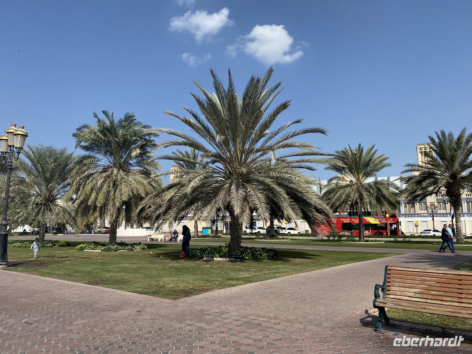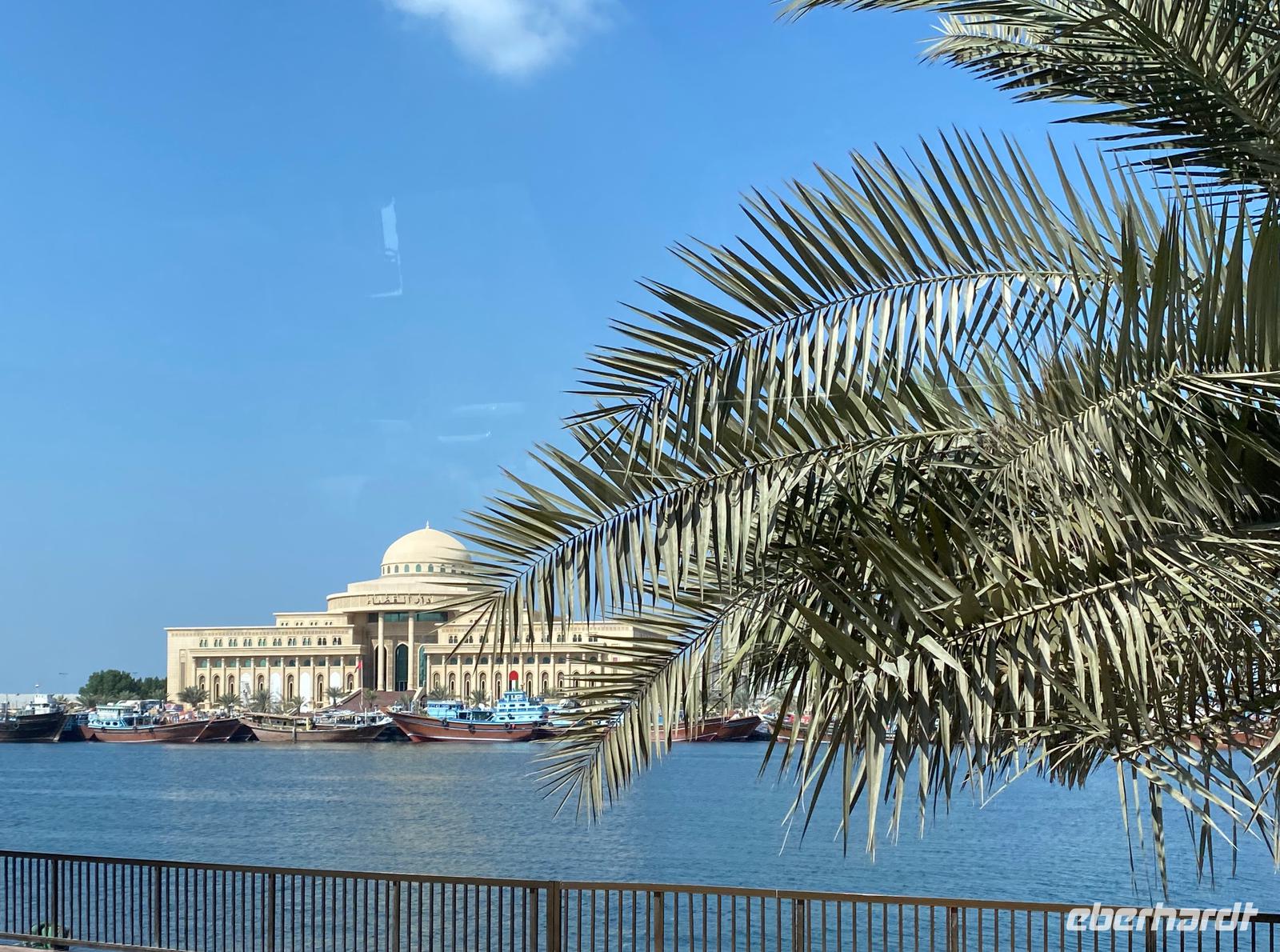 Nach einem reichlichen Frühstück trafen wir uns, um heute gemeinsam das Emirat Sharjah zu erkunden. Bekannt wurde die Großstadt durch die zweimalige Ernennung zur Kulturhauptstadt der Arabischen Welt, 1998 und 2014. Von unserem Hotel aus fuhren wir ca. 30 Minuten bis ins Nachbaremirat. Währenddessen erzählte uns Ibrahim einiges über die Geschichte der Vereinigten Arabischen Emirate sowie deren Entstehung. In Sharjah angekommen, fuhren wir zunächst zum sogenannten Koran-Kreisverkehr. Hier fotografierten wir neben der Moschee auch den Kulturpalast, die Bibliothek sowie den Verwaltungssitz des Scheiches von Sharjah, Scheich Sultan bin Mohamed Al-Qasimi. Anschließend setzten wir unsere Fahrt fort und erreichten bald die Altstadt der Kulturhauptstadt Sharjah. Hier fuhren wir entlang des Kanals und bewunderten die zahlreichen imposanten Bauten. Anschließend fuhren wir zum Souk al Jubail, wo wir durch die Fisch- und Fleischhalle sowie den Obst- und Gemüsemarkt schlenderten. Hier konnten wir unter anderem leckere Datteln probieren. In direkter Nachbarschaft besuchten wir weiterhin den Zentralen Markt, den sogenannten Blauen Souk. Hier erwarteten uns zahlreiche Schmuckverkäufer, bei welchen Goldschmuck aller Art erstanden werden konnte. Das Nachbargebäude lockte mit Tückern und verschiedensten Kleidungsstücken. Wer nicht in Shoppinglaune war, konnte entlang der Lagune spazieren gehen oder die intensive Mittagssonne auf einer Parkbank genießen, bevor wir zurück zu unserem Hotel in Dubai fuhren.